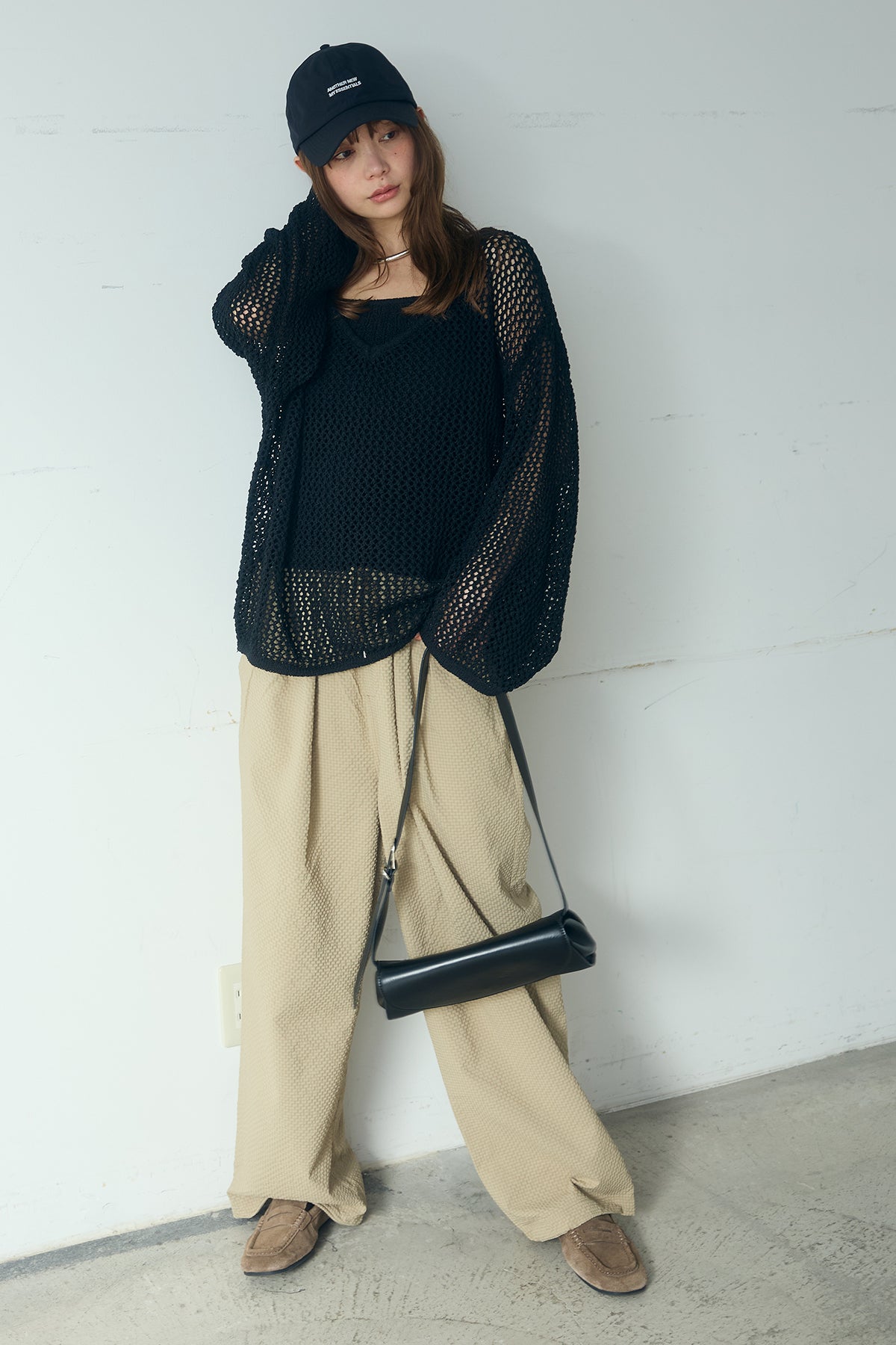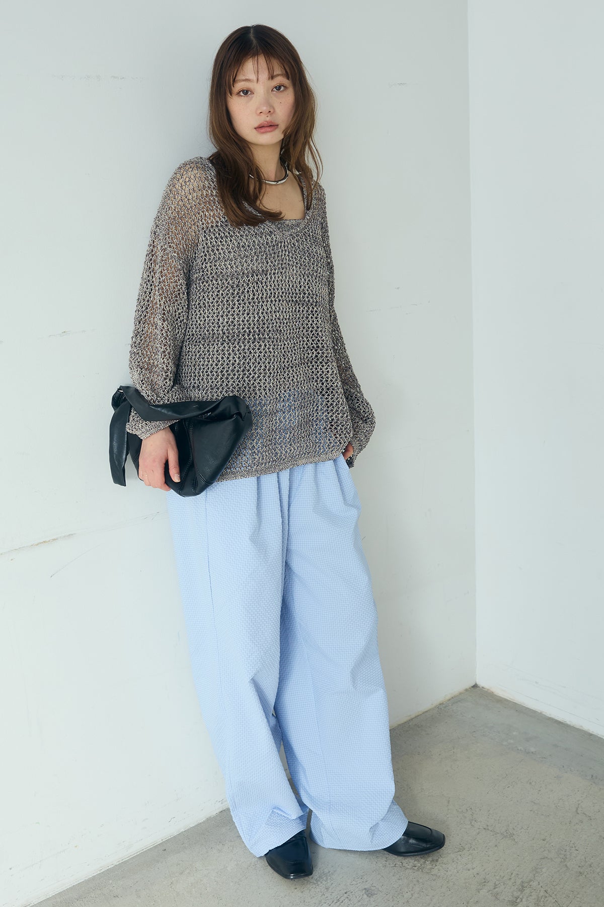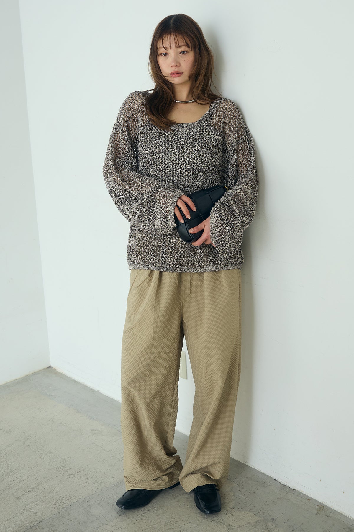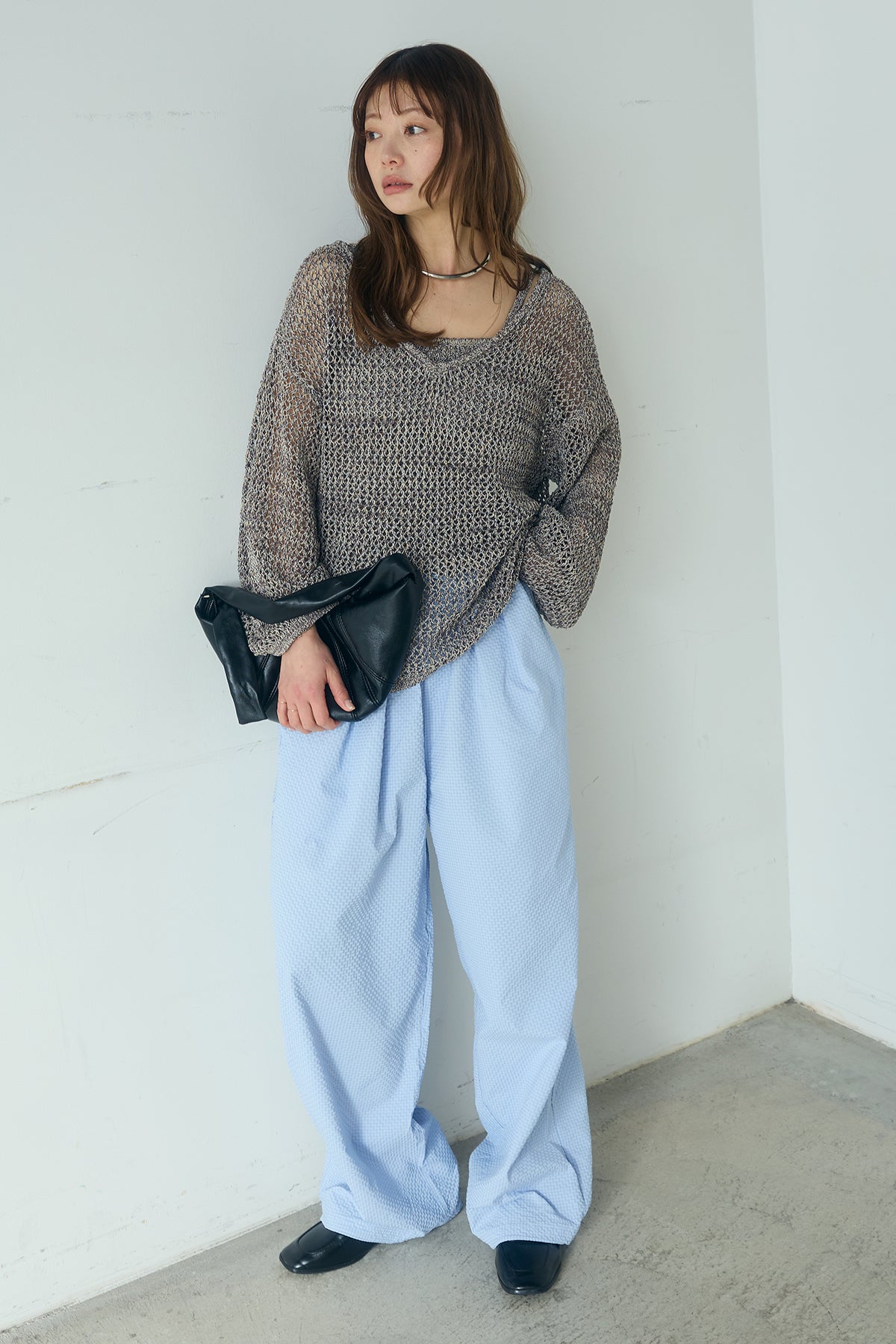 [SET]メッシュ編みビスチェセットVネックプルオーバー+シアサッカーイージーパンツ(2set)