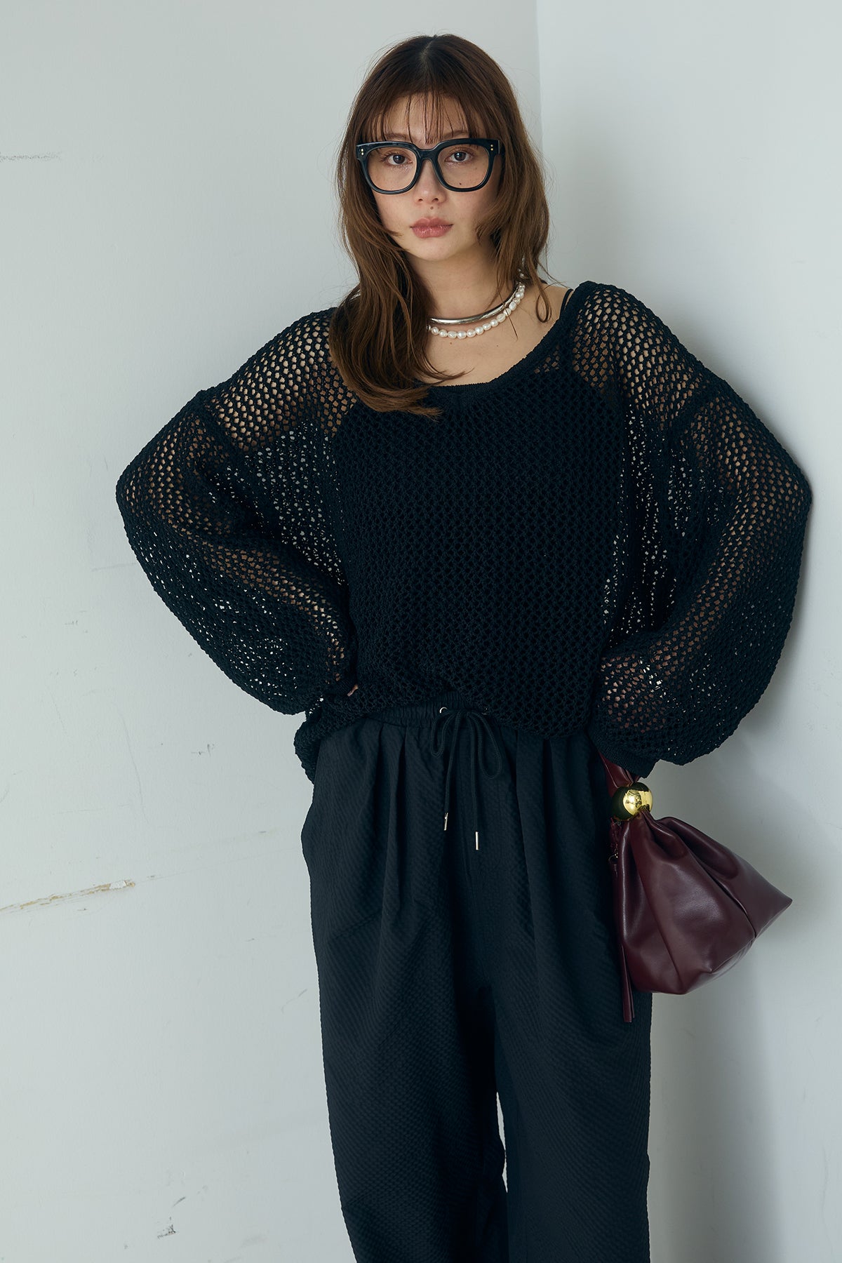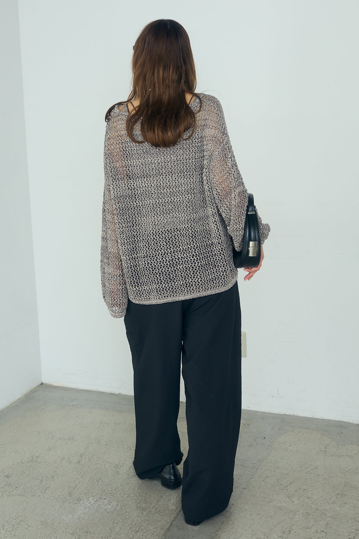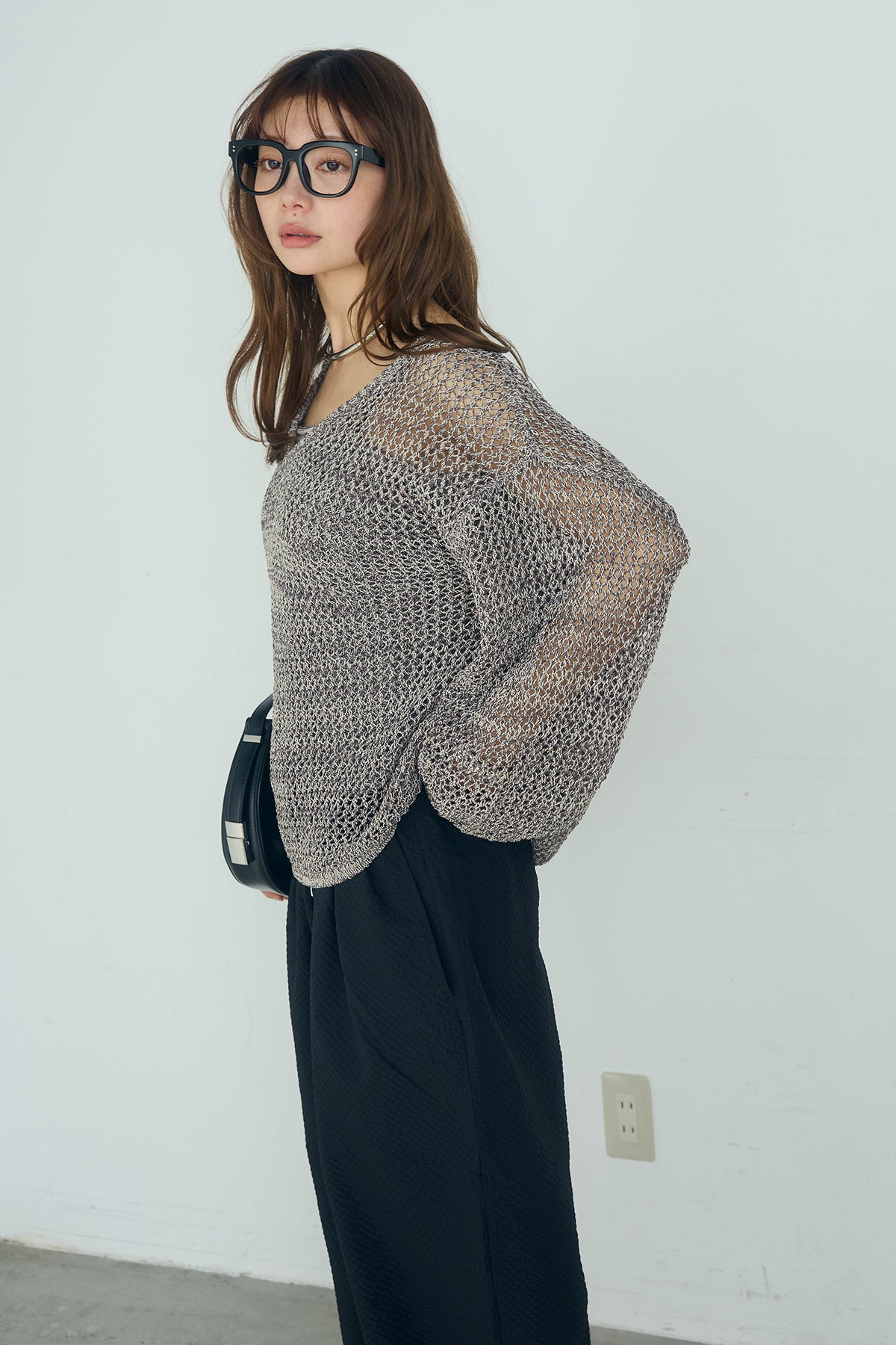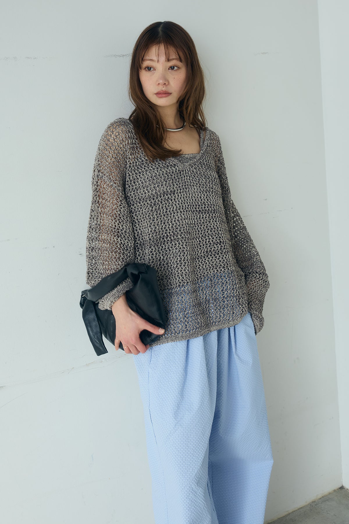 ナチュラルな透け感が魅力のメッシュニットプルオーバー。軽やかな編み地が涼しげな印象を与え、程よい抜け感のあるスタイリングを演出します。柔らかな風合いで、リラックス感のある着心地もポイントです。 ゆとりのあるシルエットと深めのVネックデザインが、顔まわりをすっきりとした印象に。インナーとのレイヤードを楽しめるデザインで、キャミソールやタンクトップと合わせることで、さまざまな表情のコーディネートが完成します。 パンツやスカートなど幅広いボトムスと相性が良く、カジュアルからナチュラルスタイルまで活躍。季節の変わり目にも取り入れやすく、デイリーコーデに抜け感をプラスしてくれる一着です。