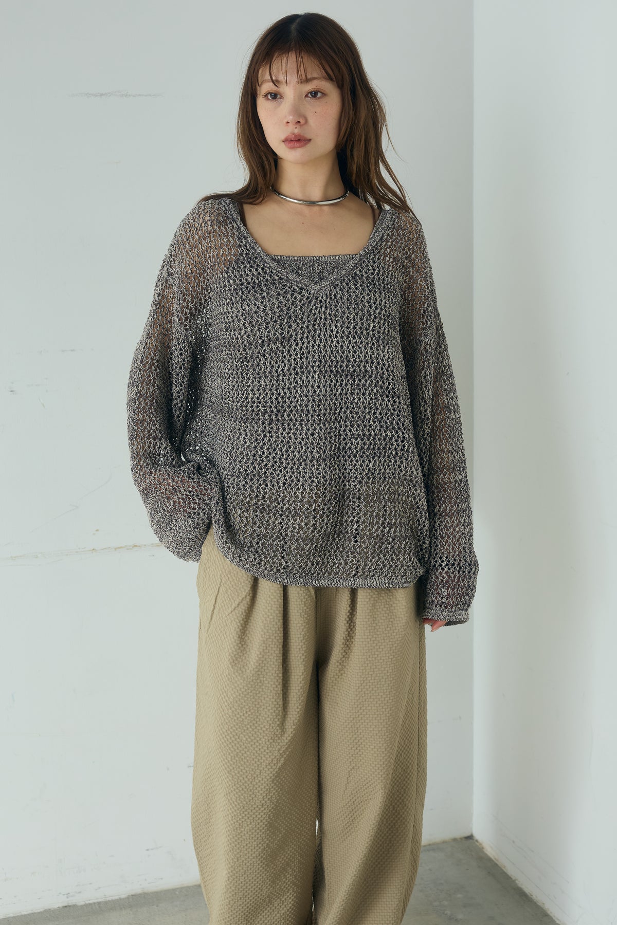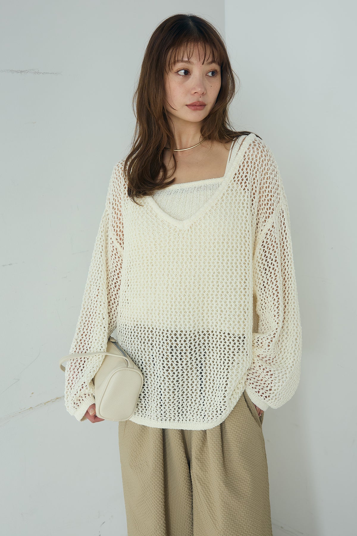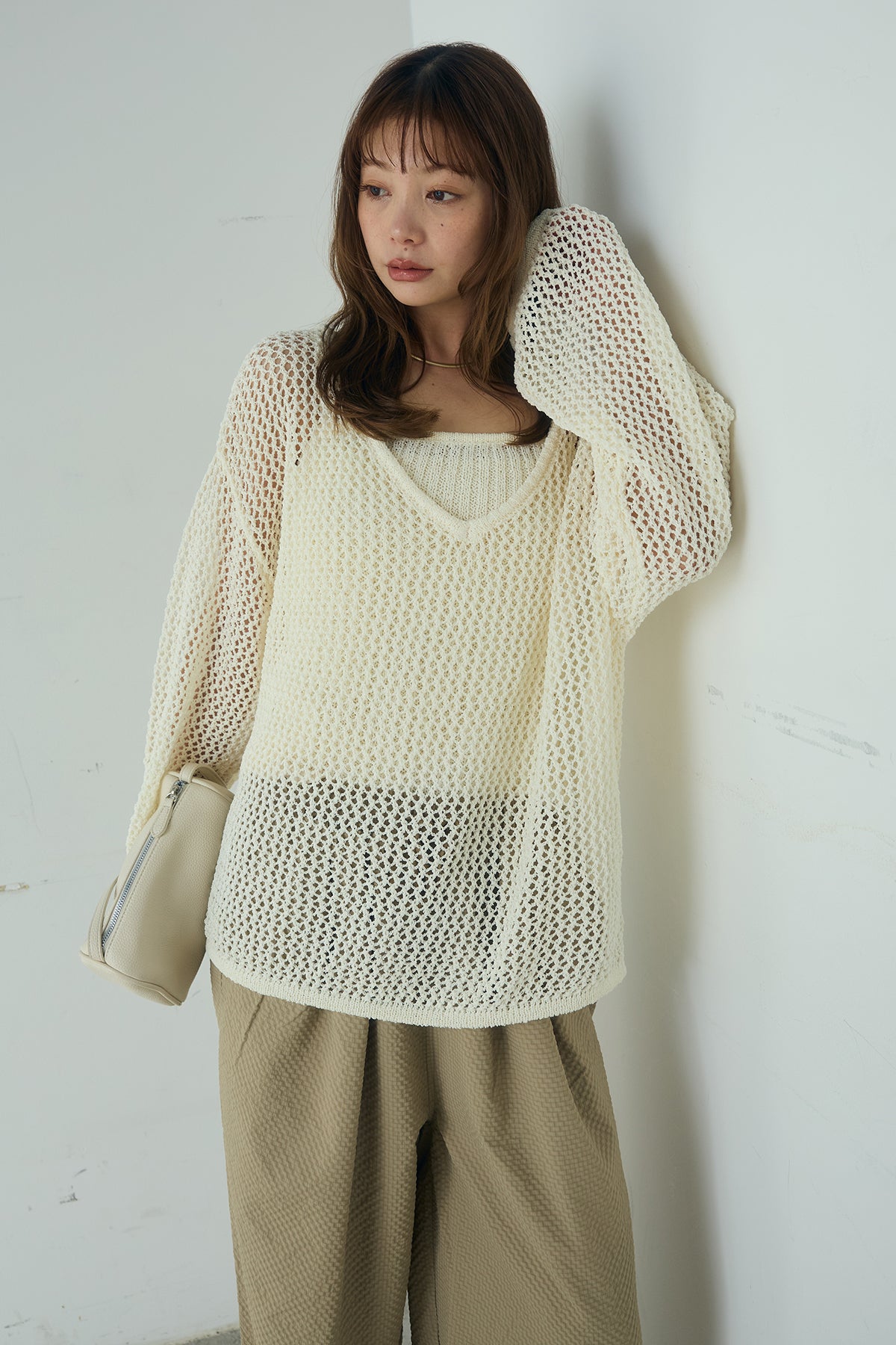 ◆ メッシュ編みビスチェセットVネックプルオーバー