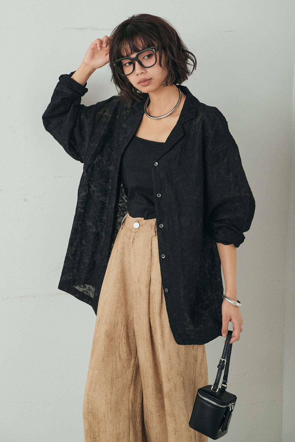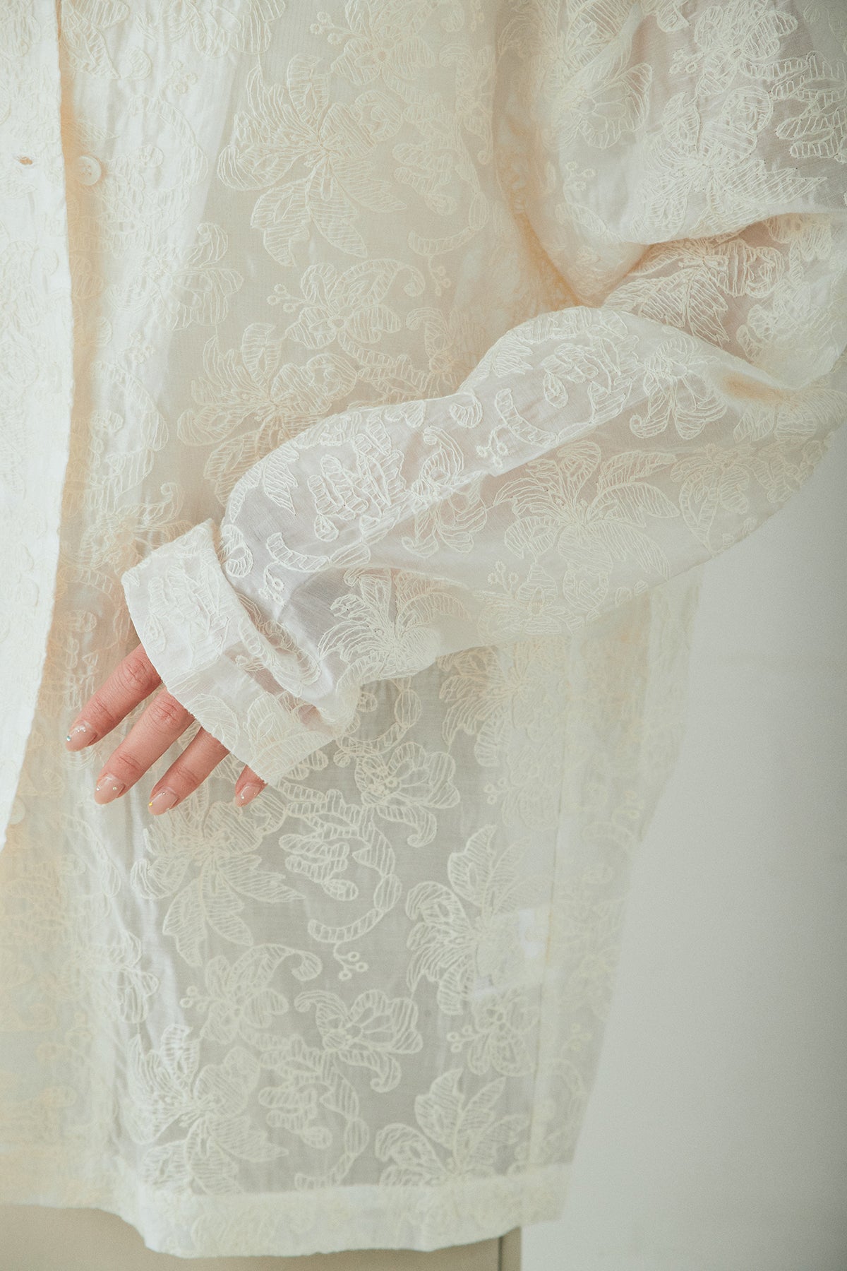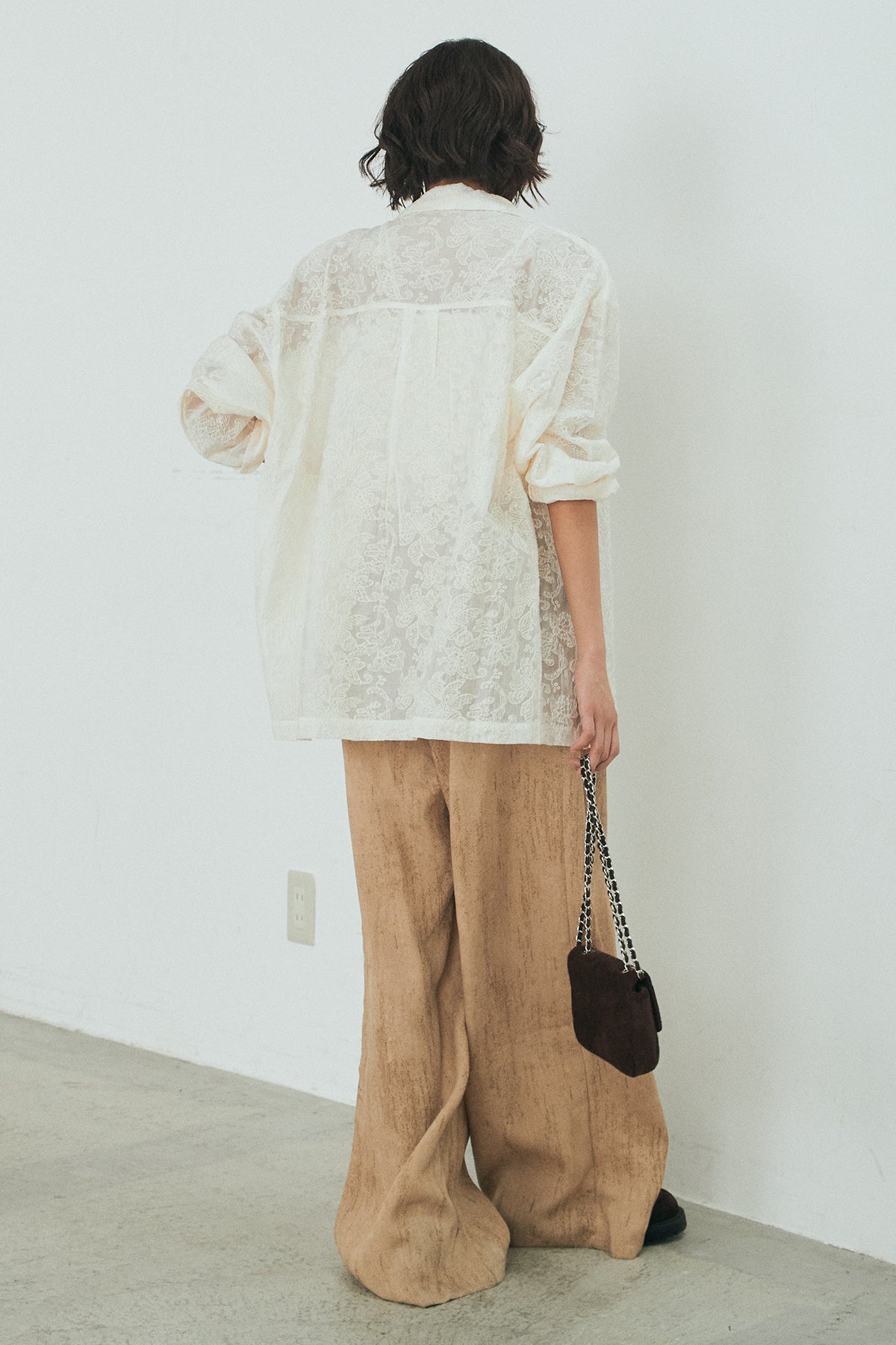 繊細な刺繍をあしらったシアー素材が印象的なオープンカラーシャツ。ほんのり透け感のある軽やかな風合いが、スタイリングに抜け感を添えます。ゆとりのあるシルエットでさらりと羽織りやすく、ボタンを閉じてトップスとしても活躍。インナーとのレイヤード次第で表情が変わり、幅広い着こなしを楽しめます。デイリーからきれいめなスタイルまで馴染む一着です。
