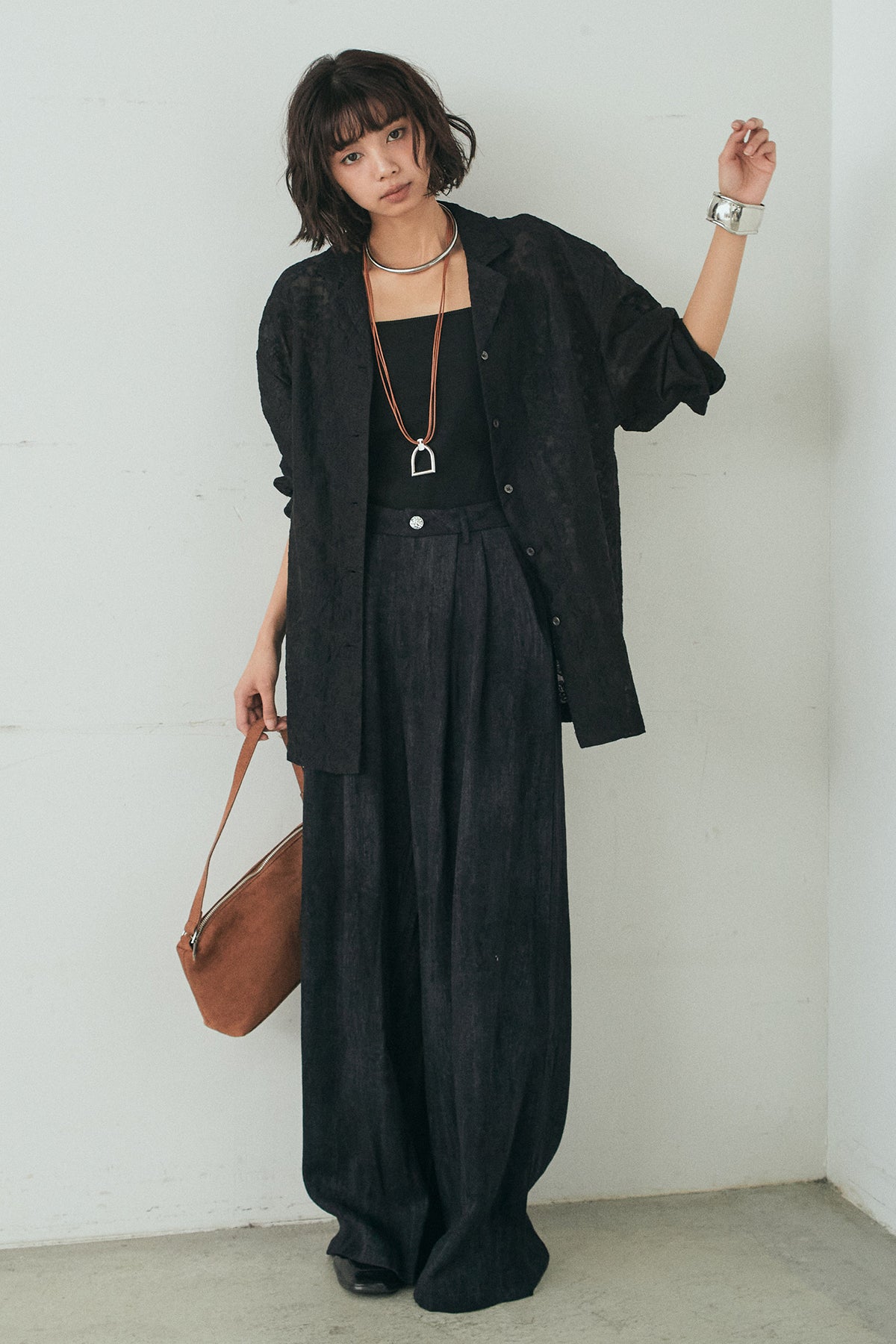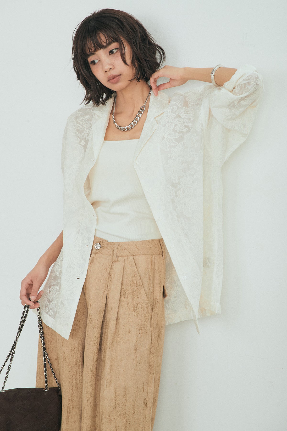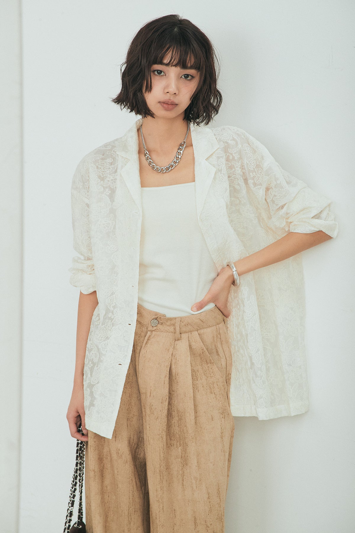 刺繍シアーオープンカラーシャツの他のセットページはこちら
