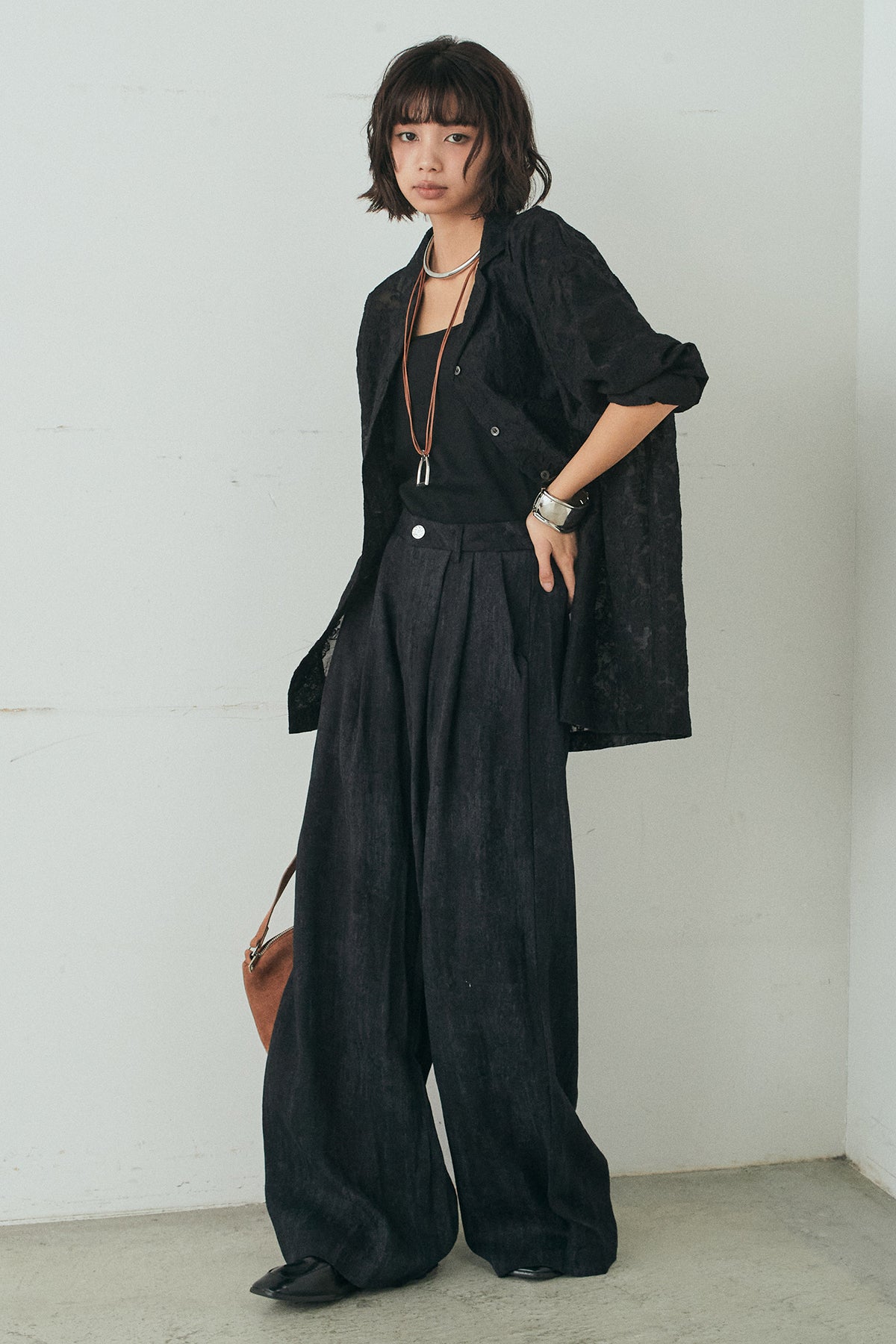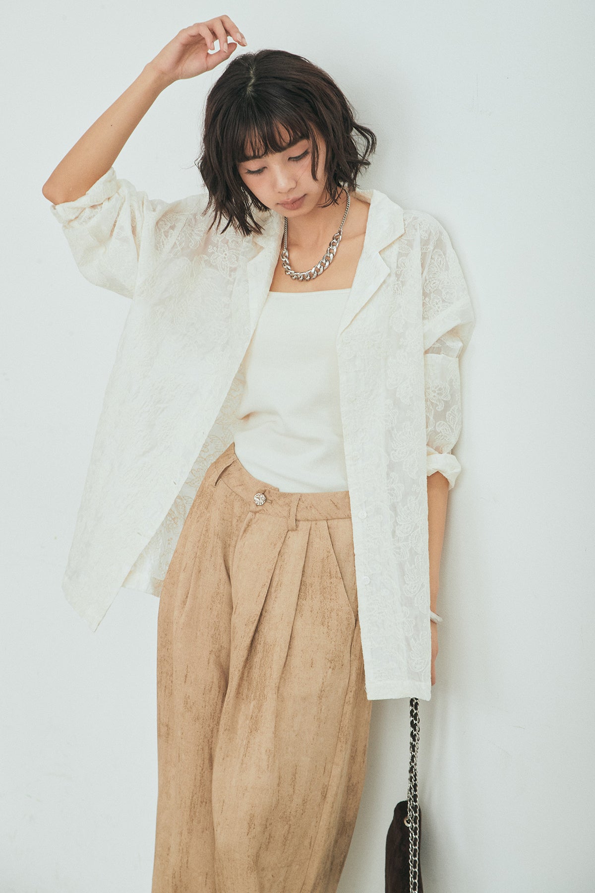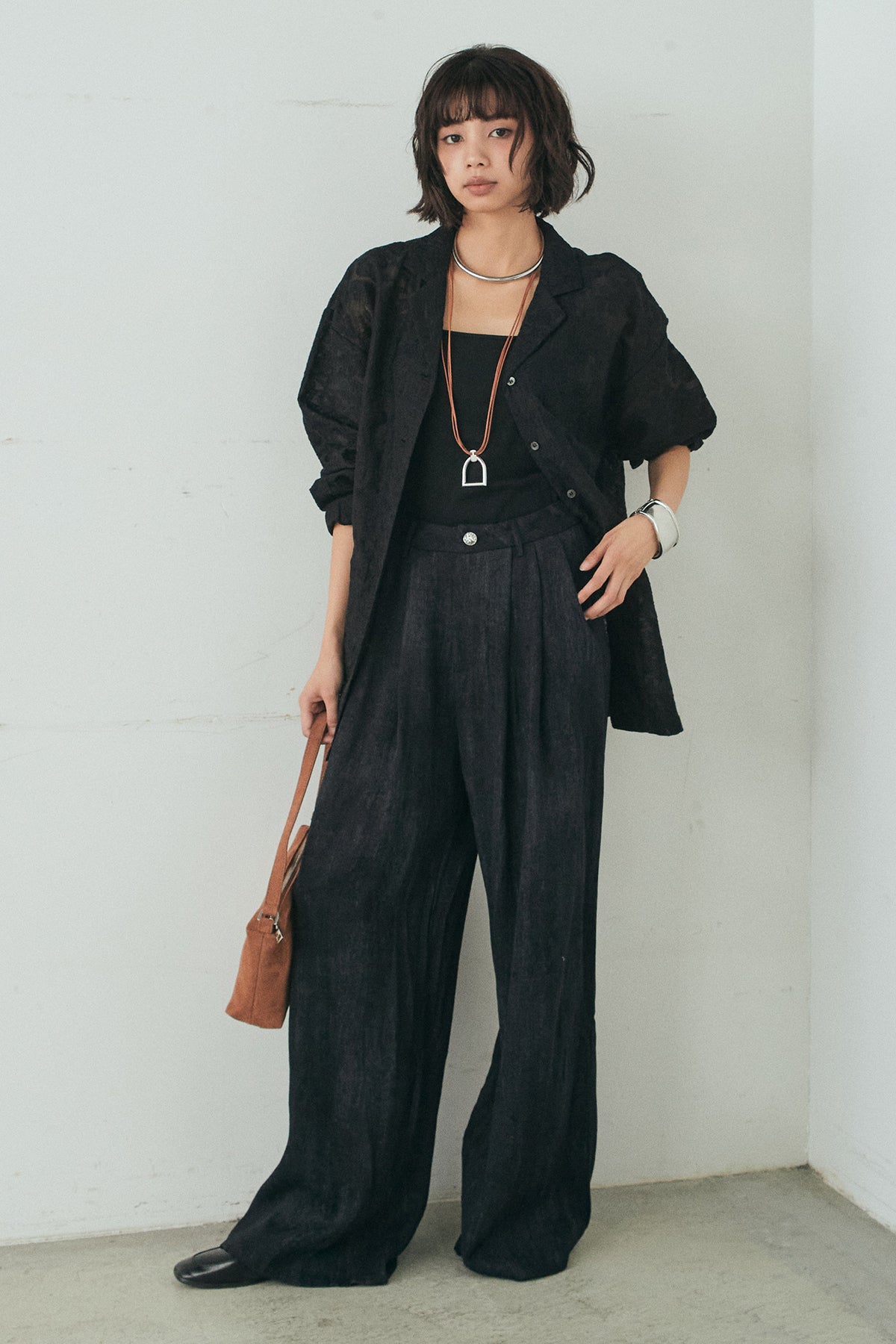 刺繍シアーオープンカラーシャツの他のセットページはこちら