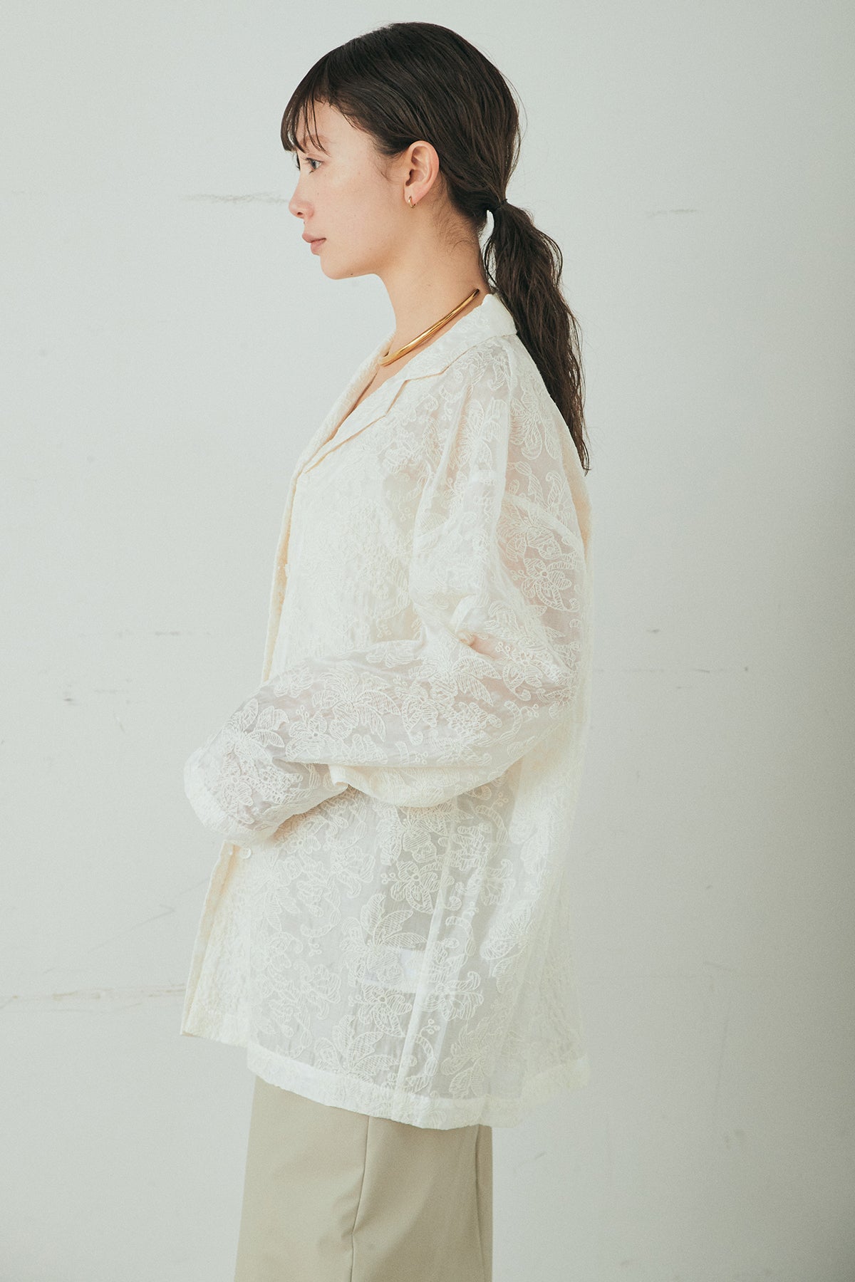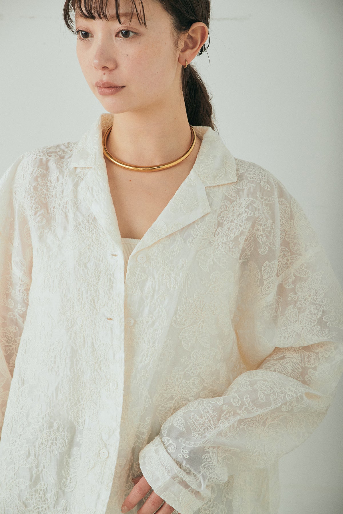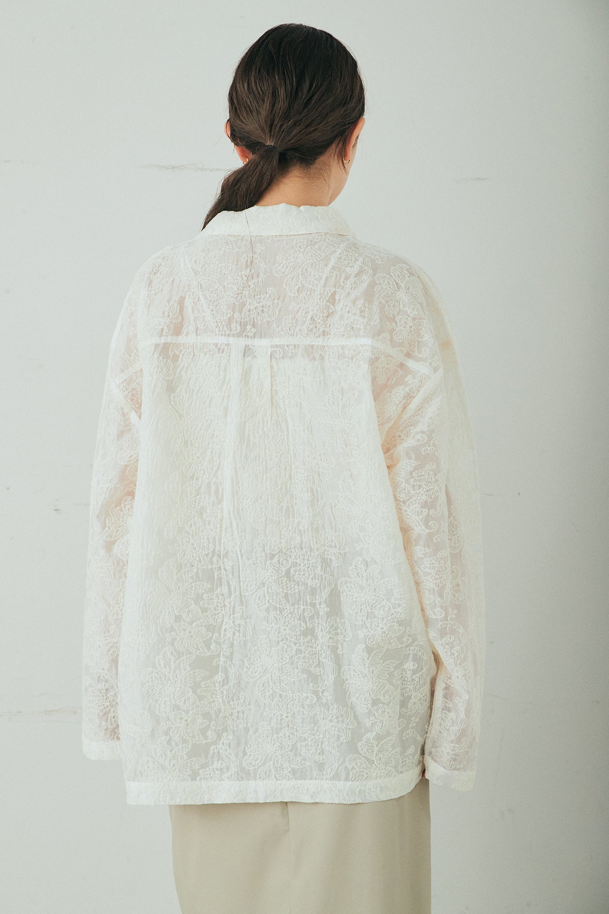 ◆ 刺繍シアーオープンカラーシャツ
