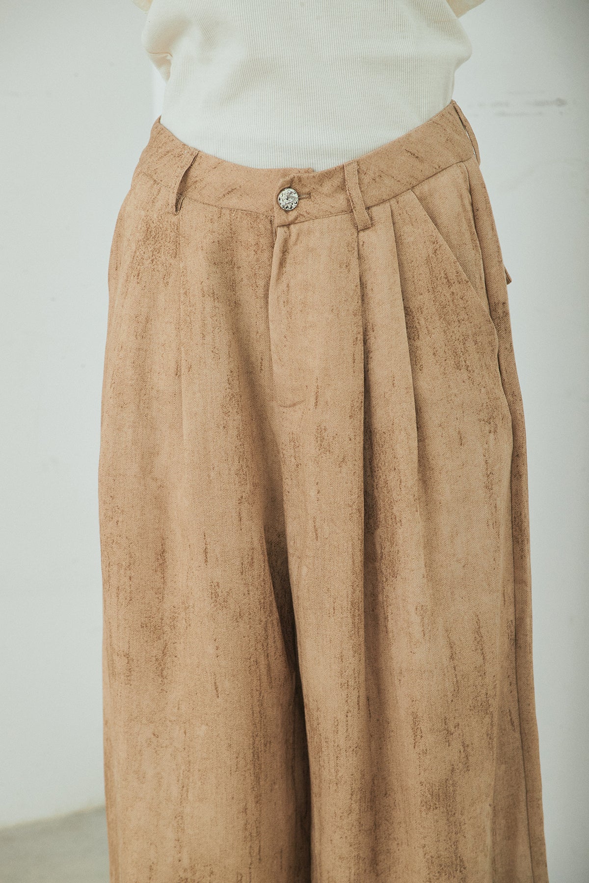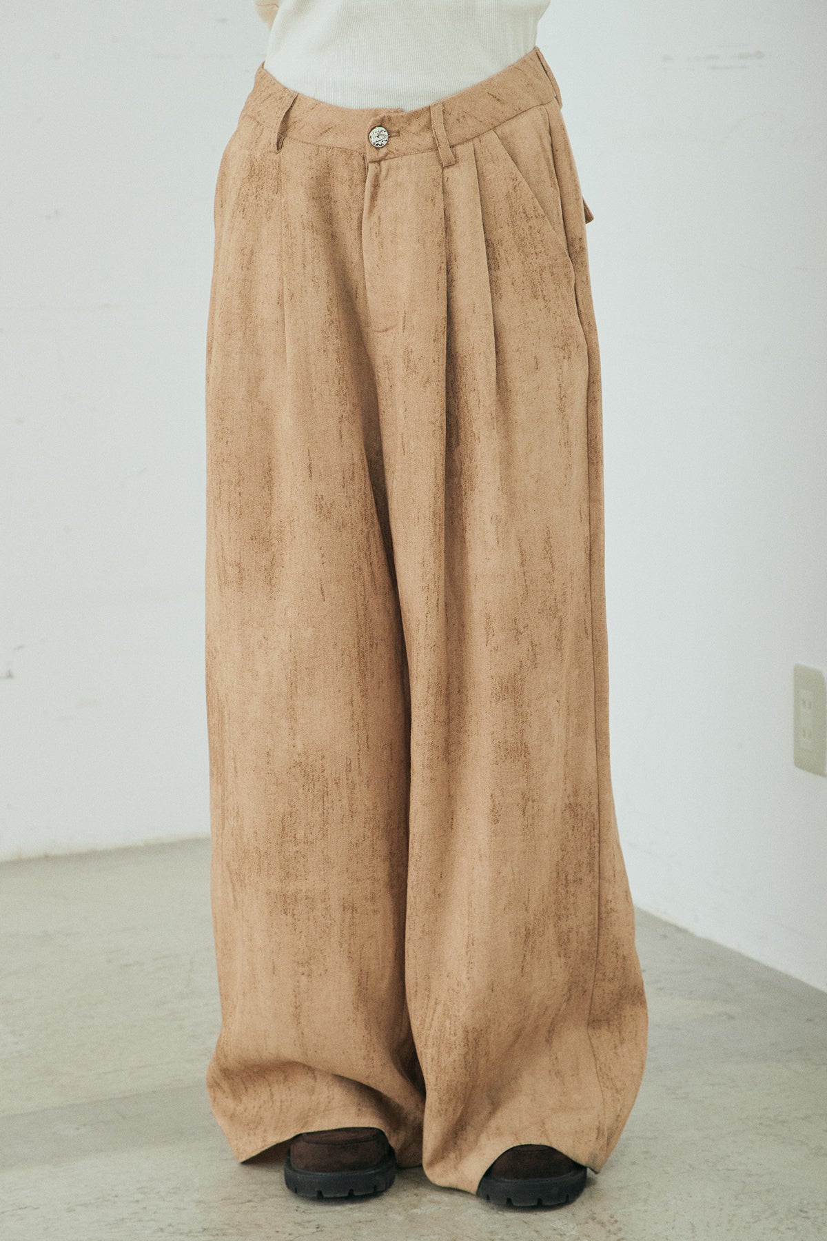 ◆ リネン混かすれ柄ワイドパンツ