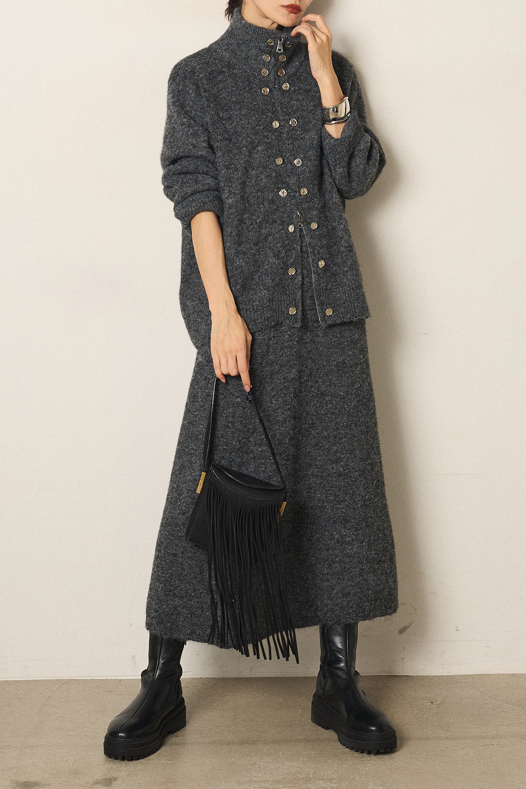 [SET]ハイネックメタルプレートニットスカートSETUP