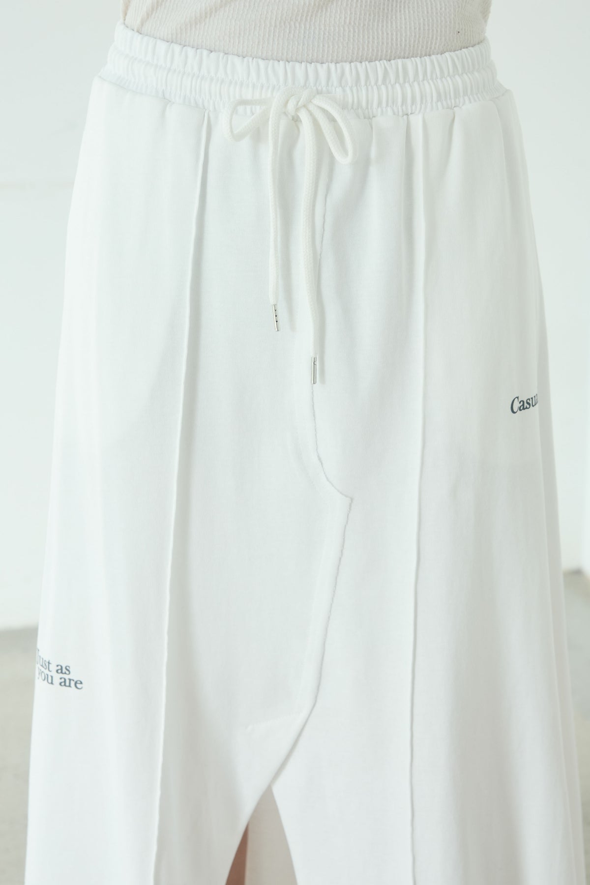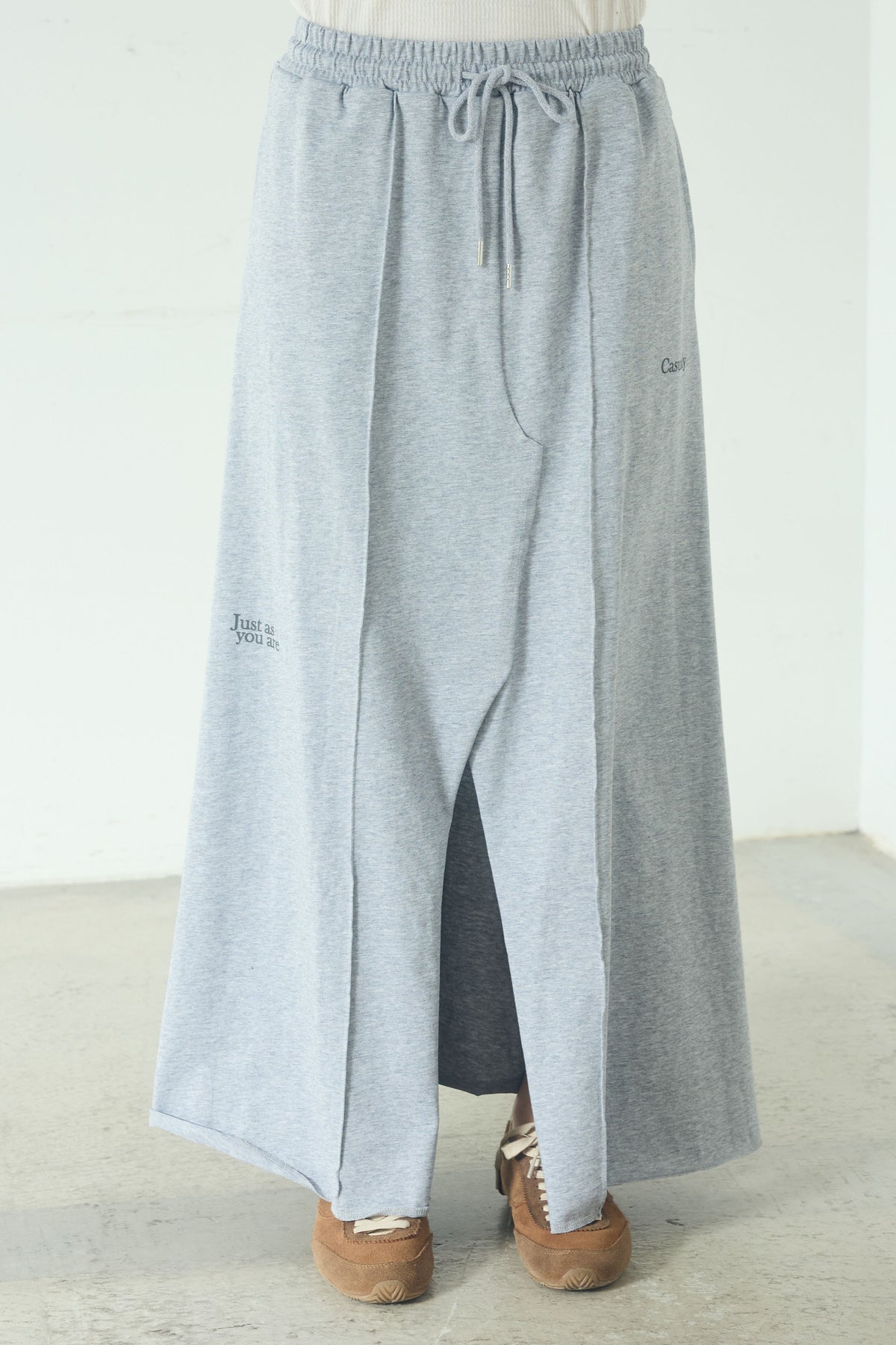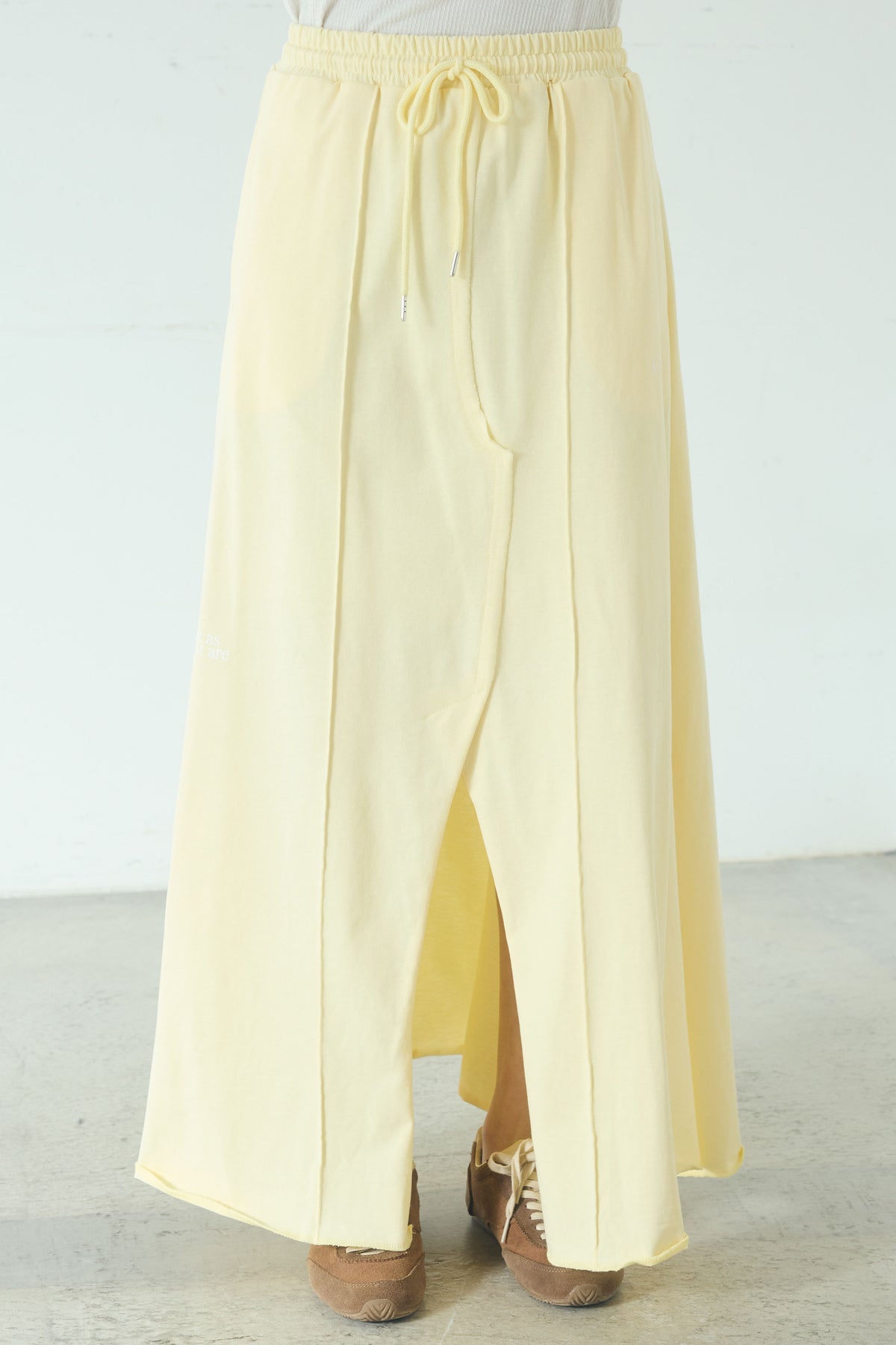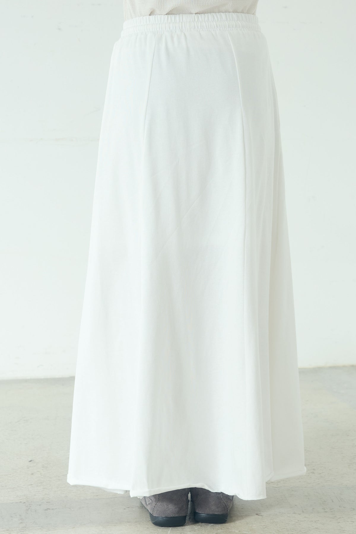 ラフさの中に程よい存在感を持たせた、Aラインシルエットのスウェットスカート。 落ち感のある素材とフロントのスリットデザインで、動きやすさと抜け感を両立しています。 ウエストはドロスト仕様でリラックス感があり、トップスを選ばずバランスよく合わせやすい一枚。 カジュアルなスタイリングはもちろん、きれいめアイテムと合わせたミックスコーデにも取り入れやすいアイテムです。