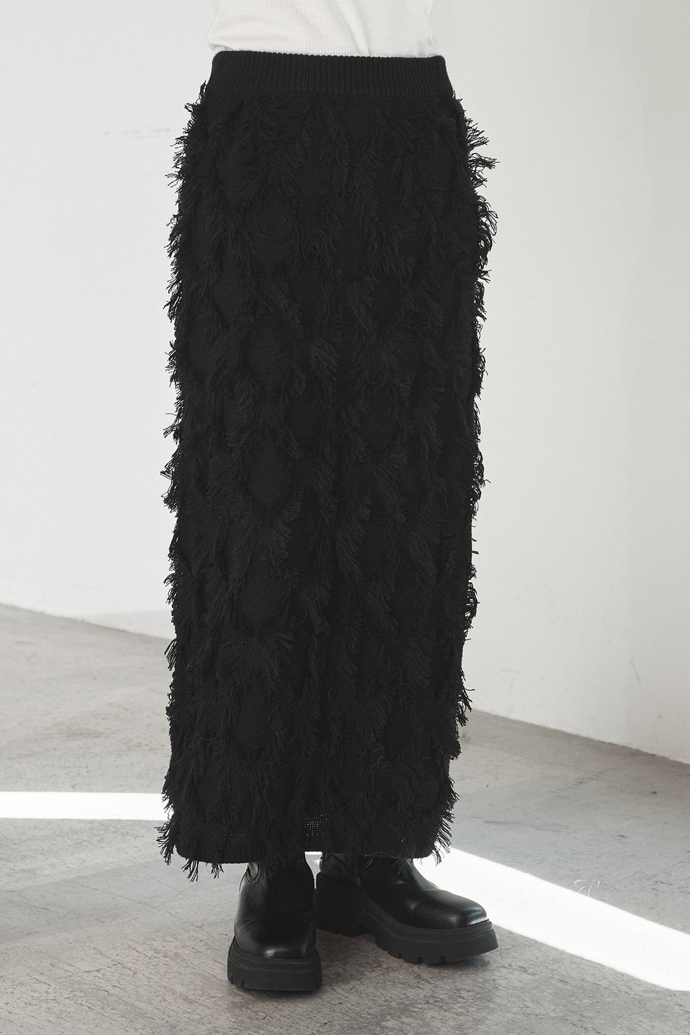 【即納】カットフリンジニットタイトスカート