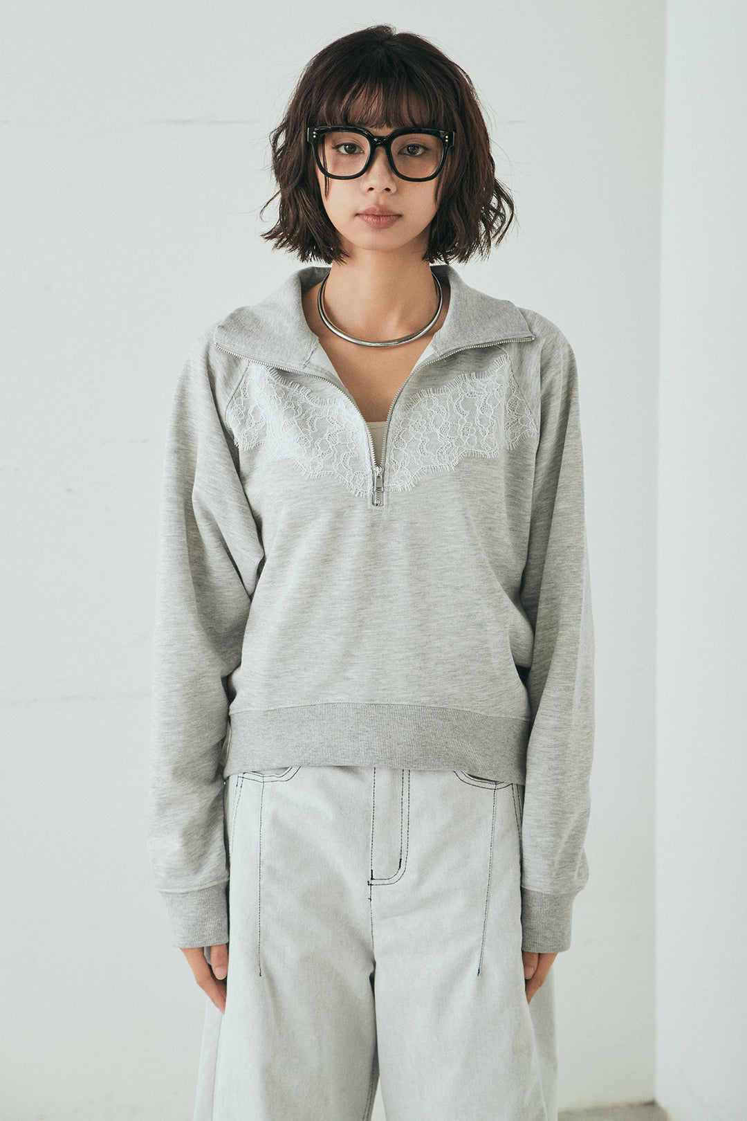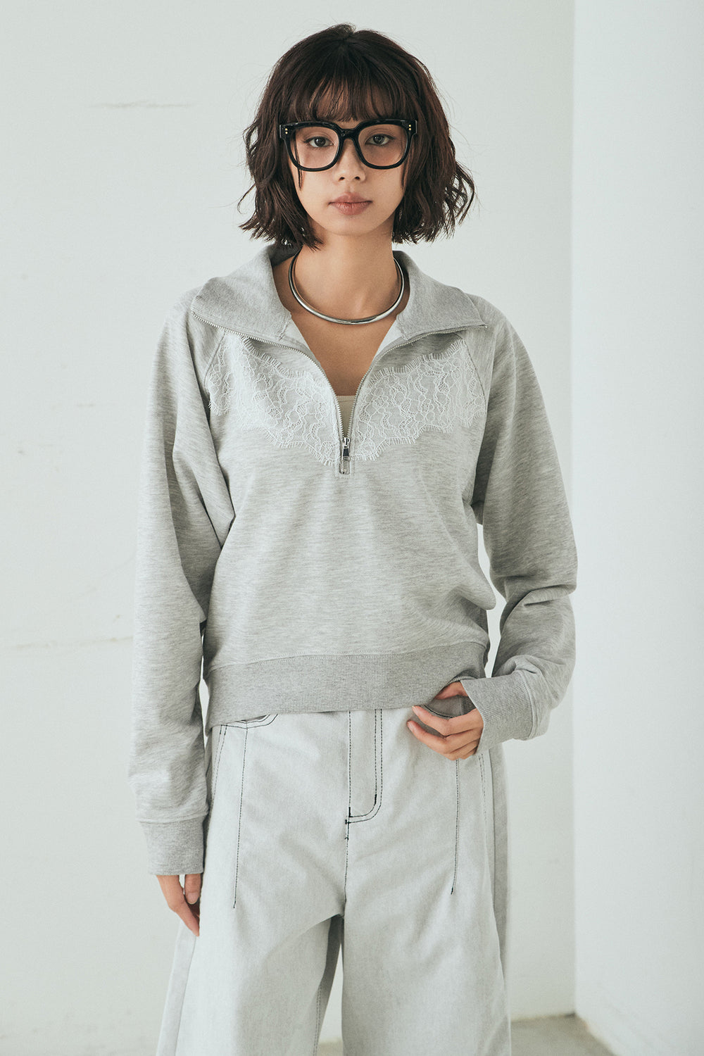 リバーレースハーフジップ裏毛スウェット