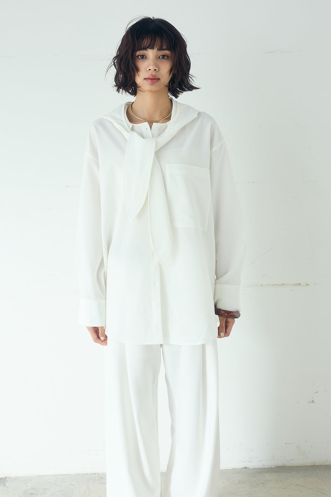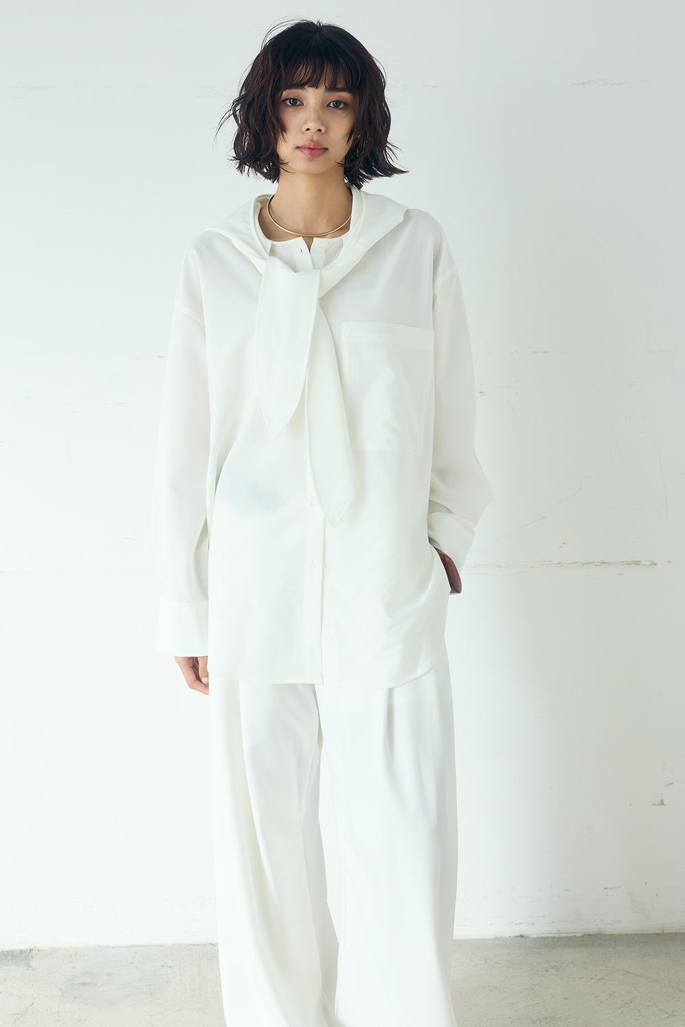 無地タイ付フーディーBIGシャツ