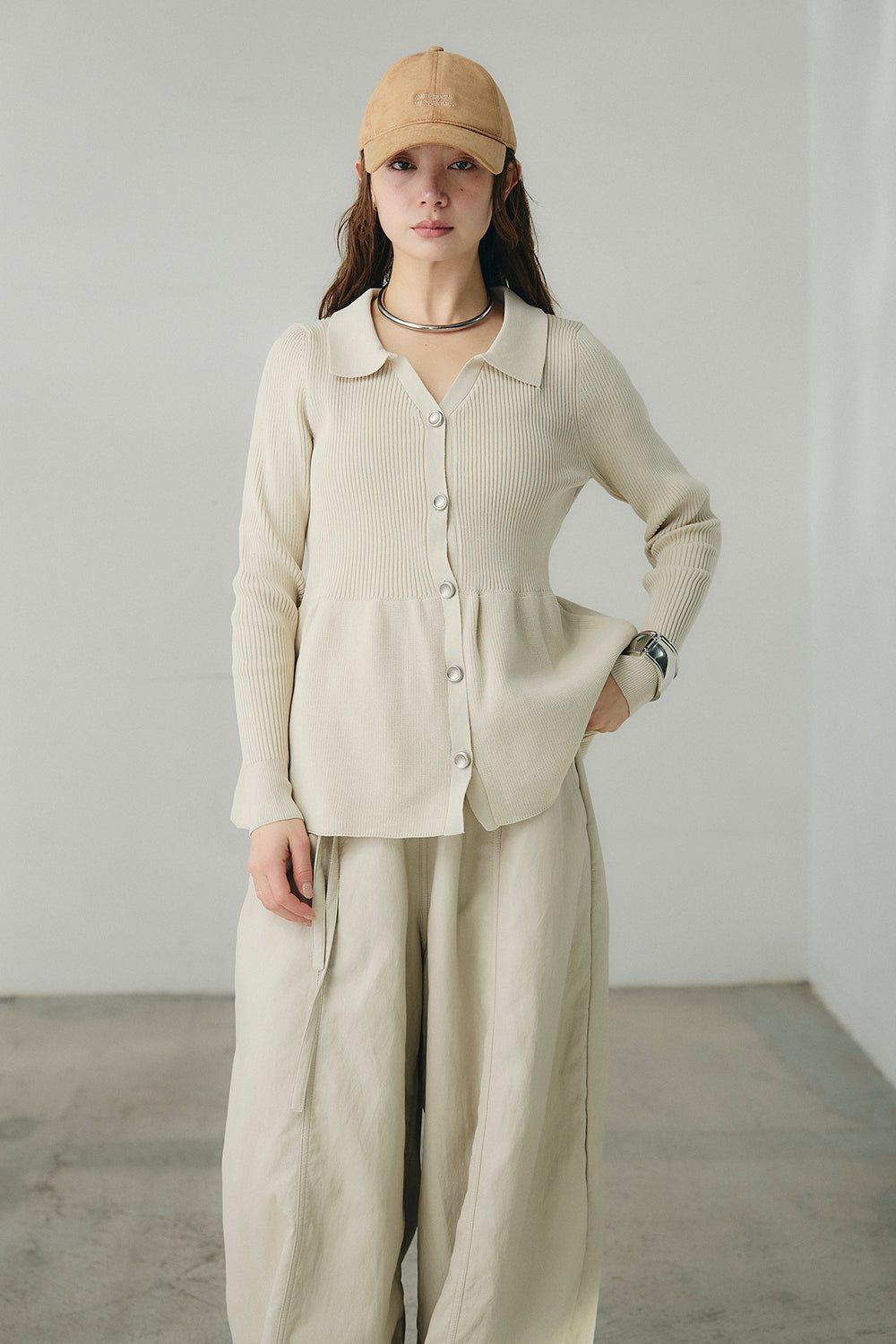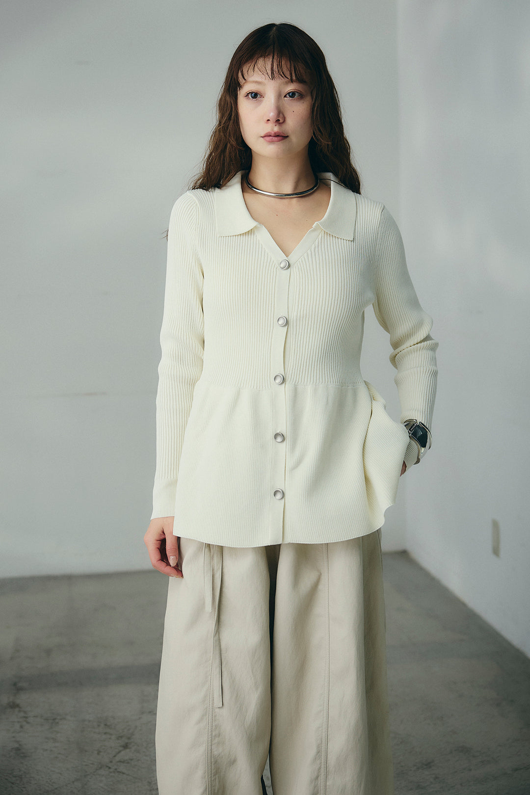 スキッパーペプラムニット