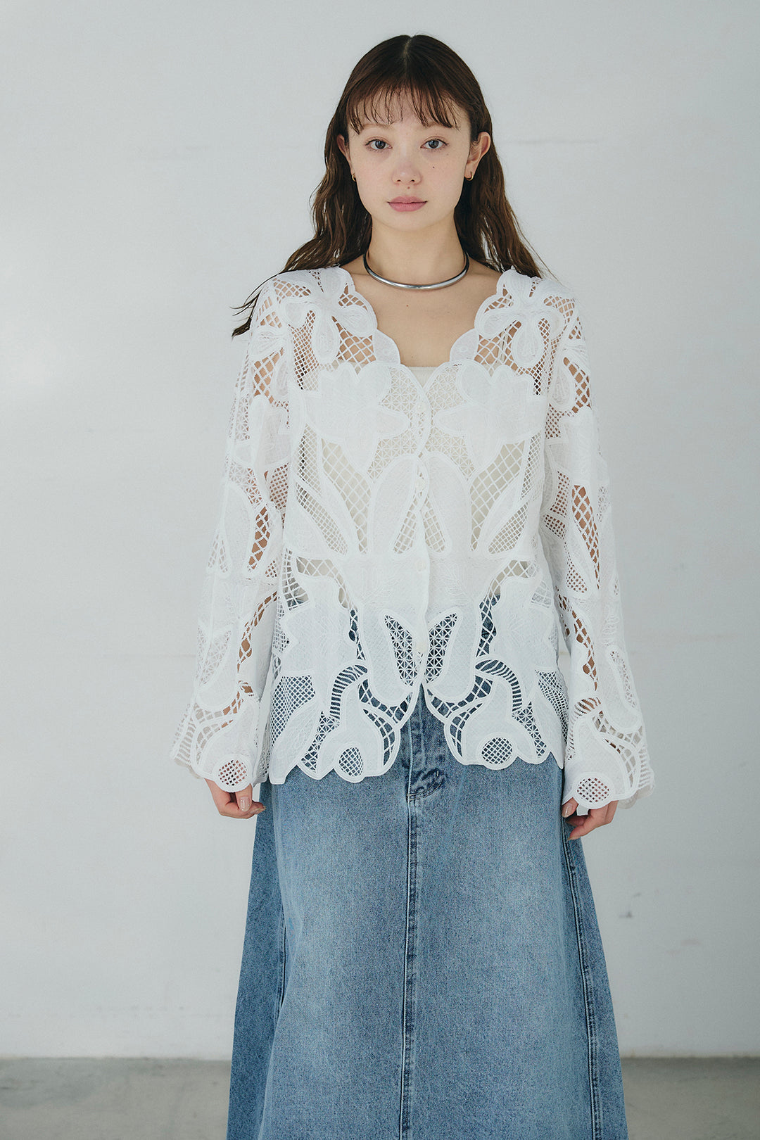 ローンレースオープンカラーシャツ