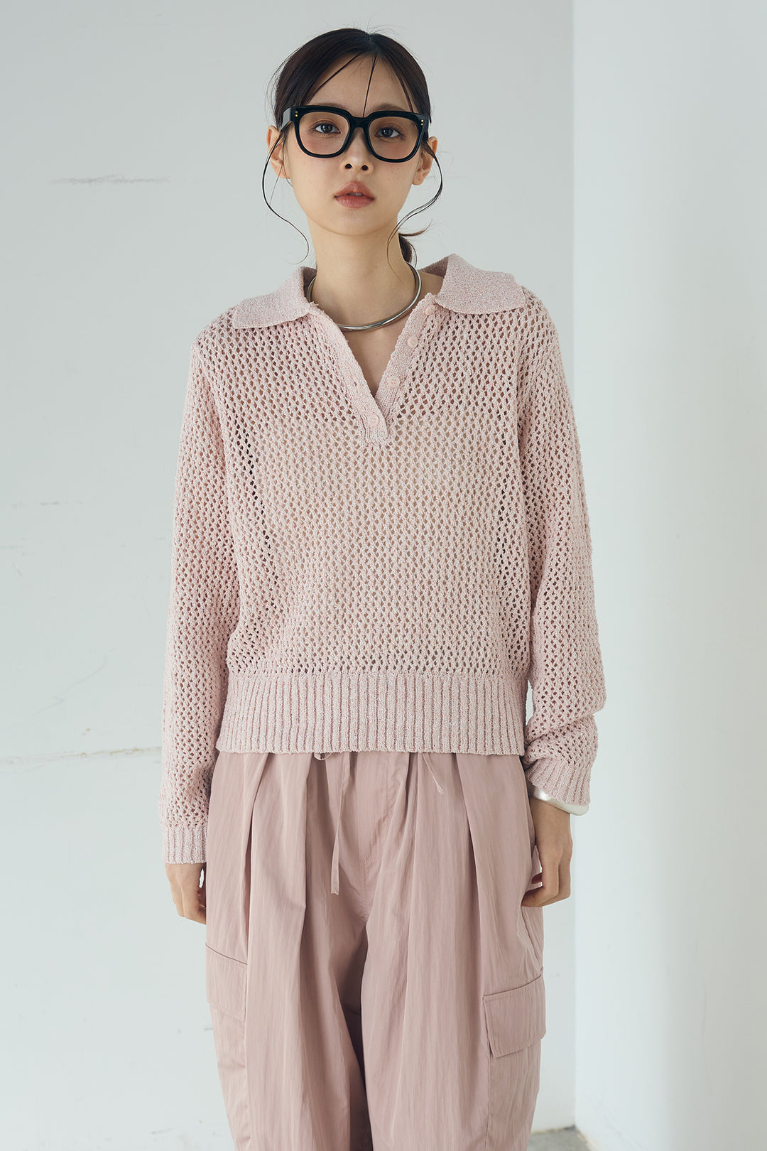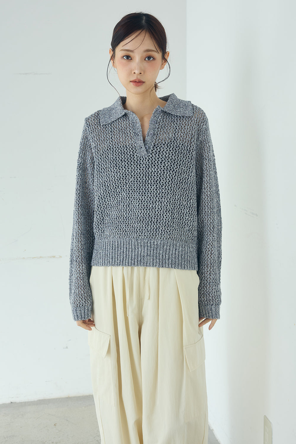 ミックスメッシュポロニット