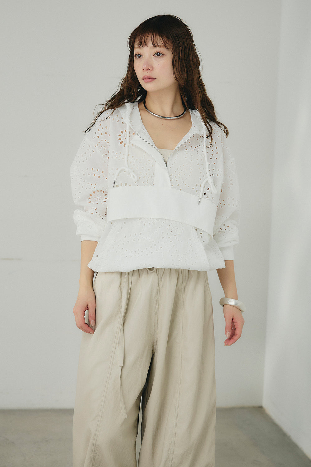 レースハーフジップアップフーディー
