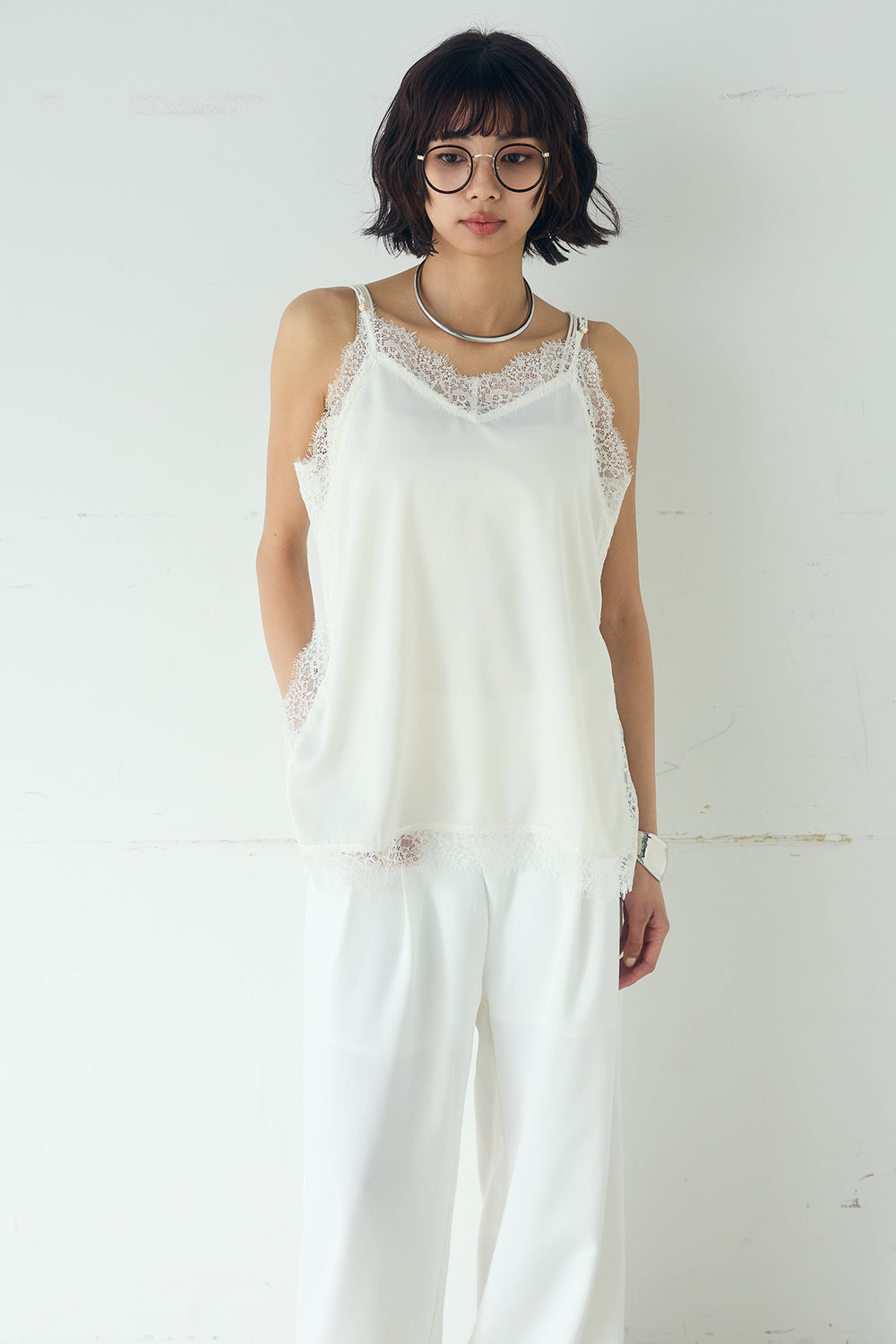 サテンレースアシメキャミ