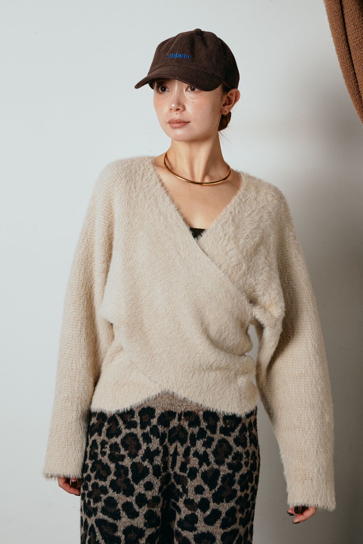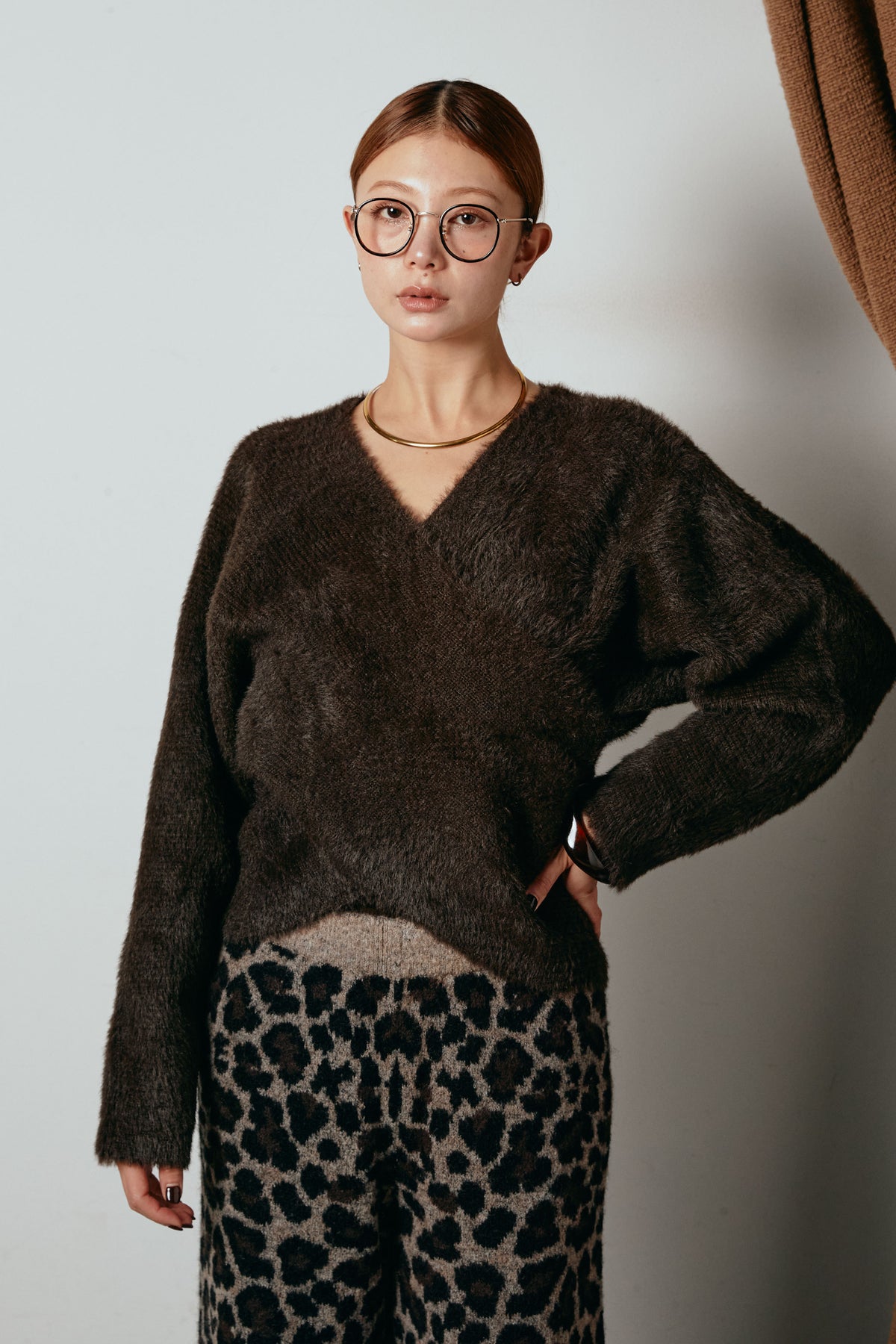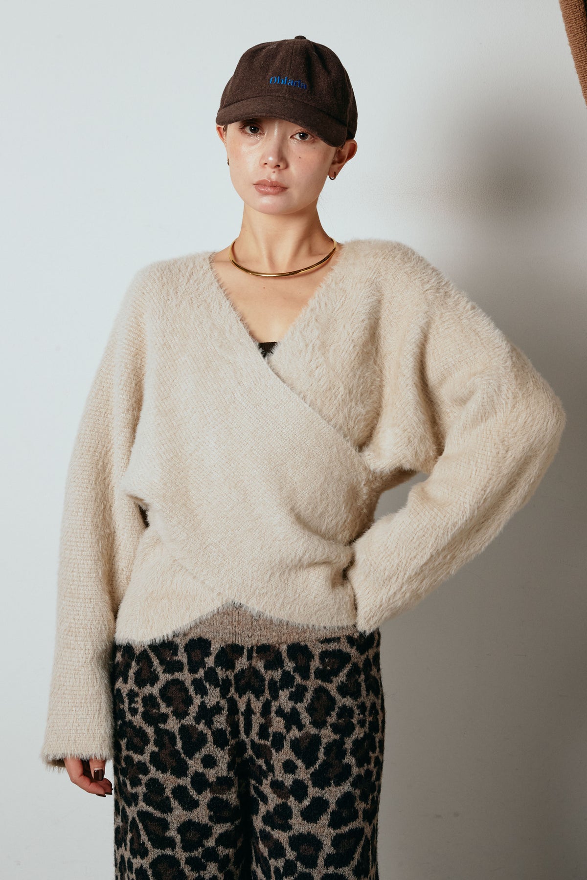 ふんわりとしたシャギーの質感が魅力のカシュクールニットトップス。 ラップ風のデザインが自然な立体感を生み、抜け感あるスタイルに仕上げます。 柔らかな肌ざわりで着心地も快適。 シンプルなボトム合わせでもこなれた印象になり、レイヤードスタイルにも活躍する万能アイテムです。