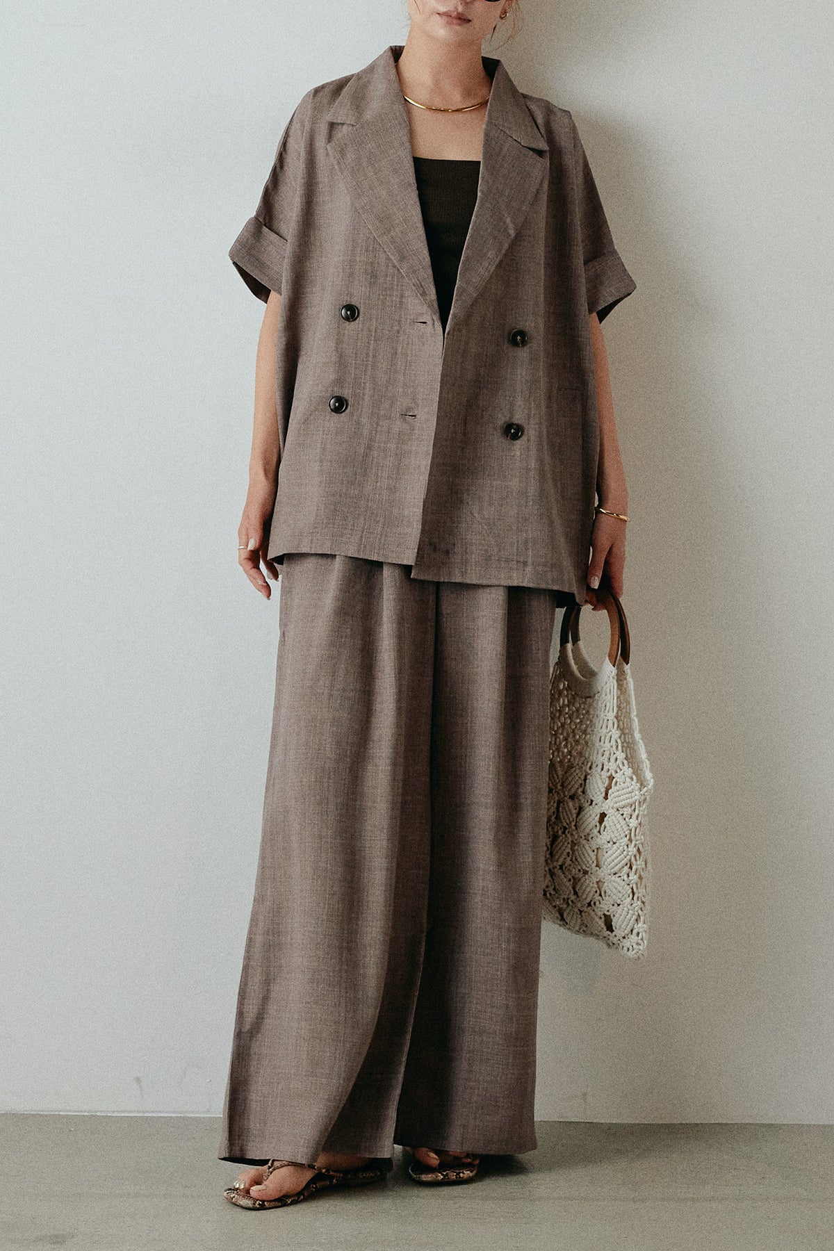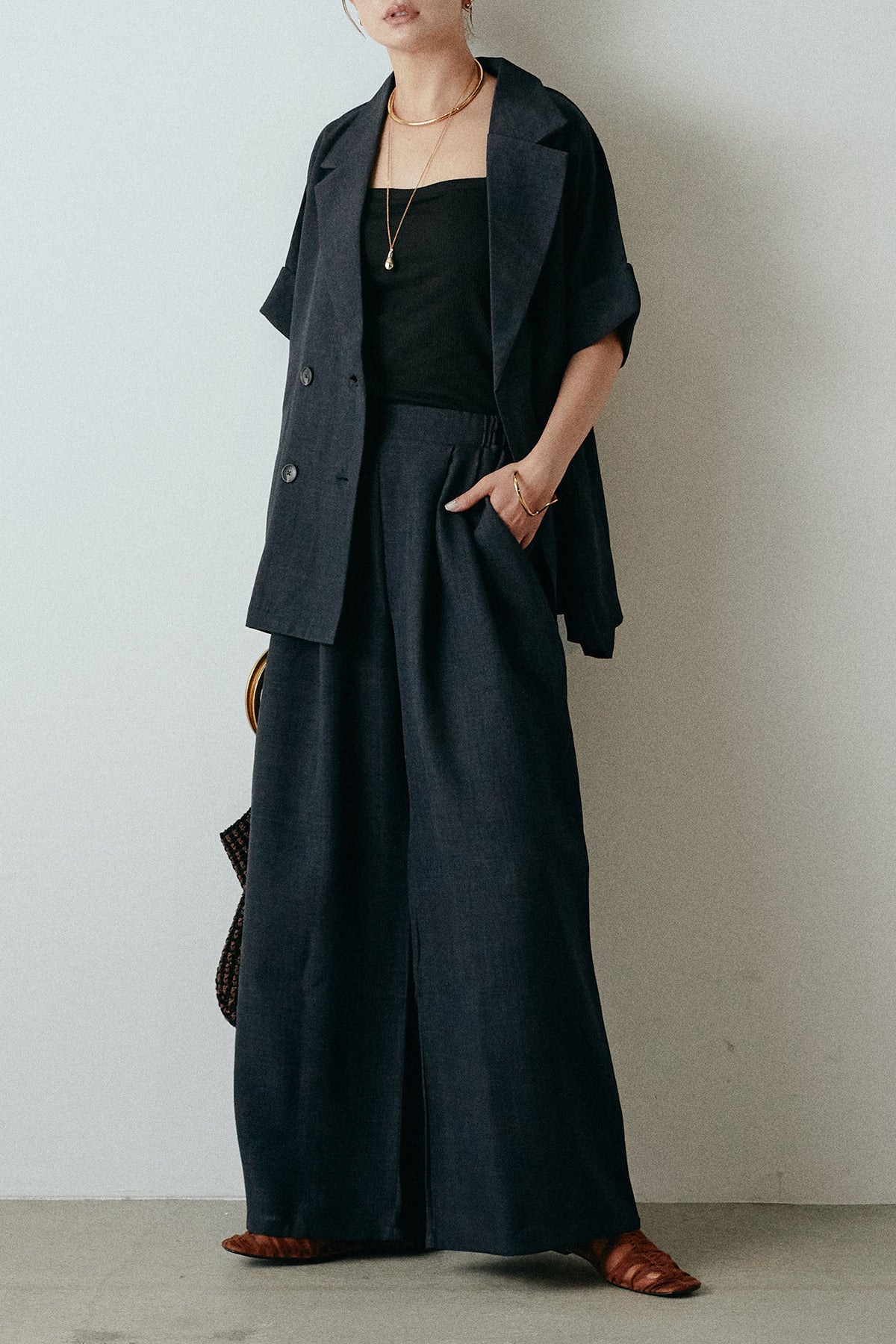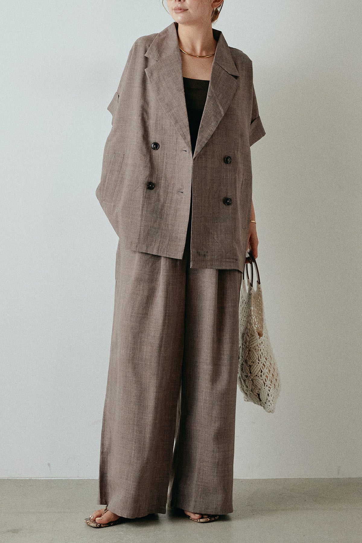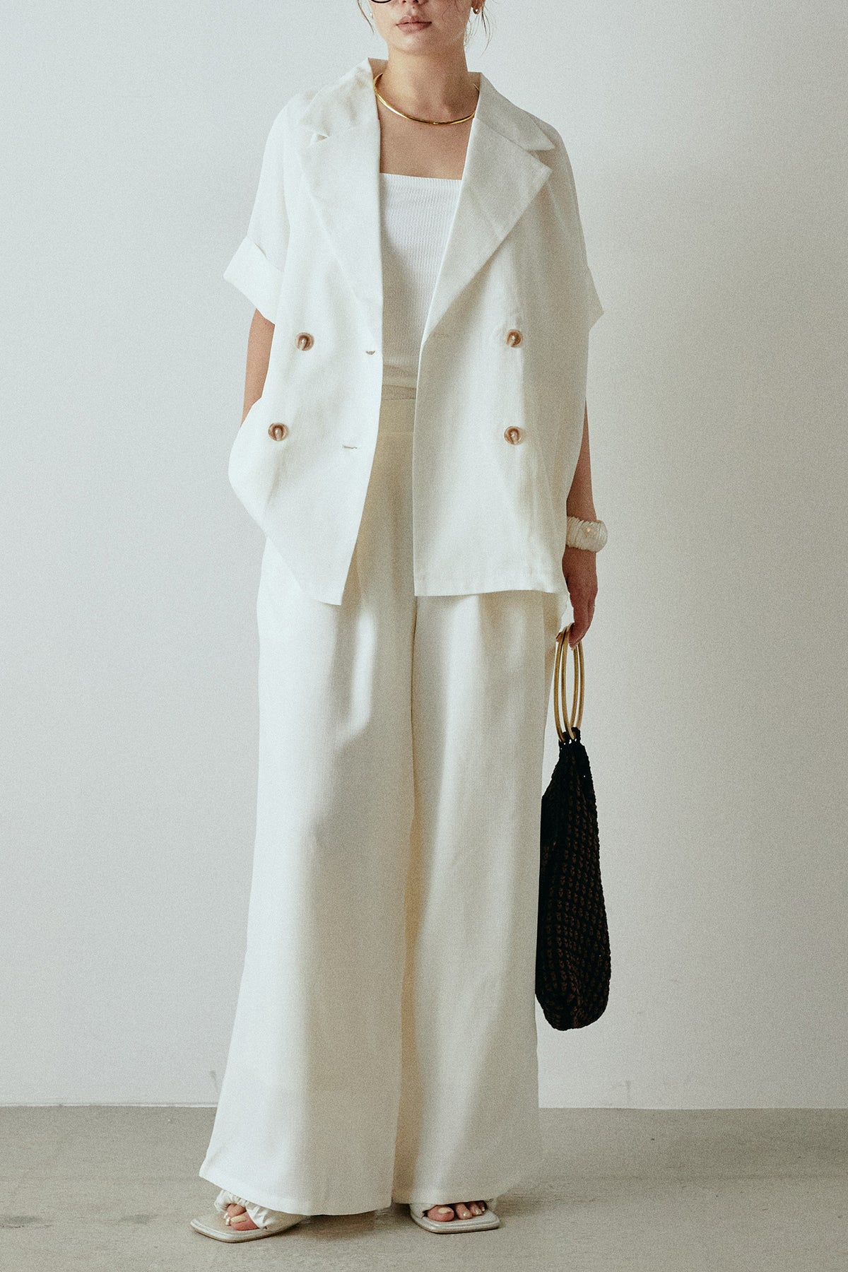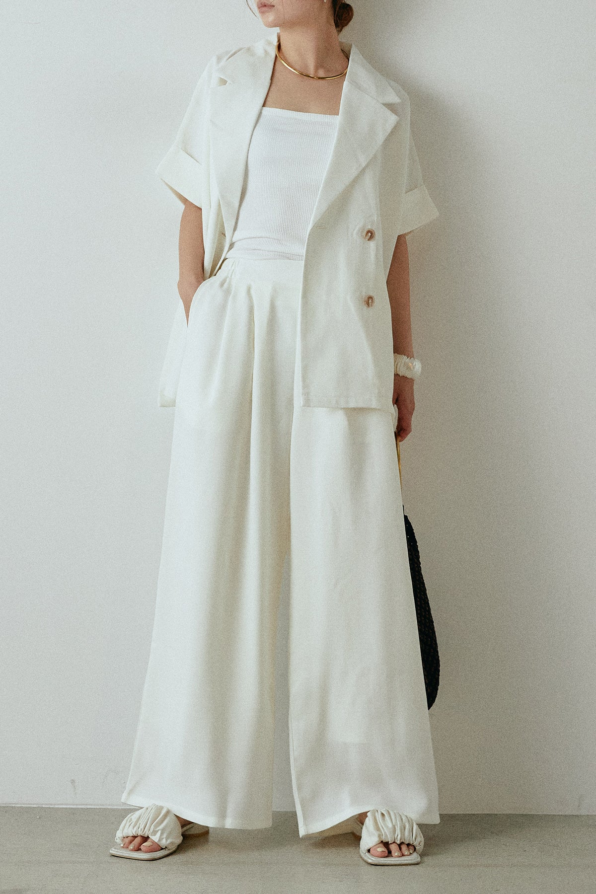 サマースラブツイードタック入りワイドパンツを含んだコーデセット商品を探す↓