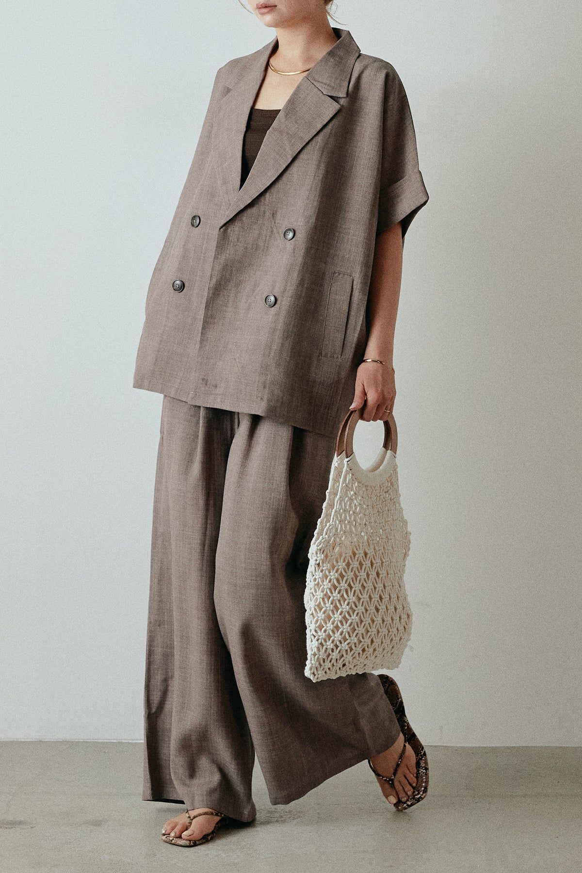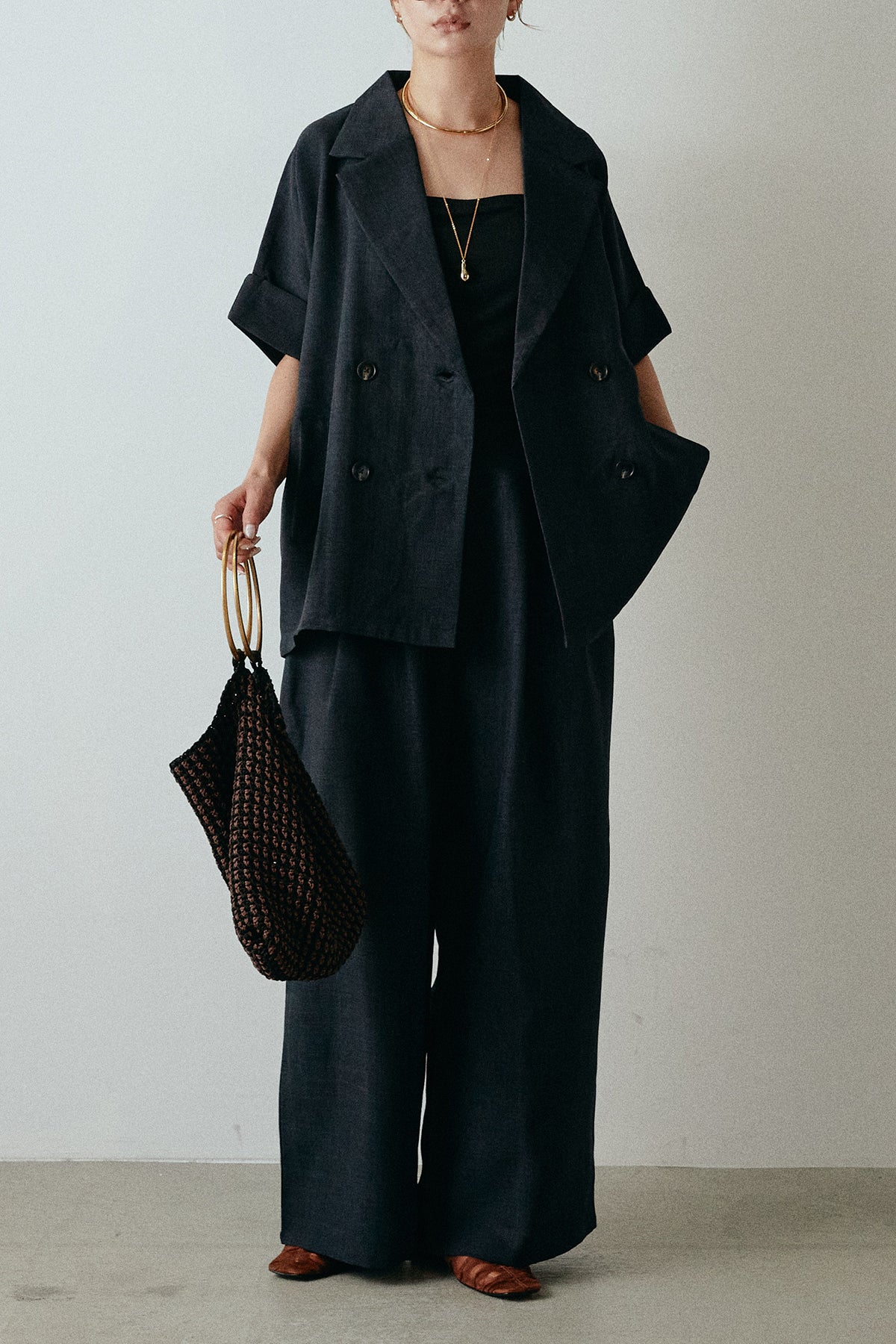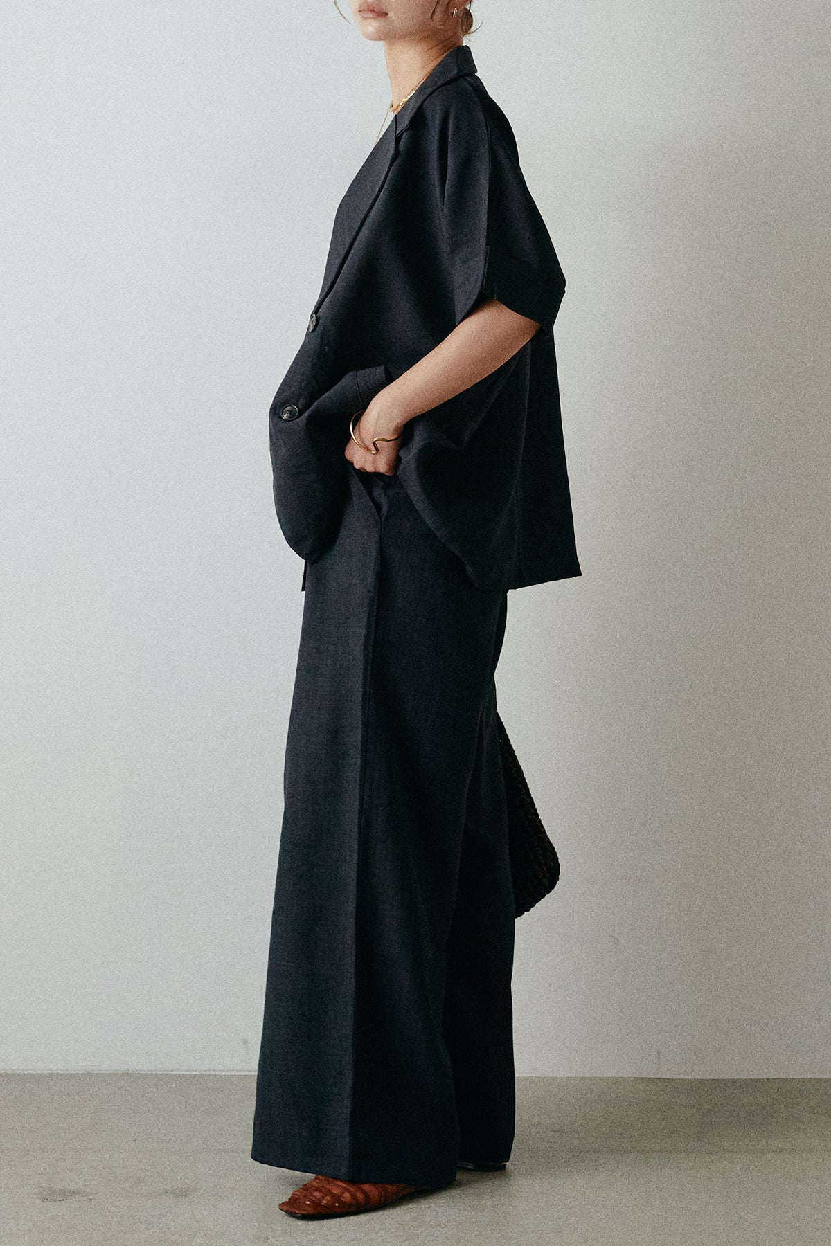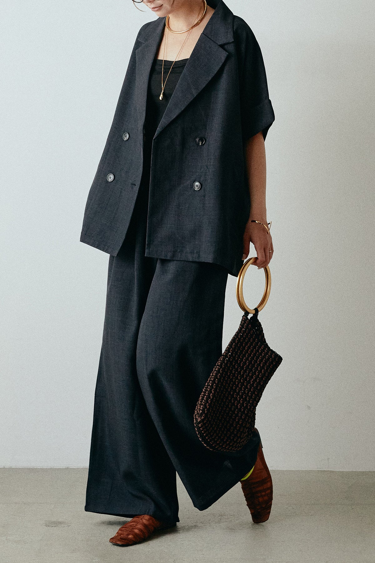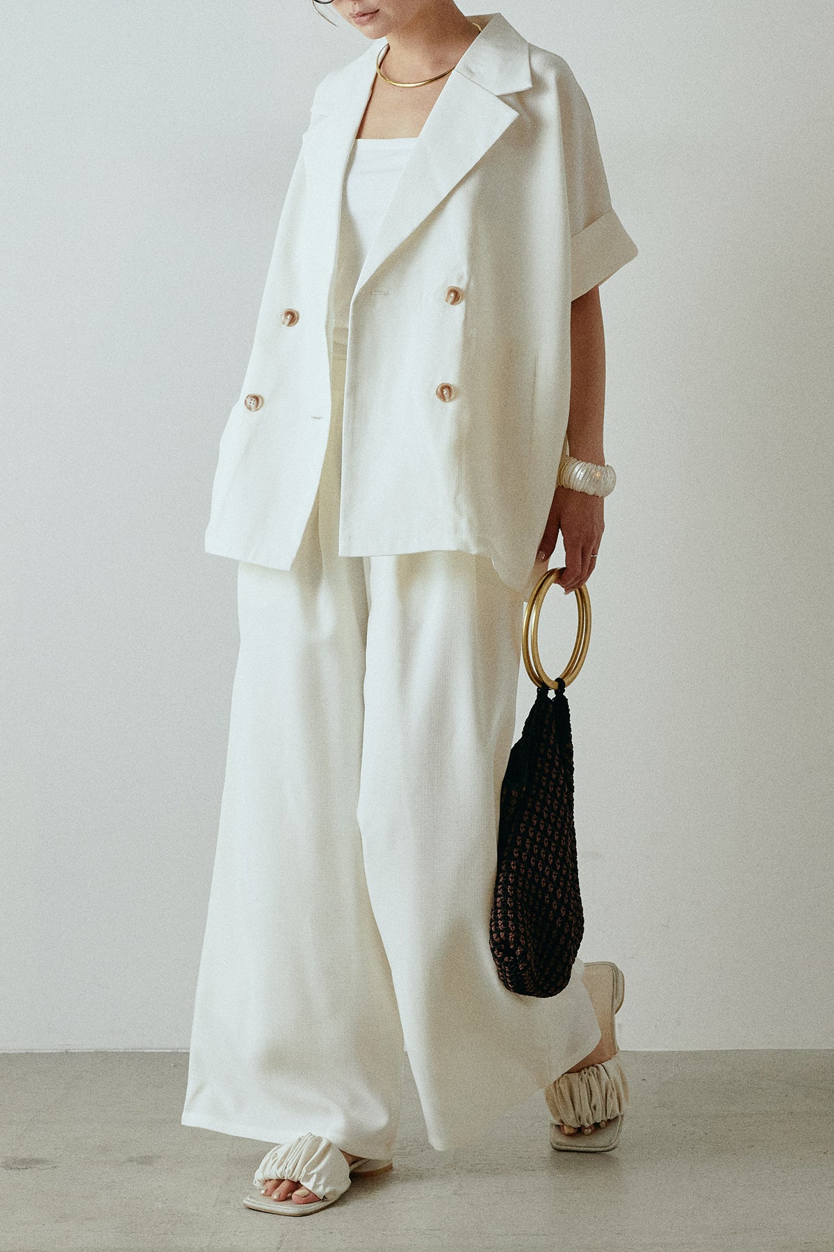 サマースラブツイードタック入りワイドパンツを含んだコーデセット商品を探す↓