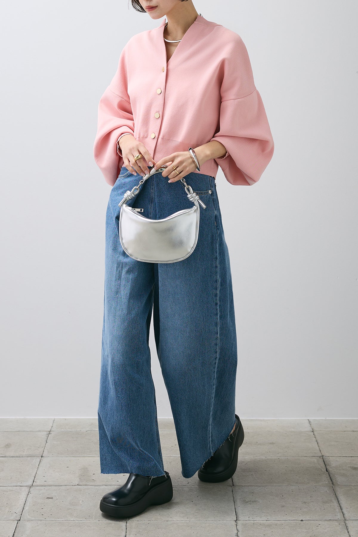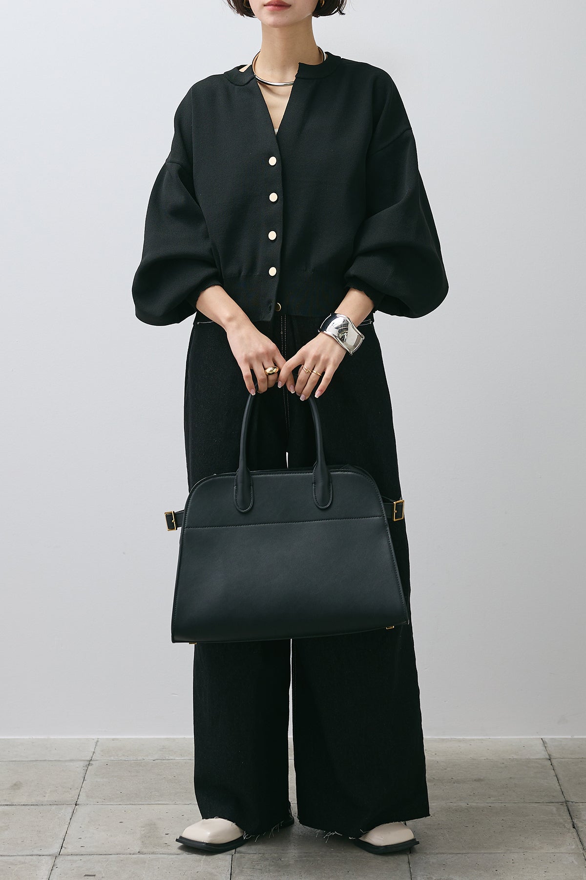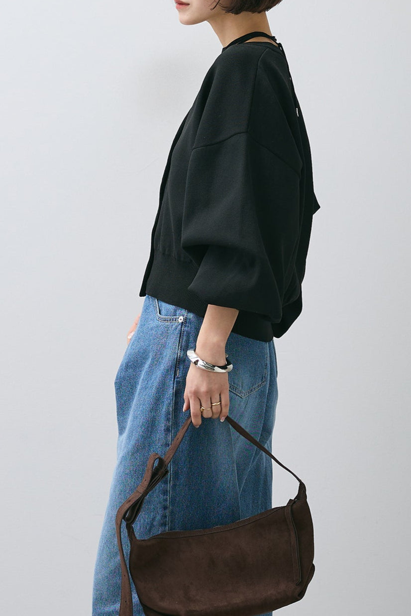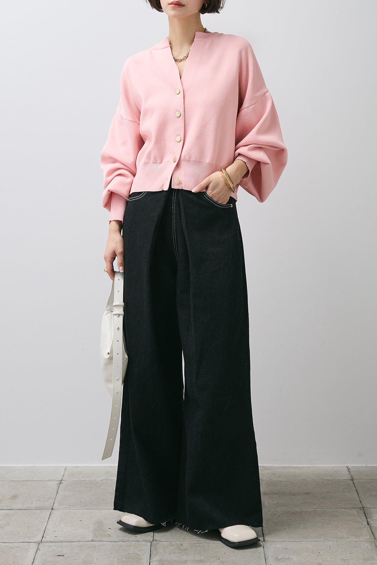 エレガントなゴールドボタンが目を引くカーディガン。クルーネックのシンプルなデザインながら、袖に程よいボリュームを持たせることで女性らしいシルエットを演出します。コーディネートの主役にも羽織りとしても活躍し、カジュアルからきれいめまで幅広く使える万能な一着です。