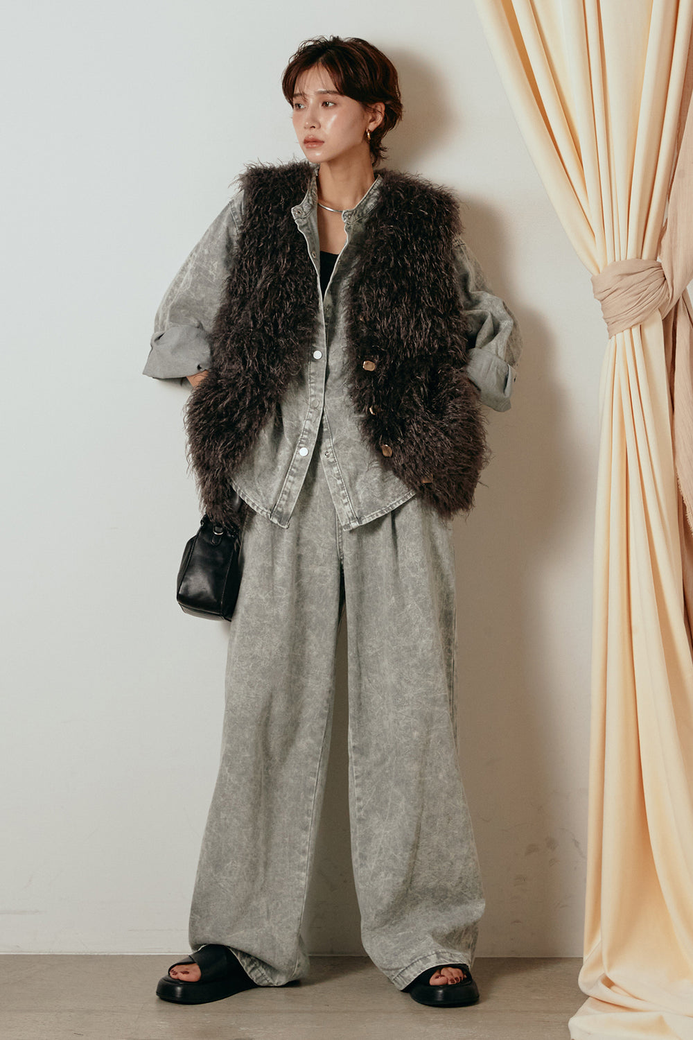 [SET]ボタン付きシャギーファーベスト+ヴィンテージデニムジャケットSETUP(3set)