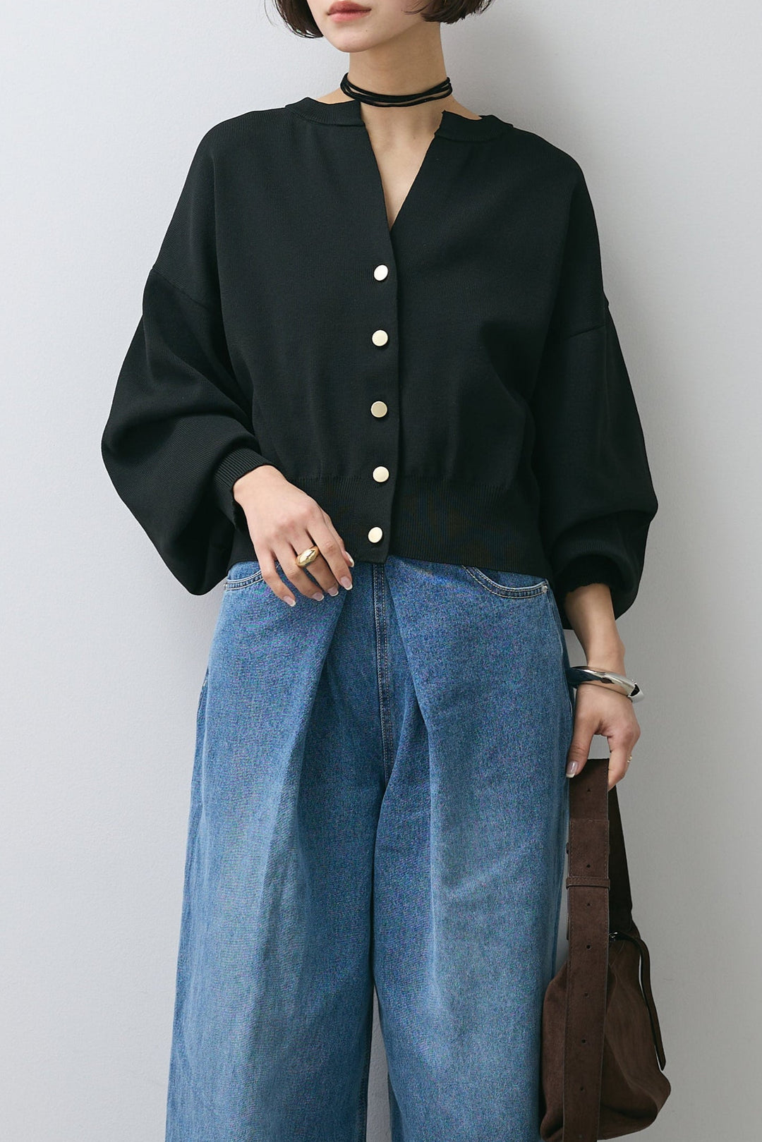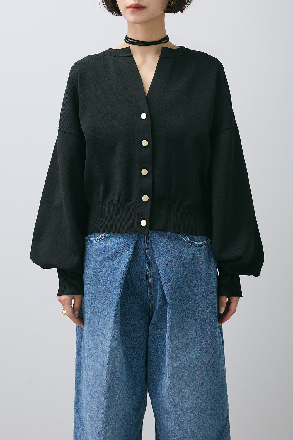 【即納】ゴールドボタンクルーカーディガン