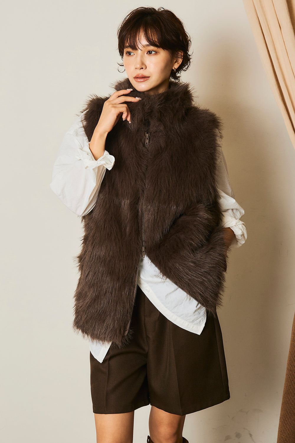 【即納】ヘリンボーンストライプスリーブレスジレ