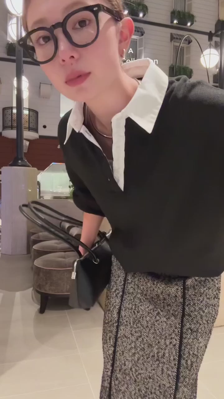 [SET]襟付きポロトップス+ラインツイードワイドスカート(2set)