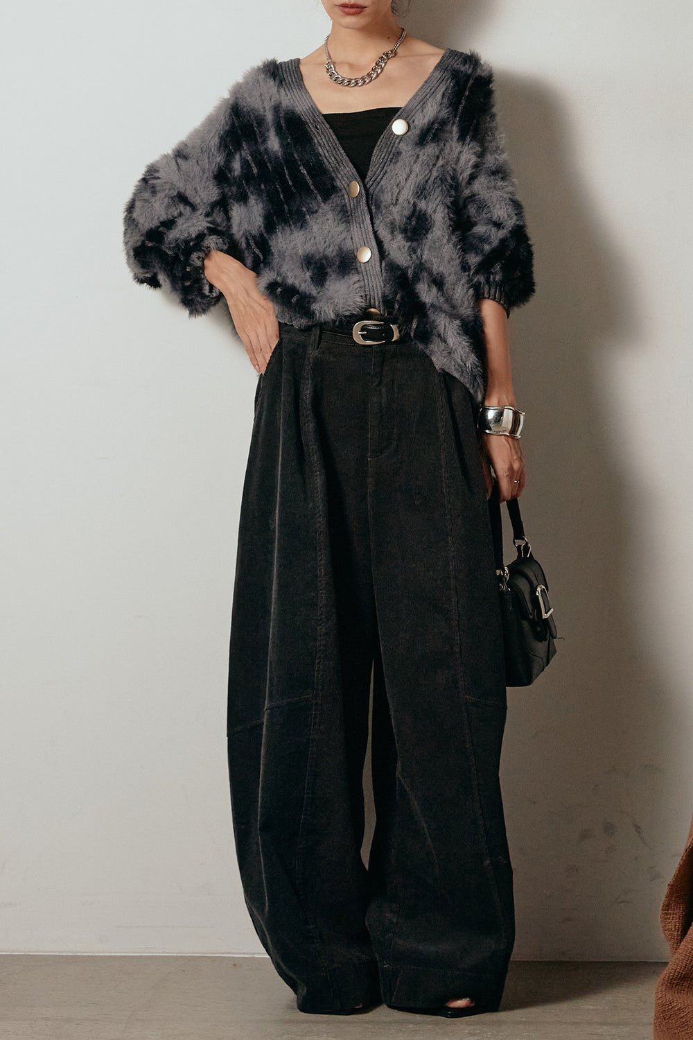 [SET]タイダイ柄シャギーニットカーディガン+タック入りコーデュロイワイドパンツ(2set)