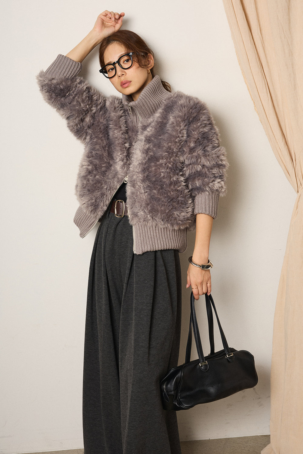 【着回しセット】[SET]ミックスシープファースタンドブルゾン+花柄刺繍ベロアフレアスカート+フェイクウールタックトラウザーズパンツ(3set)