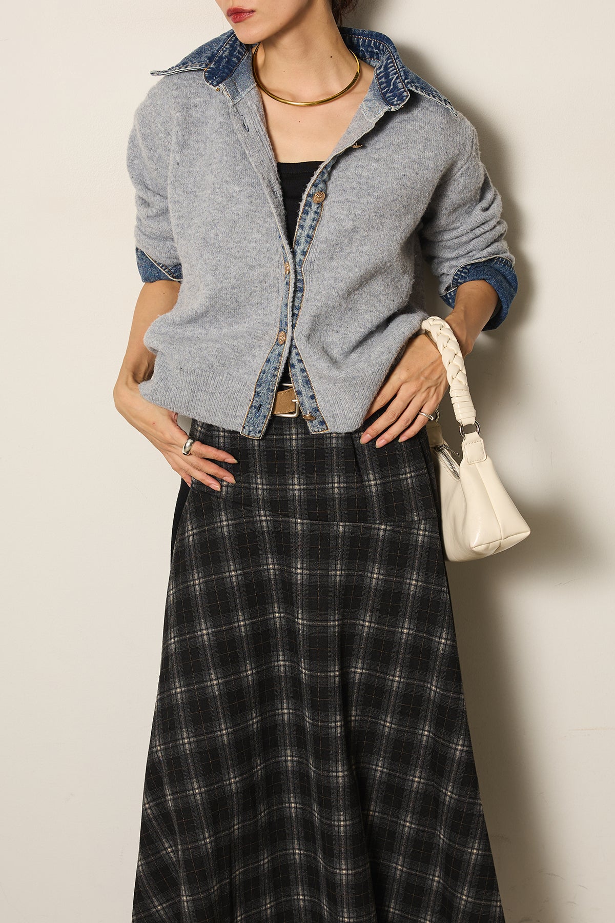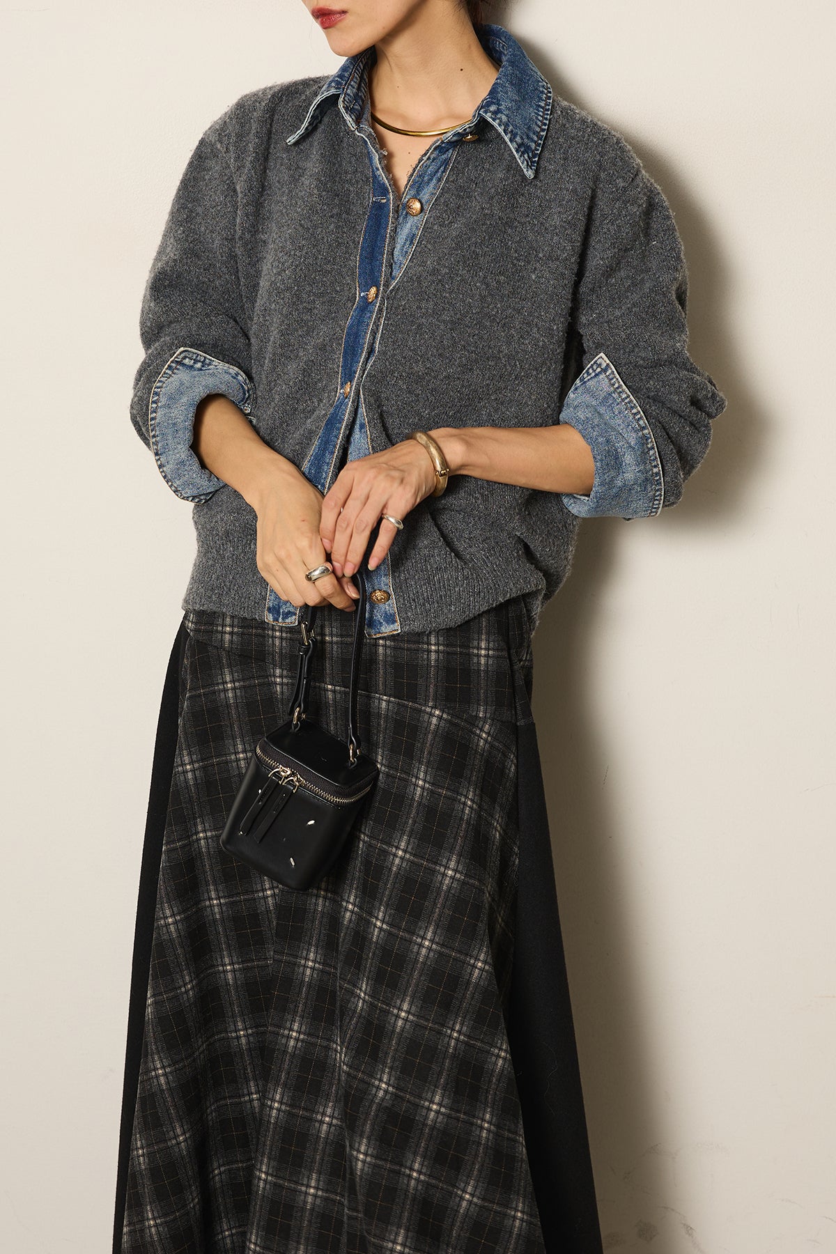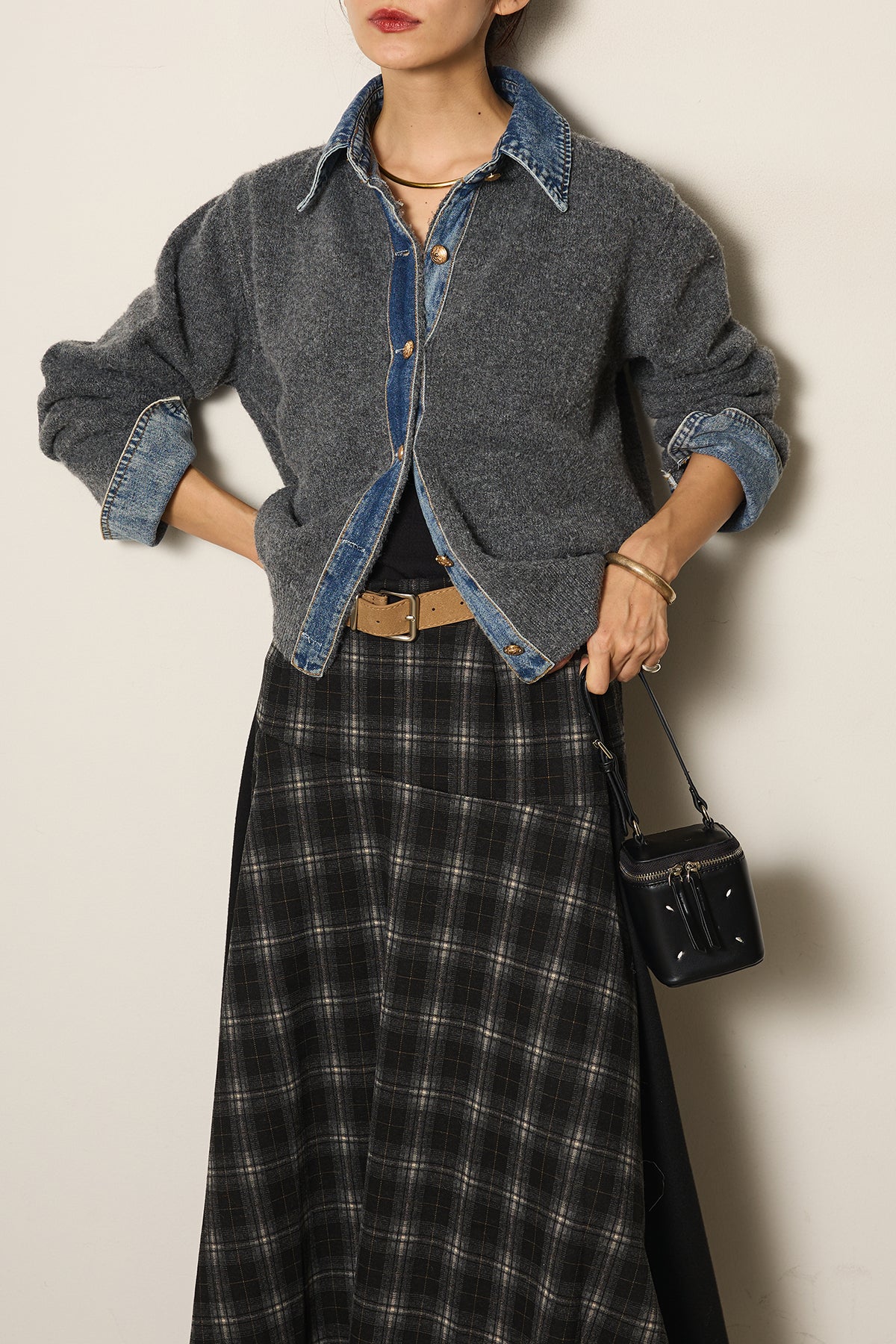 異素材の組み合わせが魅力のニットドッキングデニムシャツ。カジュアルなデニムに柔らかなニットを組み合わせ、程よい抜け感と温かみをプラスしました。襟や前立て、袖口のデニムディテールがアクセントになり、一枚で主役級の存在感を放ちます。シンプルなボトムと合わせるだけでこなれたスタイルが完成するアイテムです。