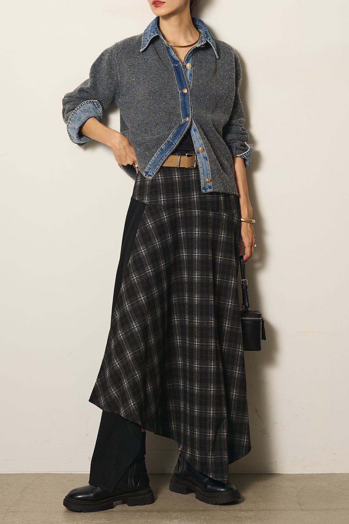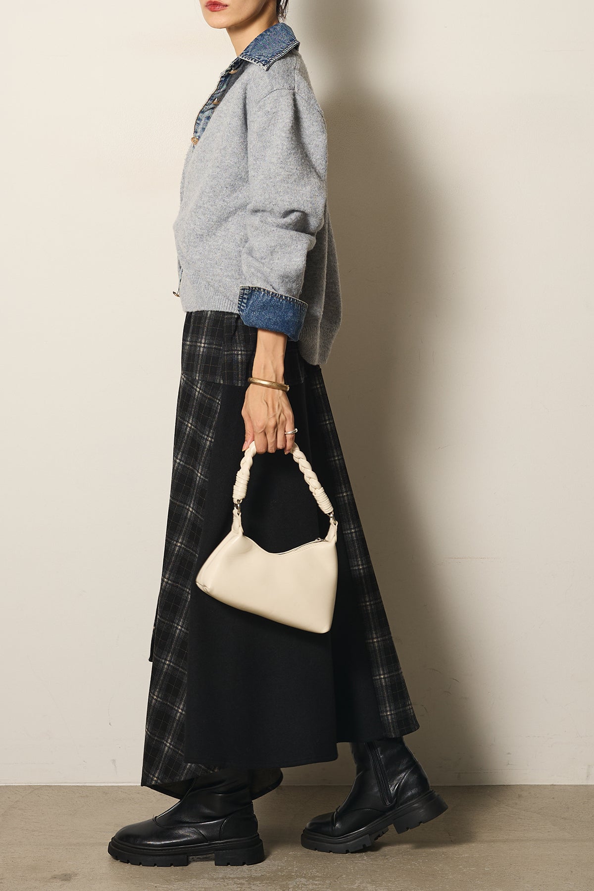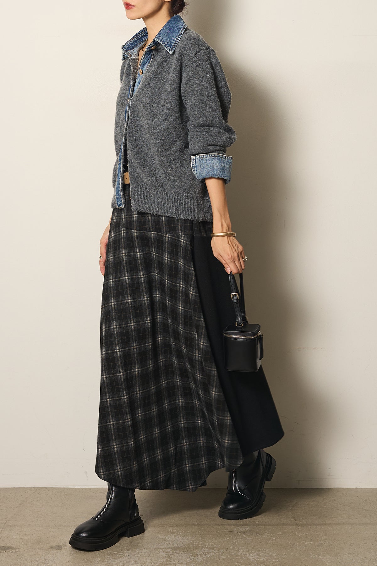 異素材の組み合わせが魅力のニットドッキングデニムシャツ。カジュアルなデニムに柔らかなニットを組み合わせ、程よい抜け感と温かみをプラスしました。襟や前立て、袖口のデニムディテールがアクセントになり、一枚で主役級の存在感を放ちます。シンプルなボトムと合わせるだけでこなれたスタイルが完成するアイテムです。