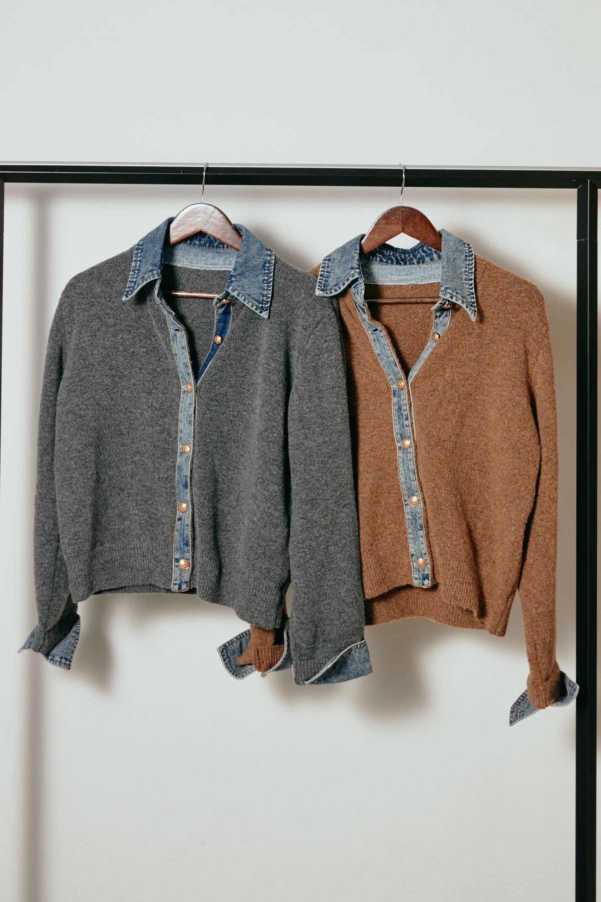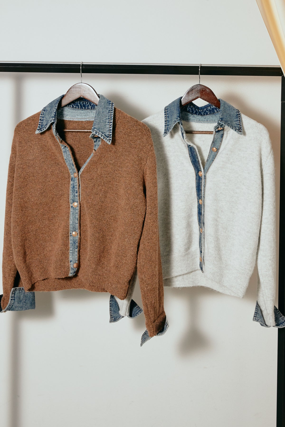 [SET]ニットドッキングデニムシャツ+ニットドッキングデニムシャツ(2set)