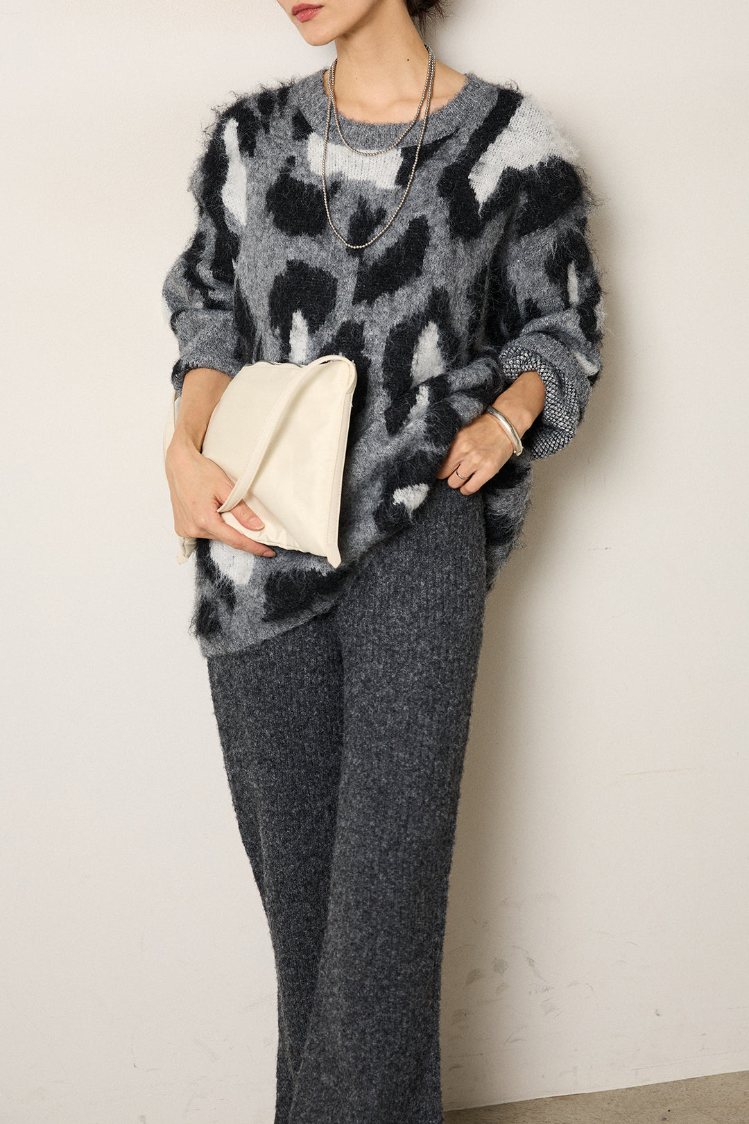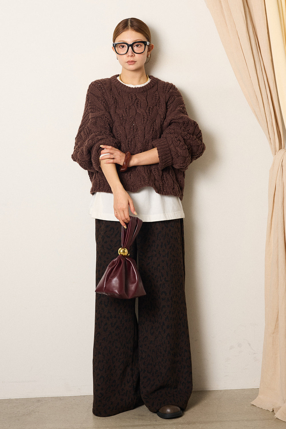 [SET]ケーブルリラックスショートニット+レオパードジャガードニットパンツ(2set)