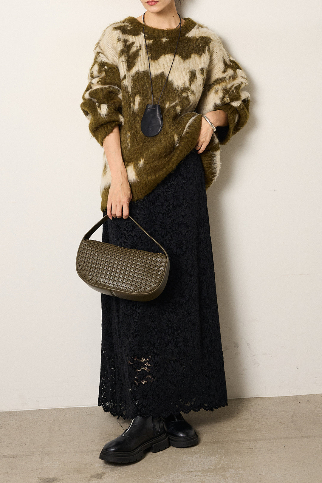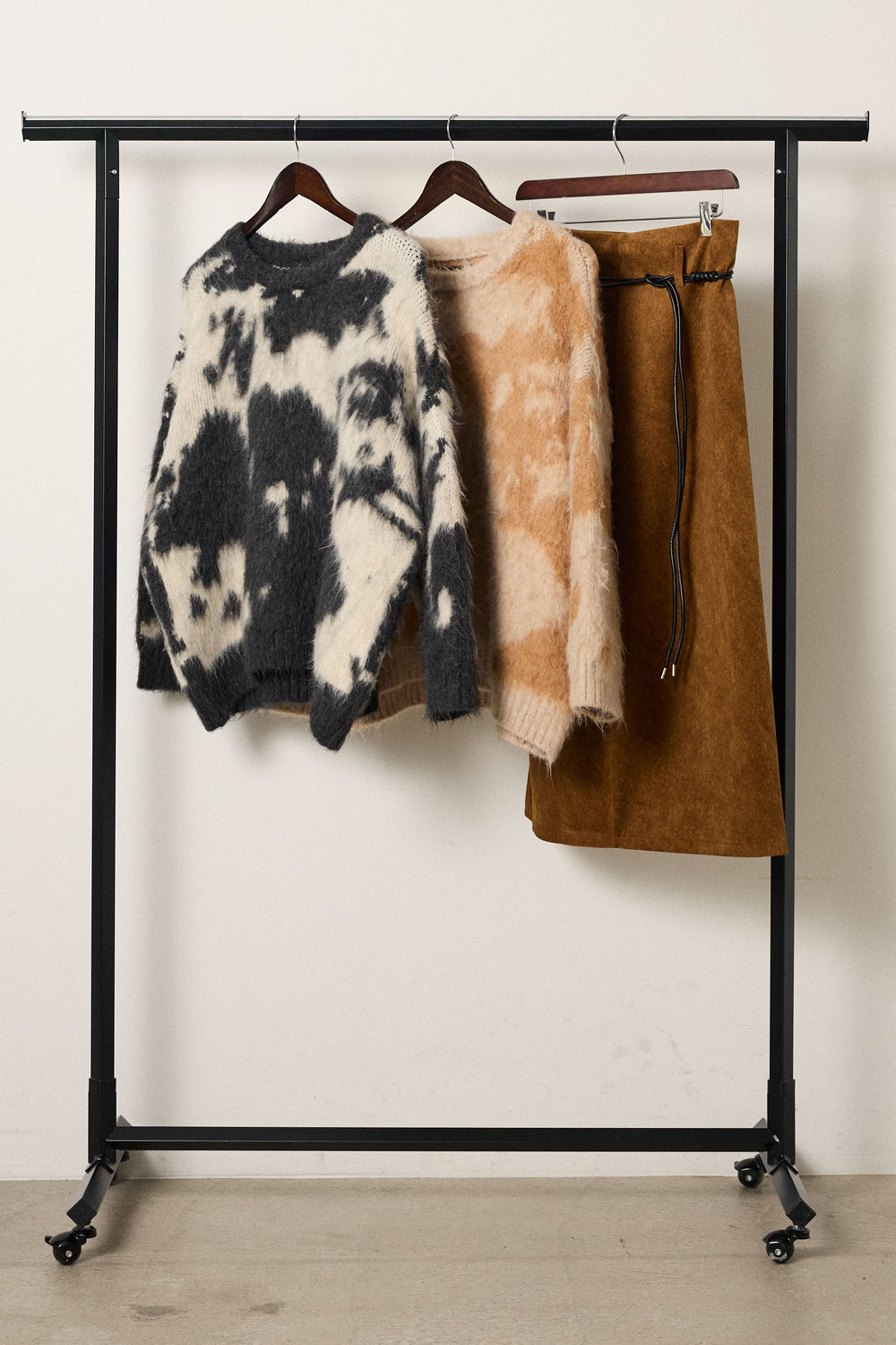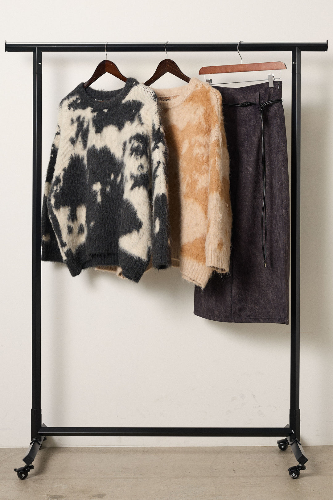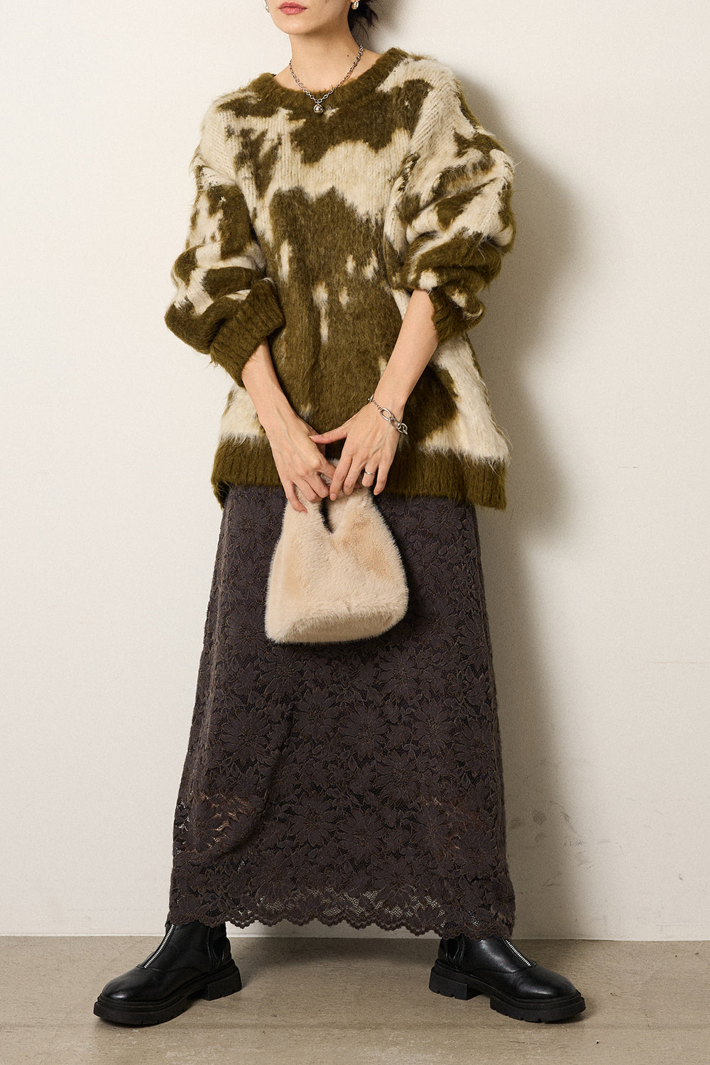 [SET]ルーズアニマルモヘアニットトップス+編み地切り替えフレアニットスカート(2set)