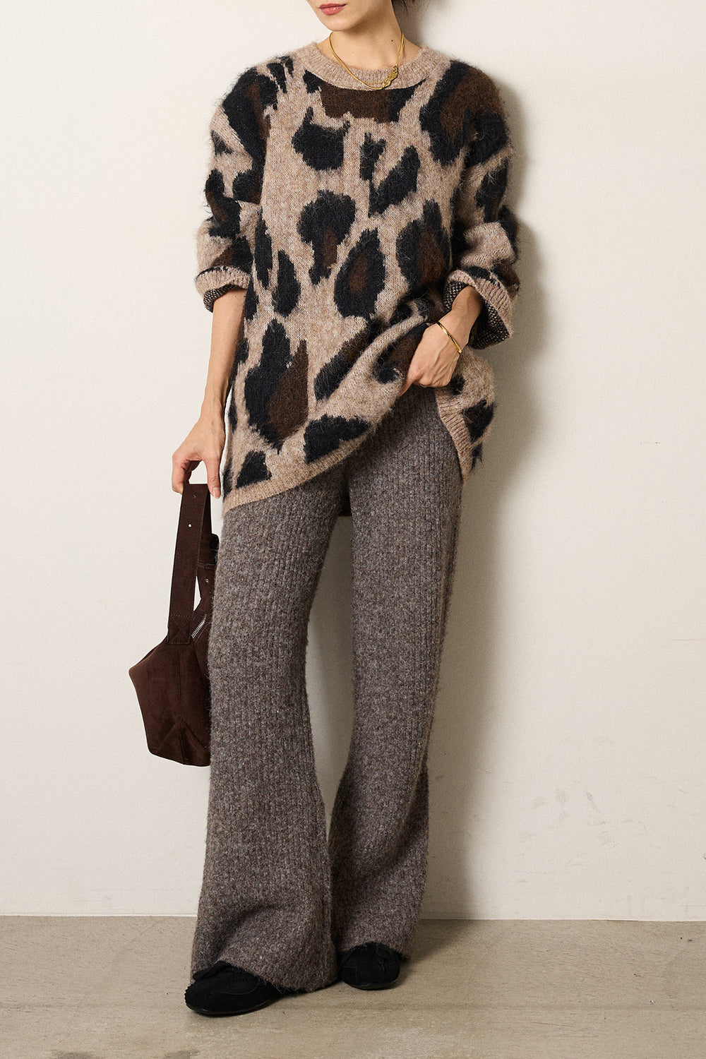 [SET]ルーズアニマルモヘアニットトップス+杢ニットリブフレアパンツ(2set)