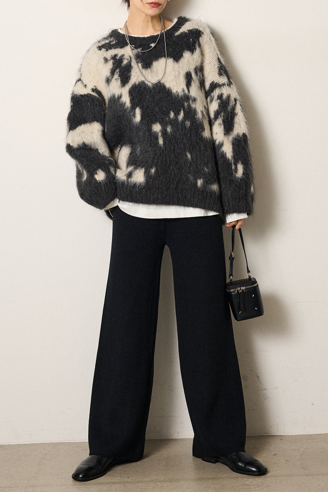 [SET]モヘアタッチマーブルニット+ワイドリブニットイージーパンツ(2set)