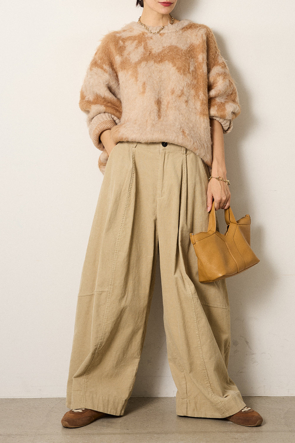 [SET]モヘアタッチマーブルニット+タック入りコーデュロイワイドパンツ(2set)