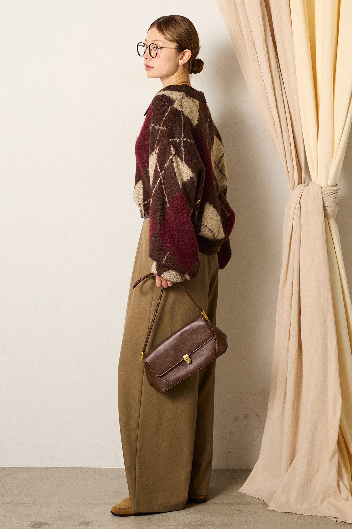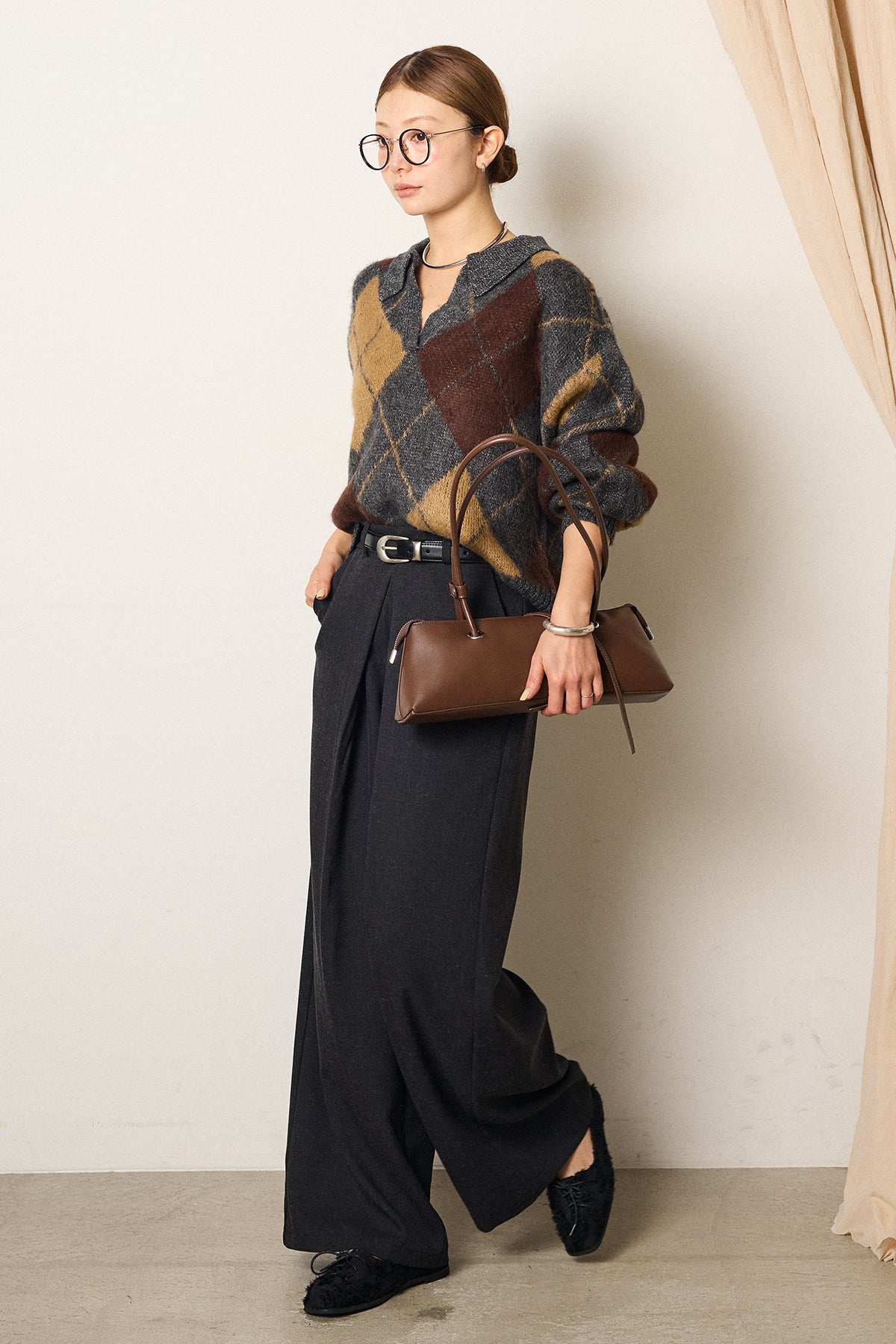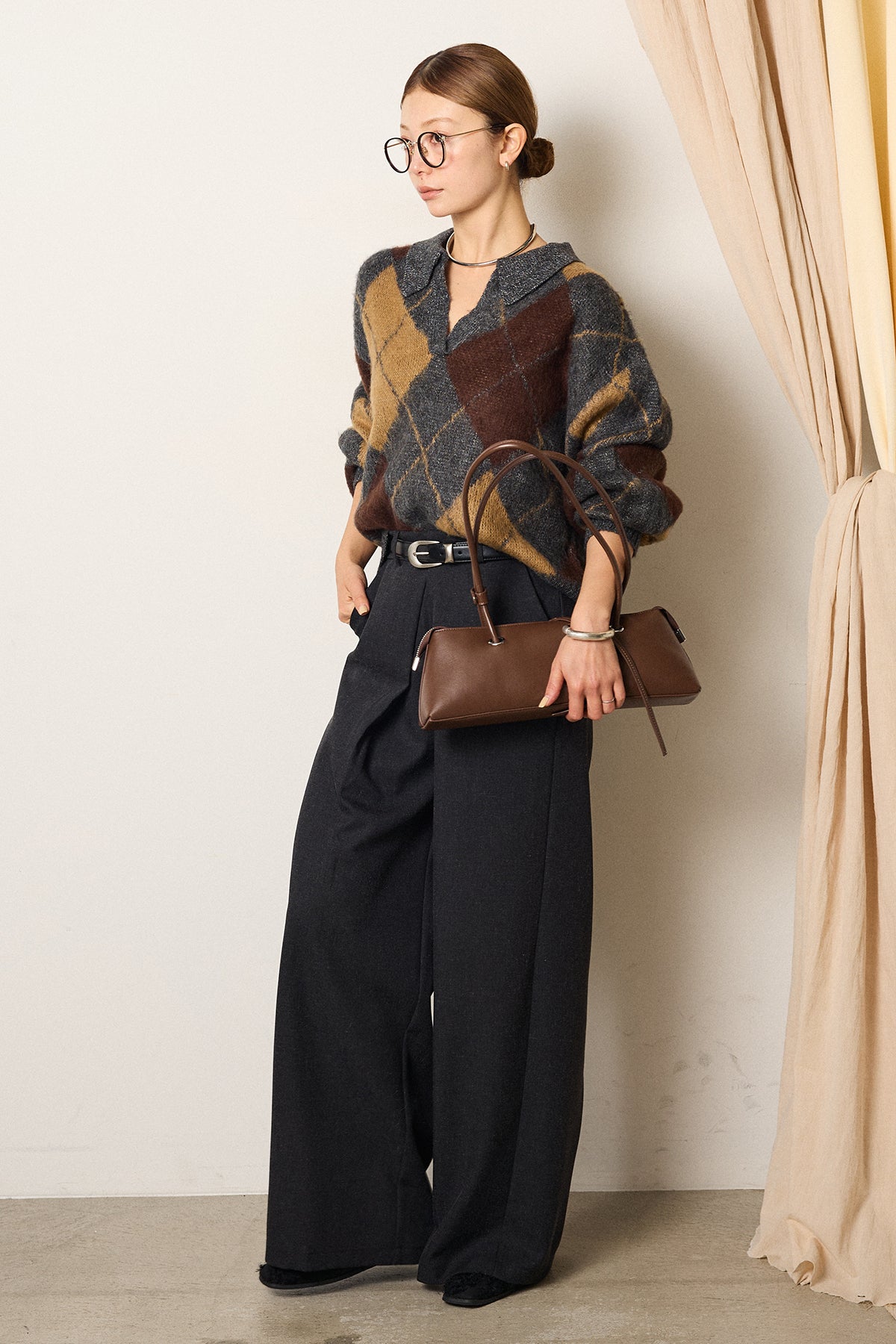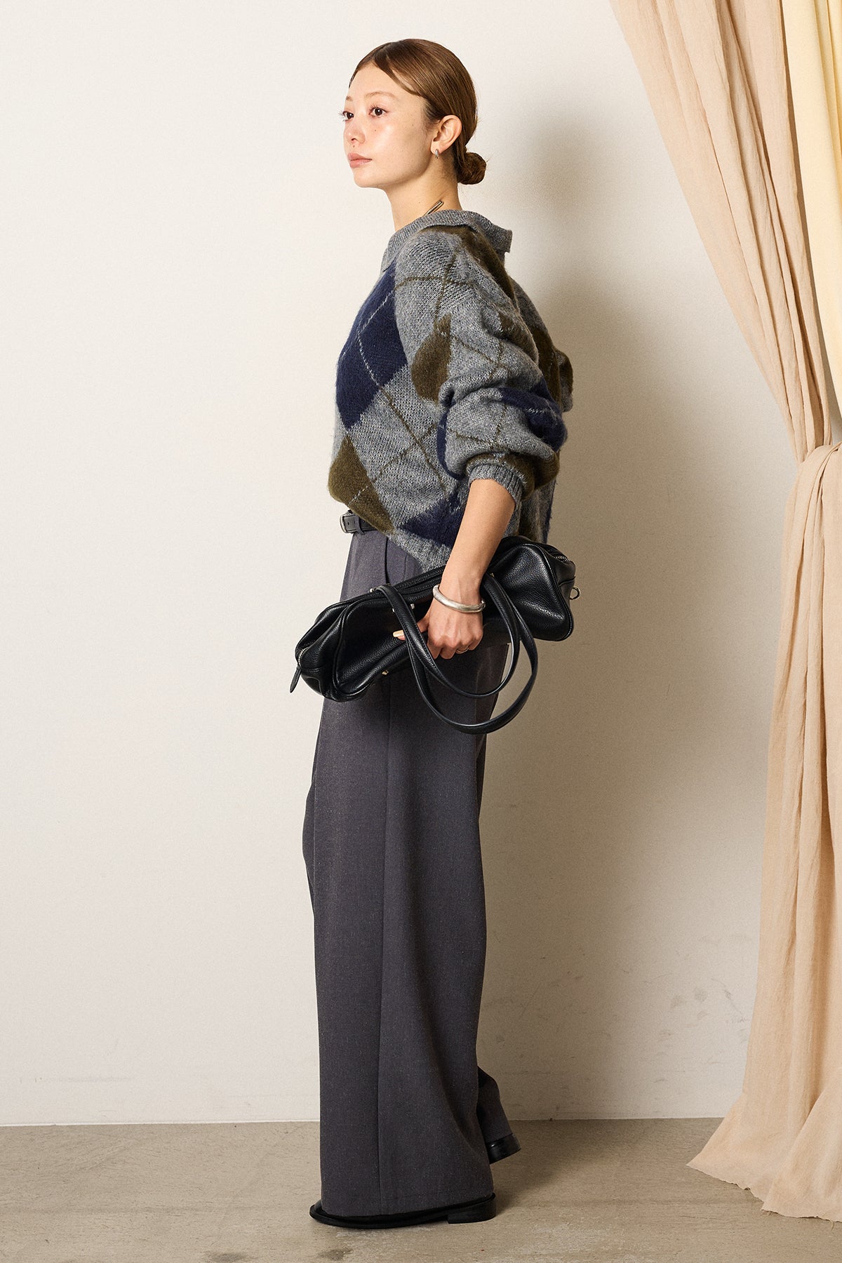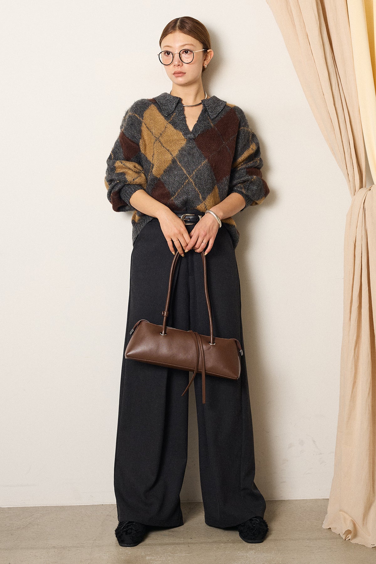 [SET]アクリルモヘアアーガイルキーネックプルオーバー+フロントワイドタックネップ入ワイドパンツ(2set)