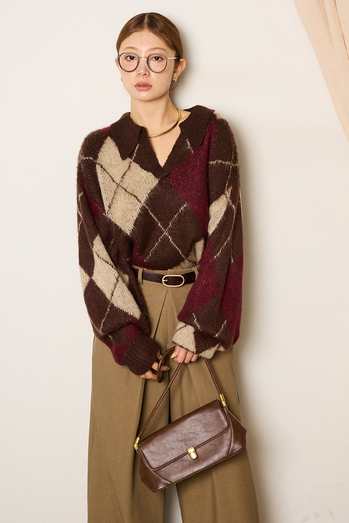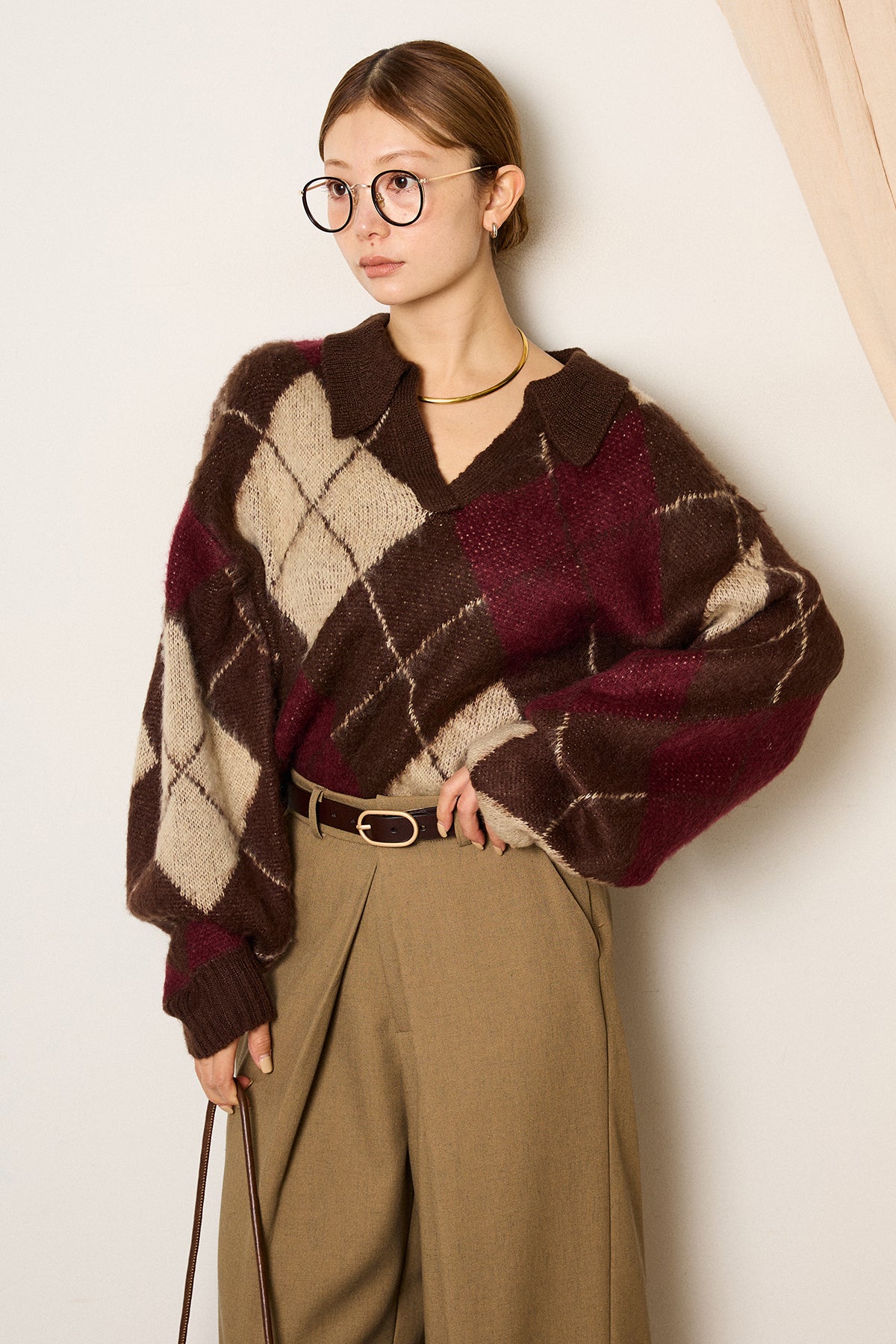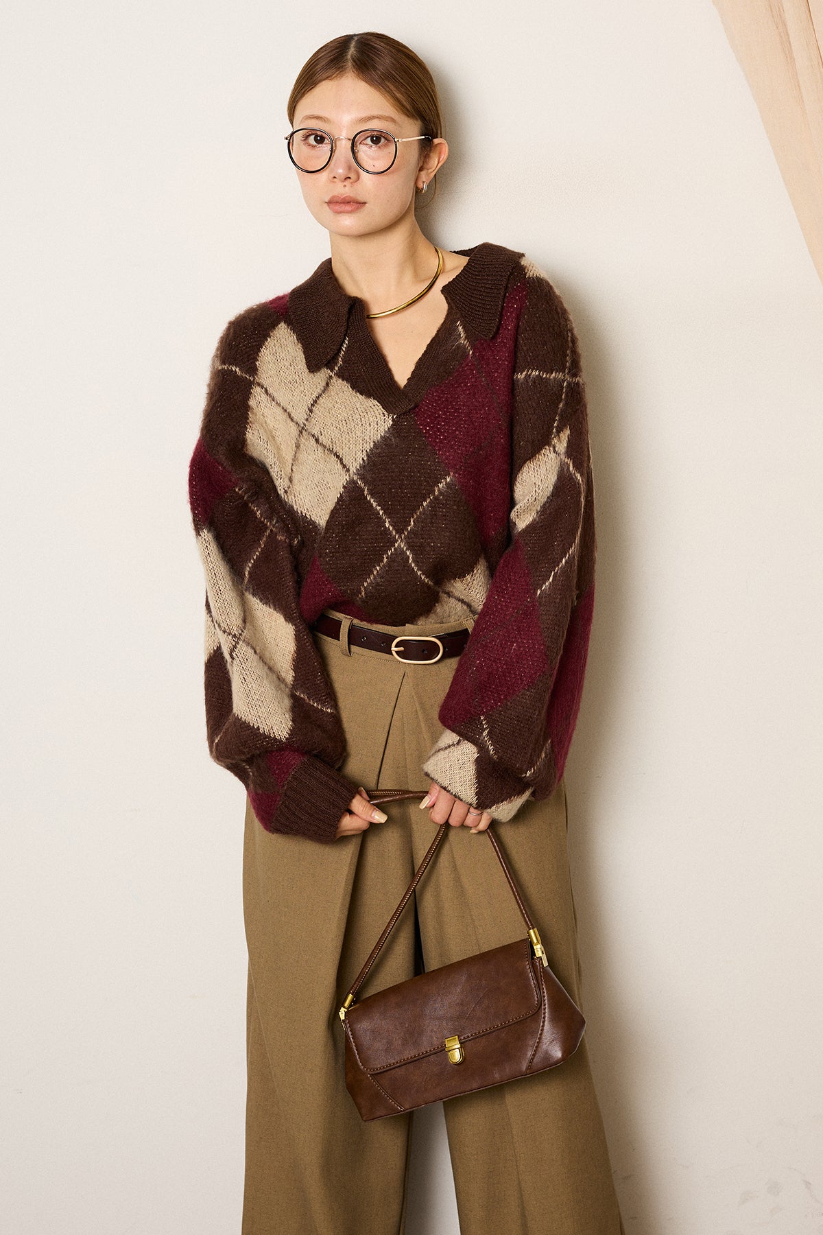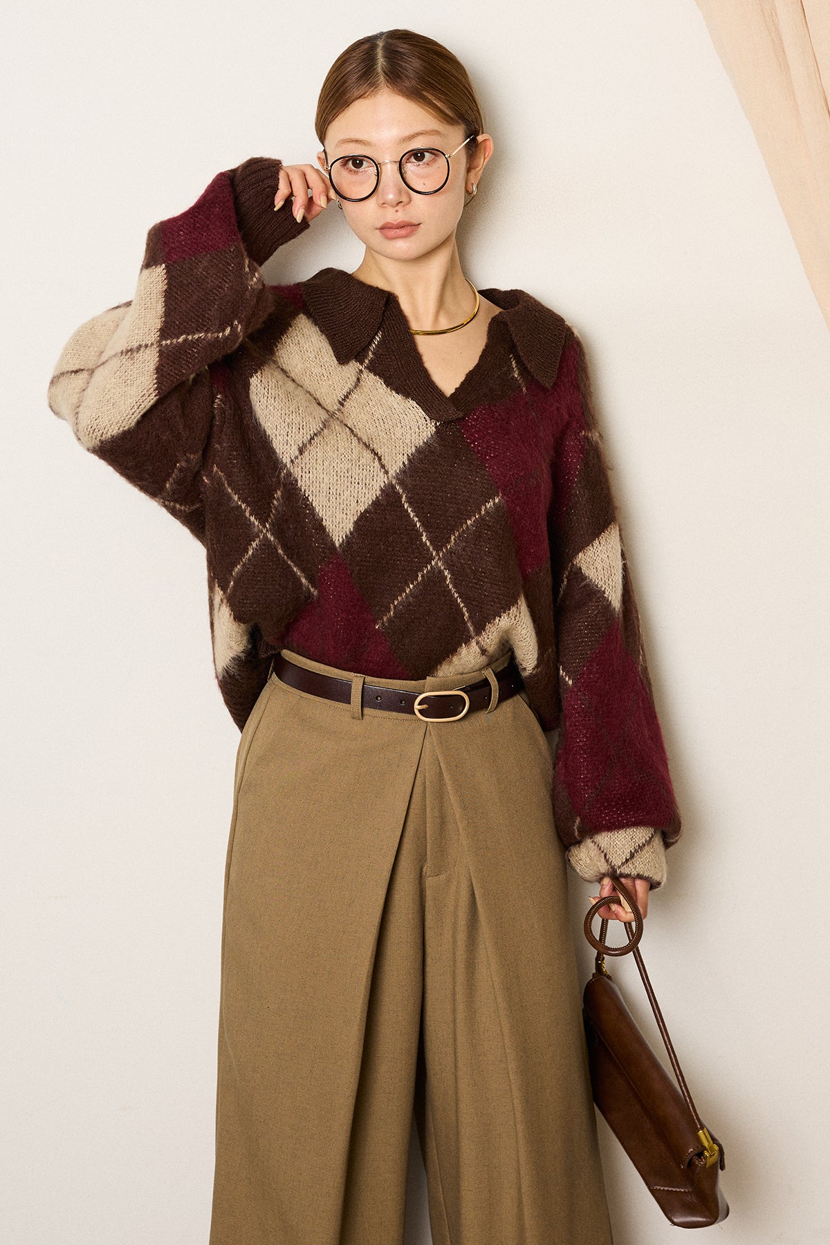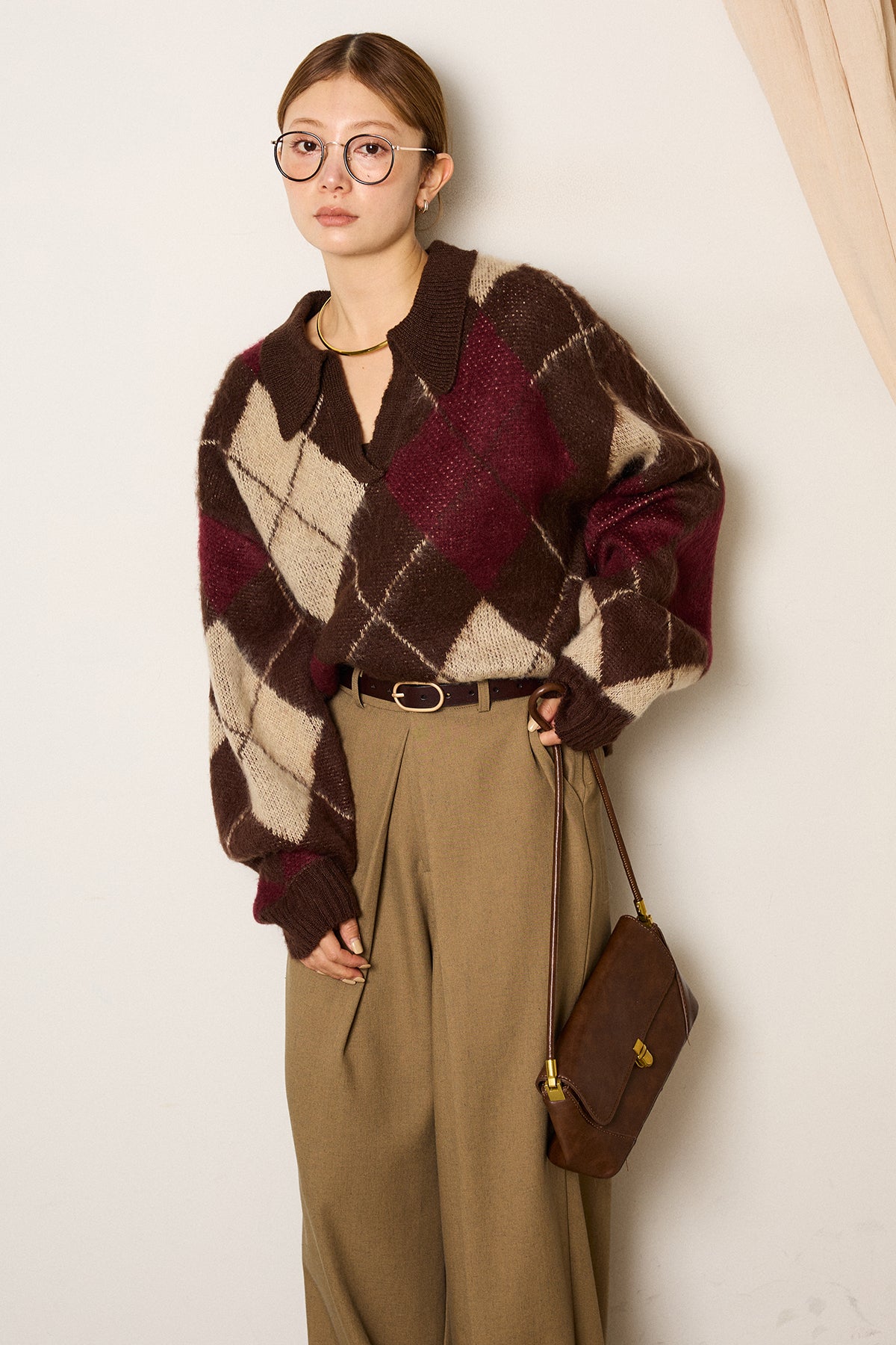 アクリルモヘアアーガイルキーネックプルオーバーの他のセットページはこちら