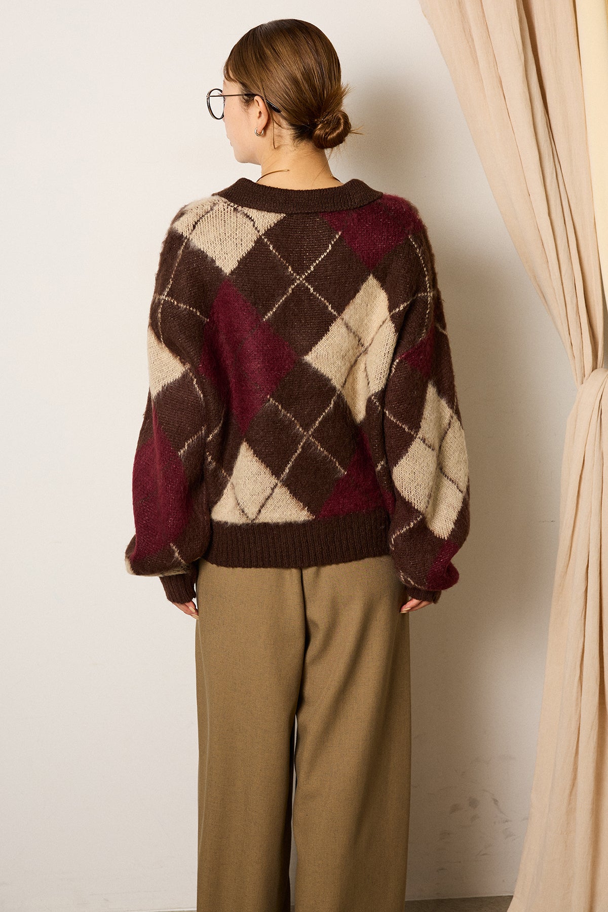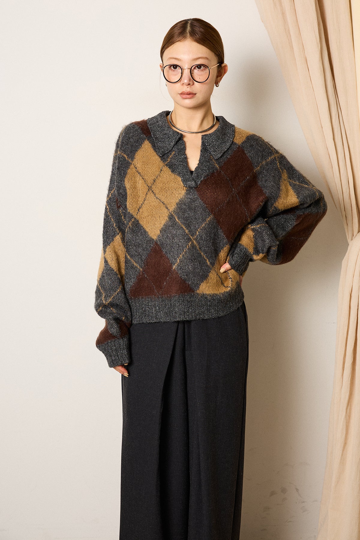 ◆ アクリルモヘアアーガイルキーネックプルオーバー