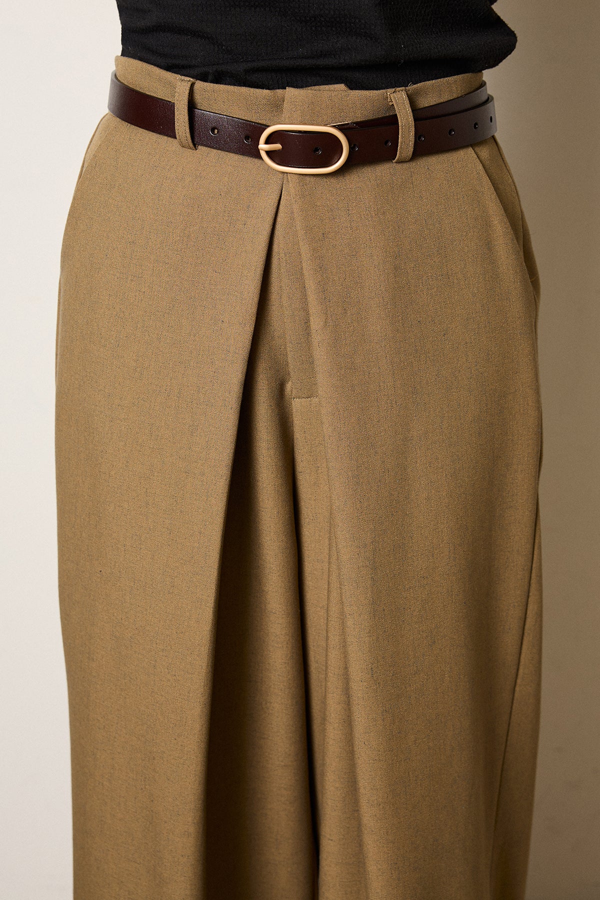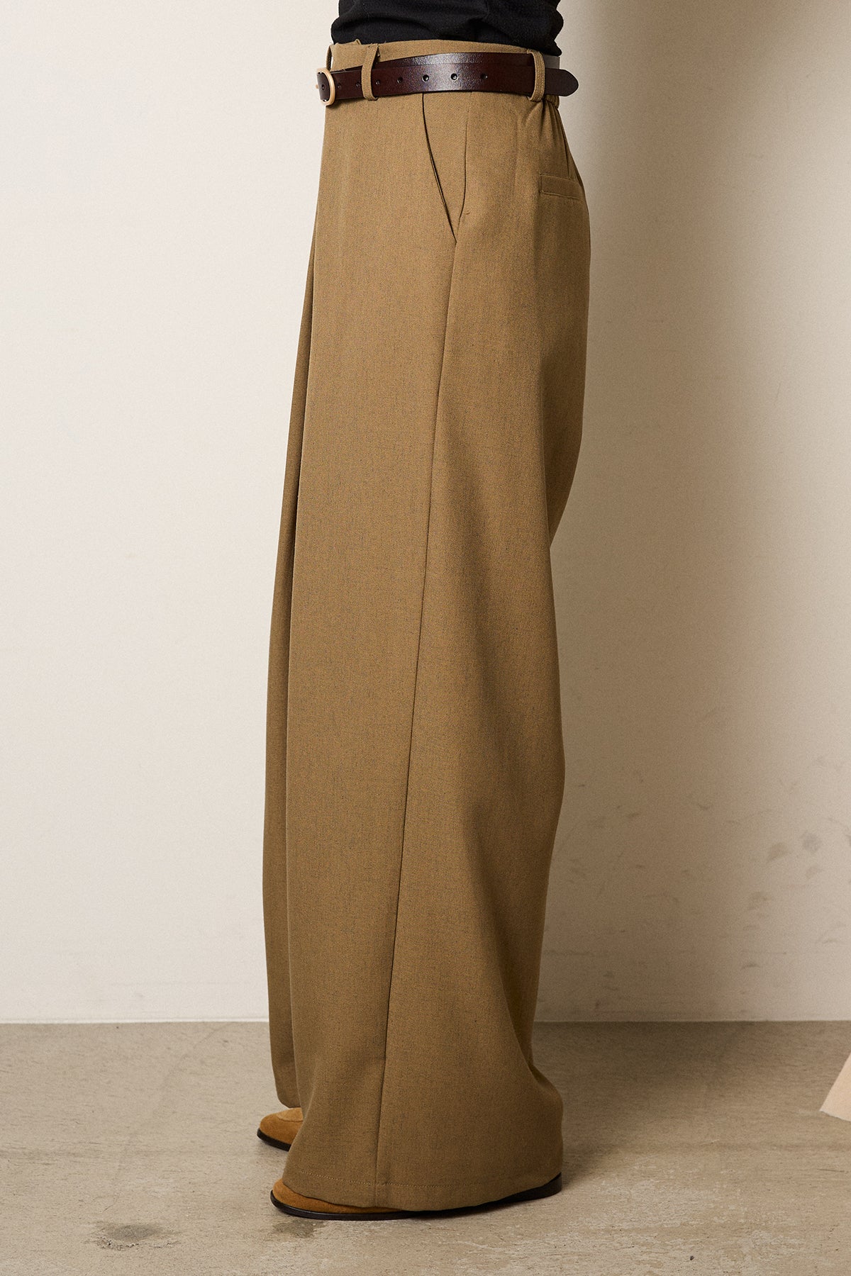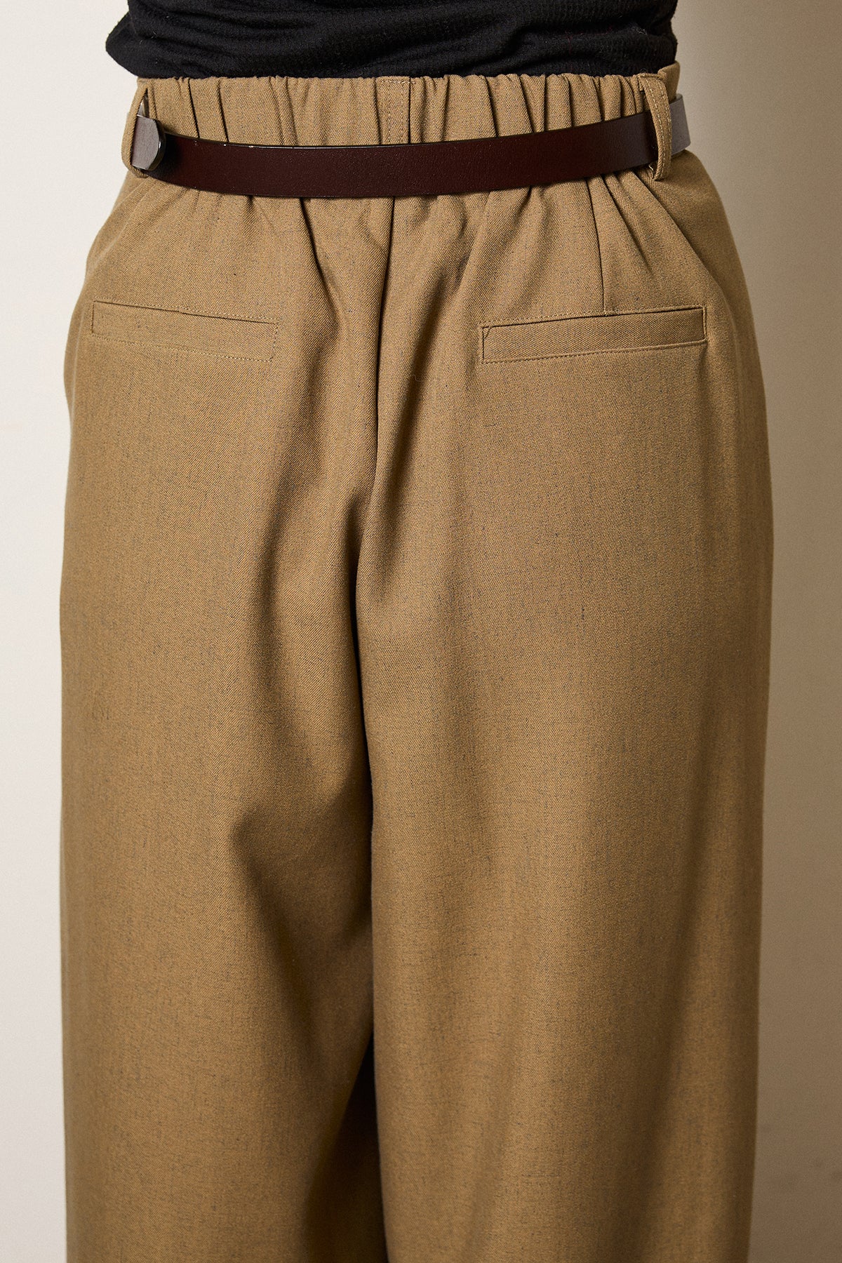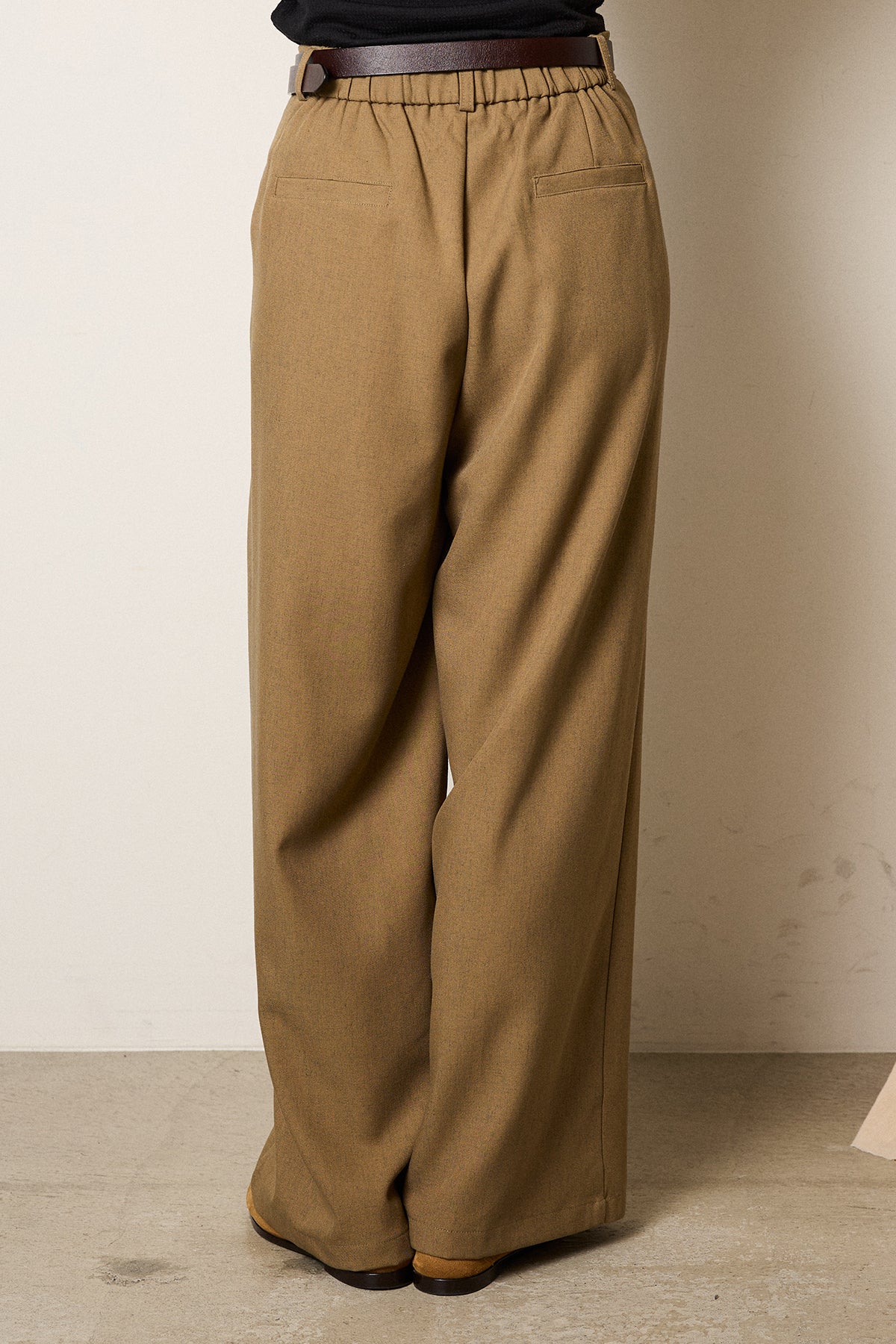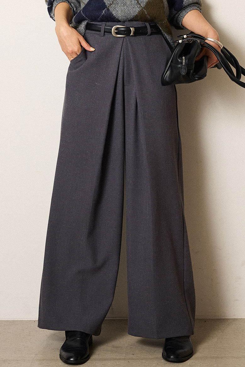 フロントに深めのタックを入れたワイドパンツ。 ウエスト位置を高く見せるデザインで脚長効果も抜群。 落ち感のあるシルエットが美しく、きれいめにもカジュアルにもマッチします。 シンプルなトップスを合わせるだけで、品のある大人スタイルが完成します。