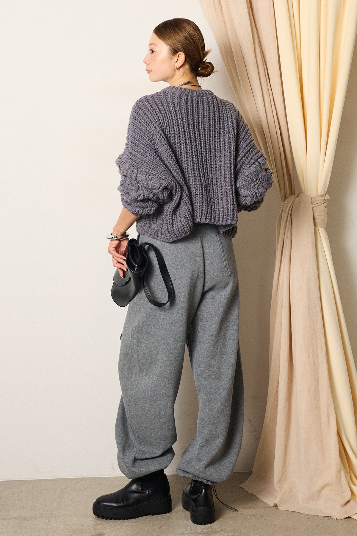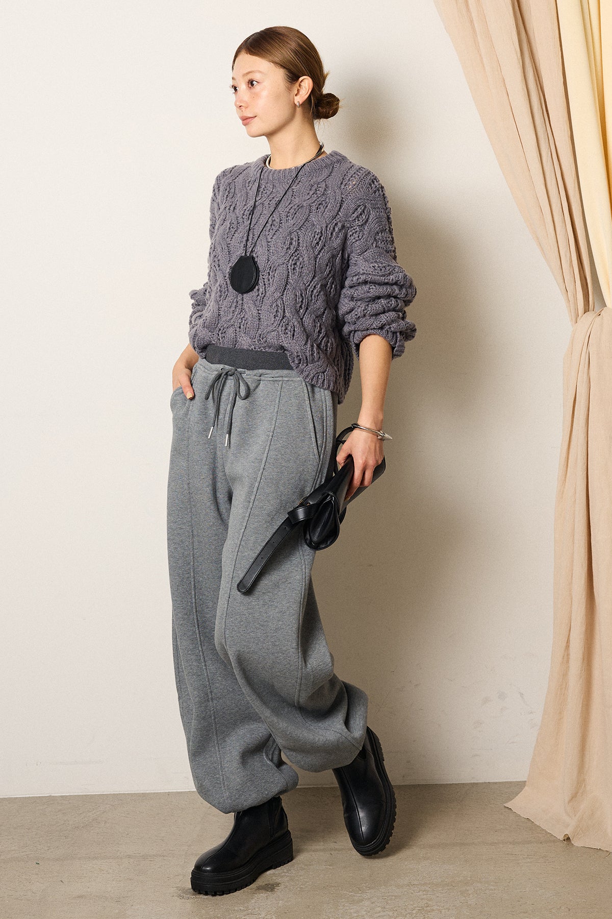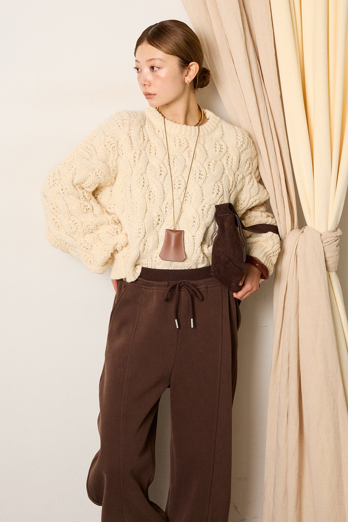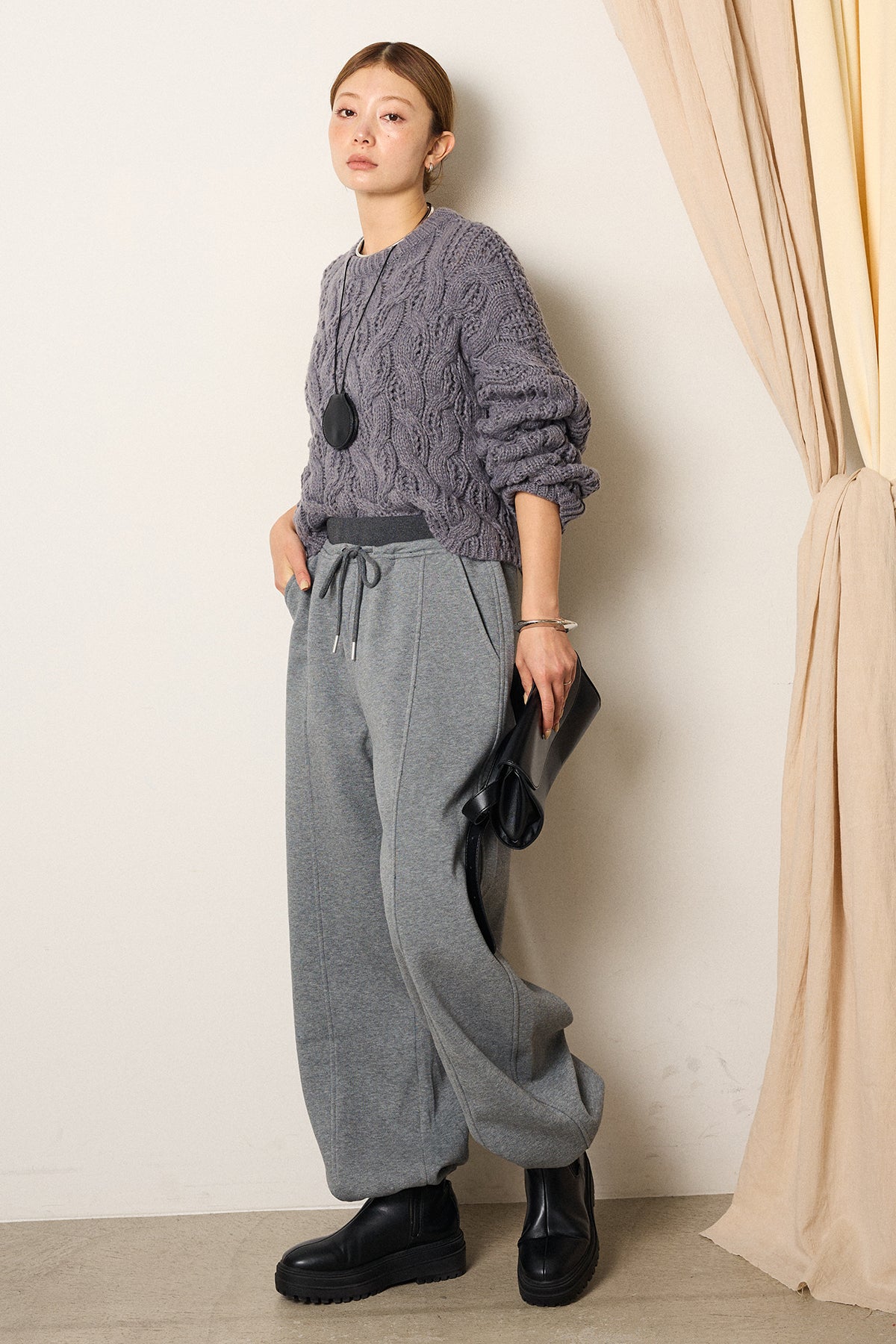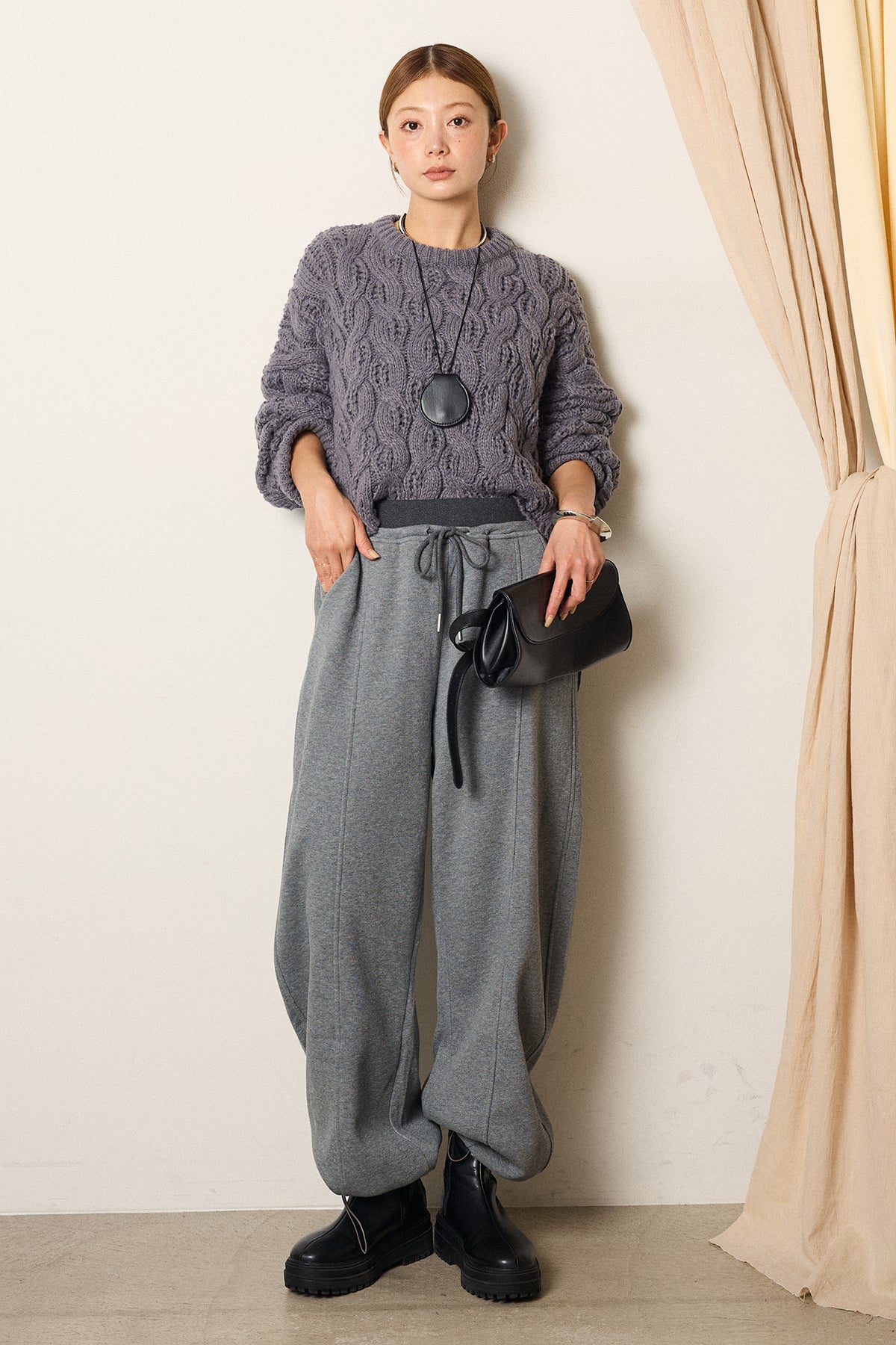 [SET]ケーブルリラックスショートニット+スウェットワイドカーブパンツ(2set)