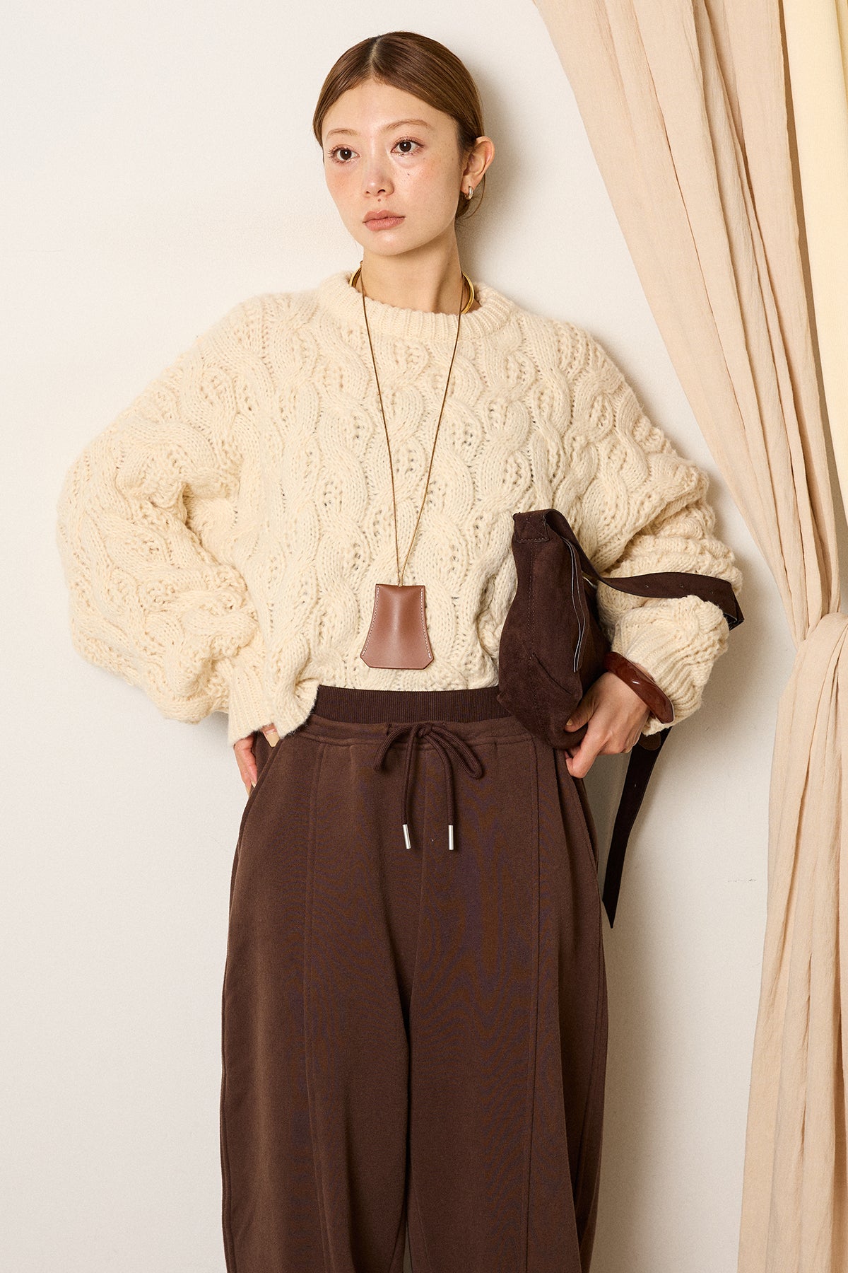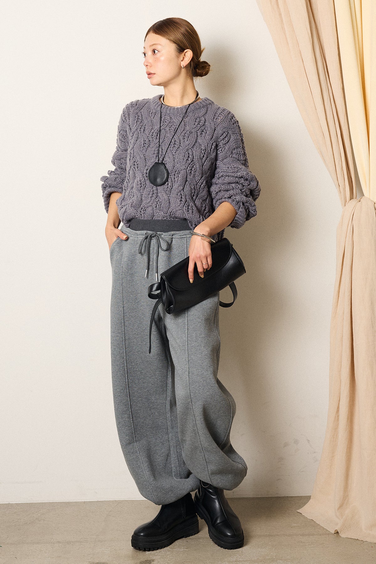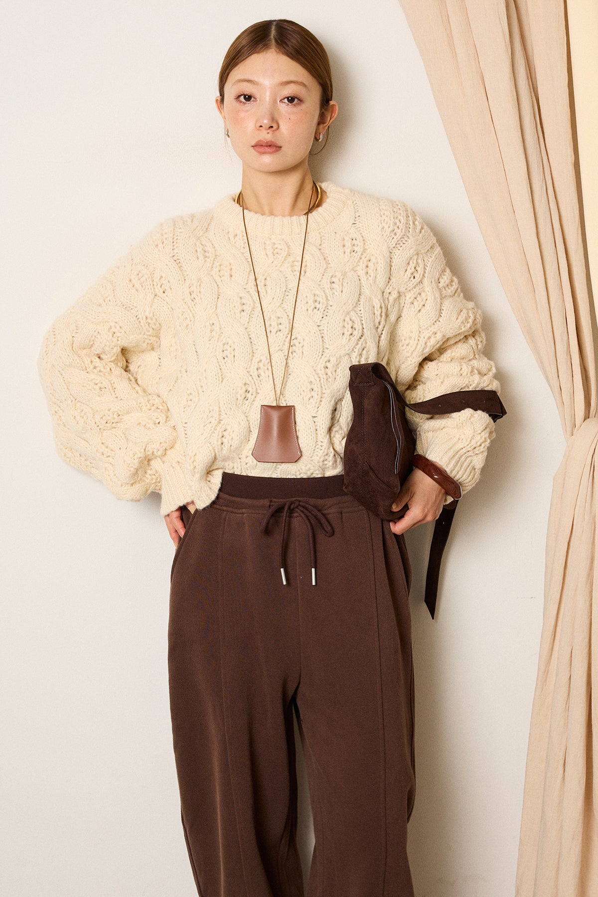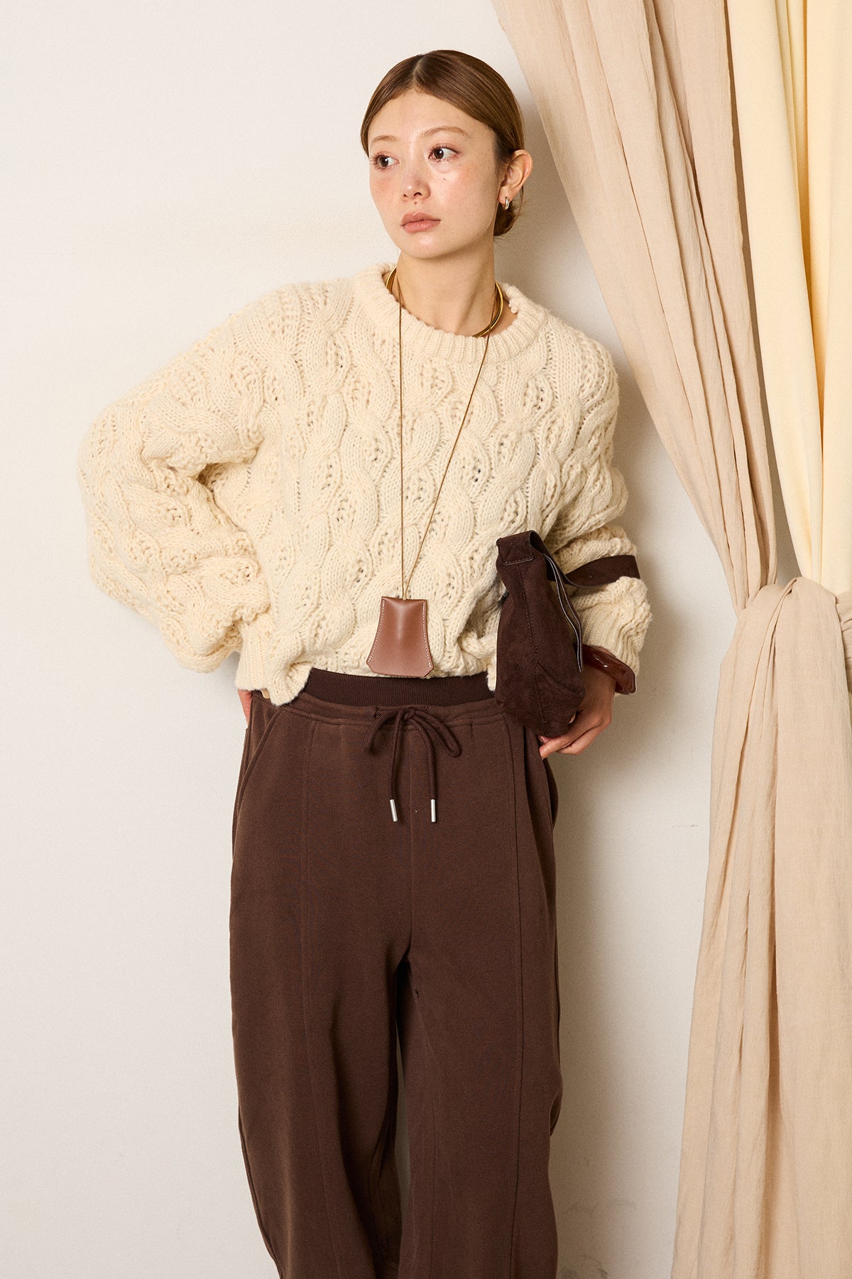 [SET]ケーブルリラックスショートニット+スウェットワイドカーブパンツ(2set)