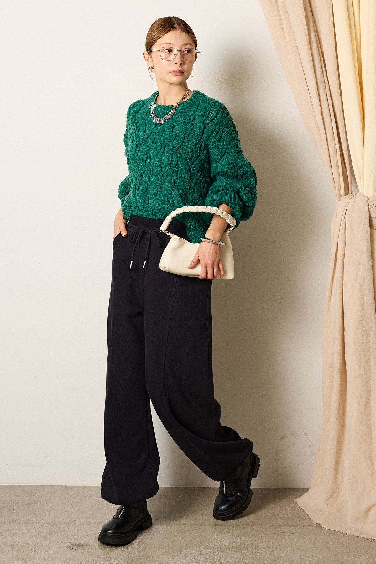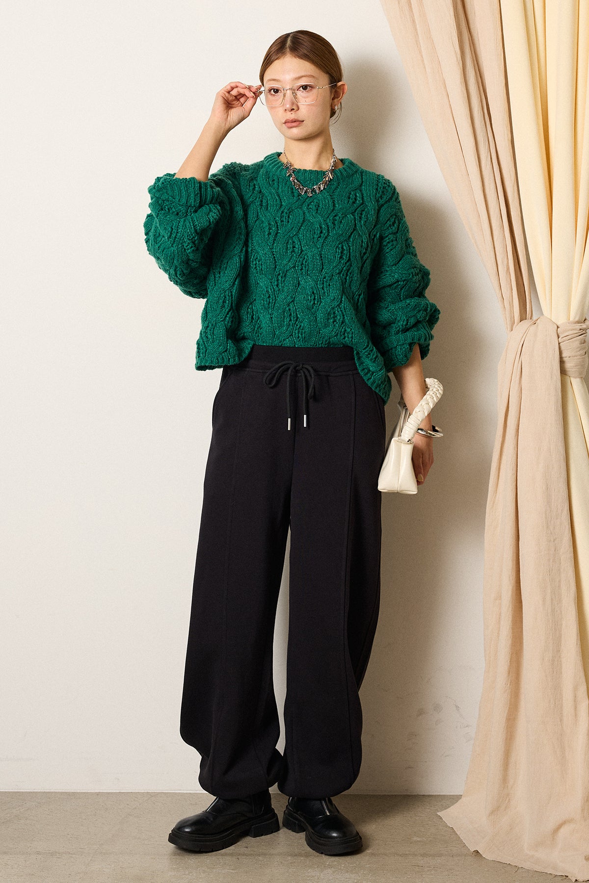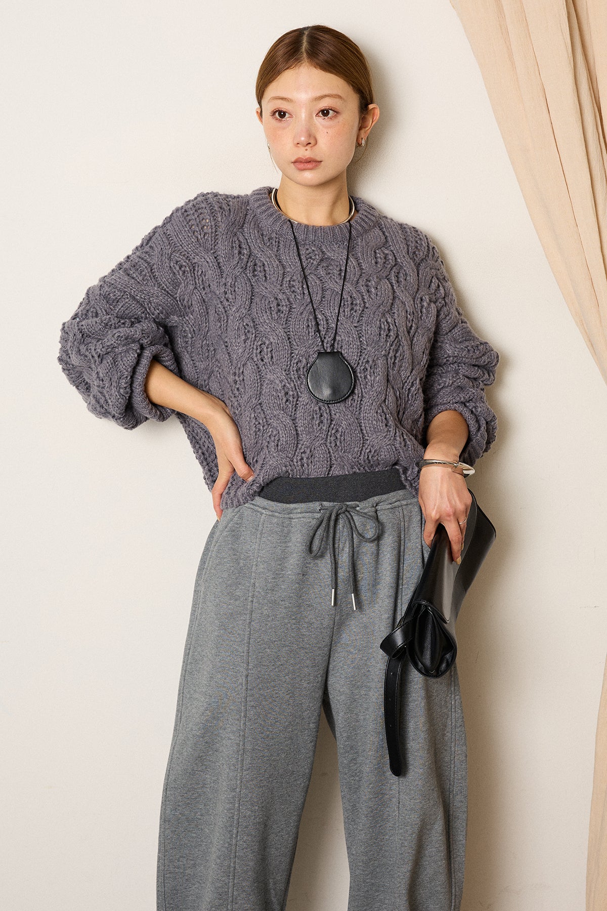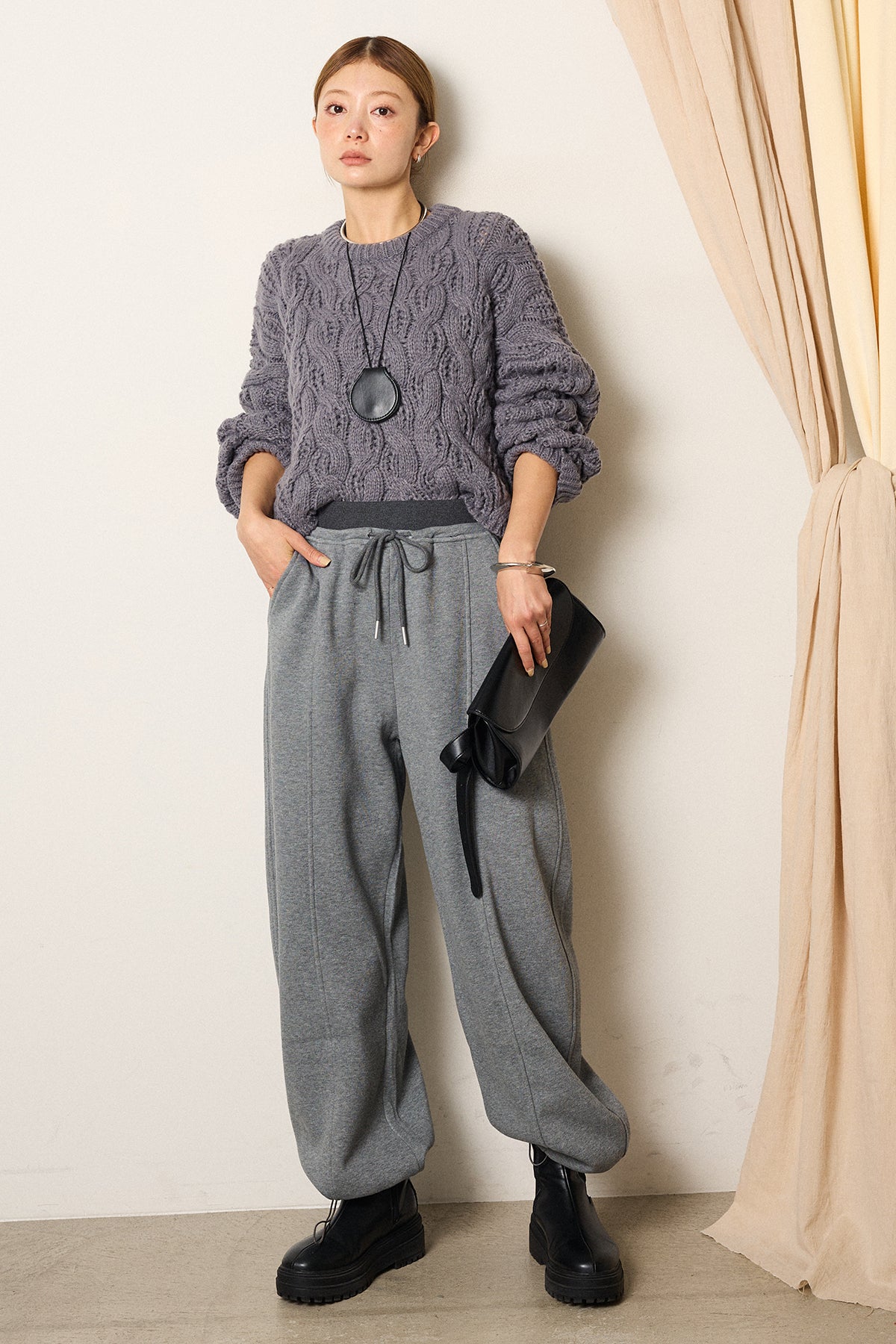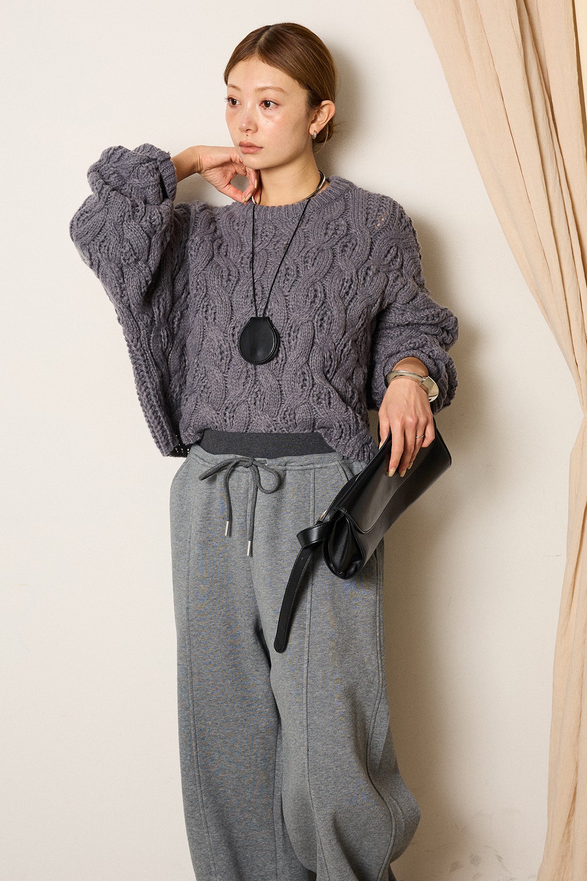 [SET]ケーブルリラックスショートニット+スウェットワイドカーブパンツ(2set)