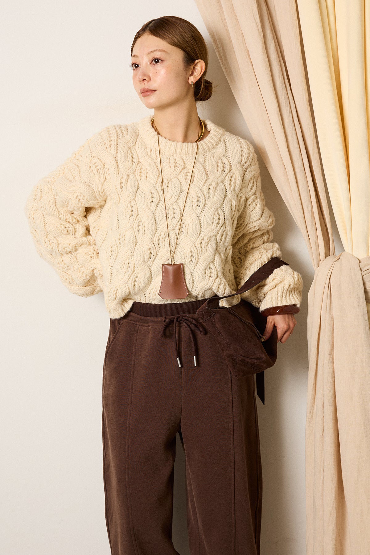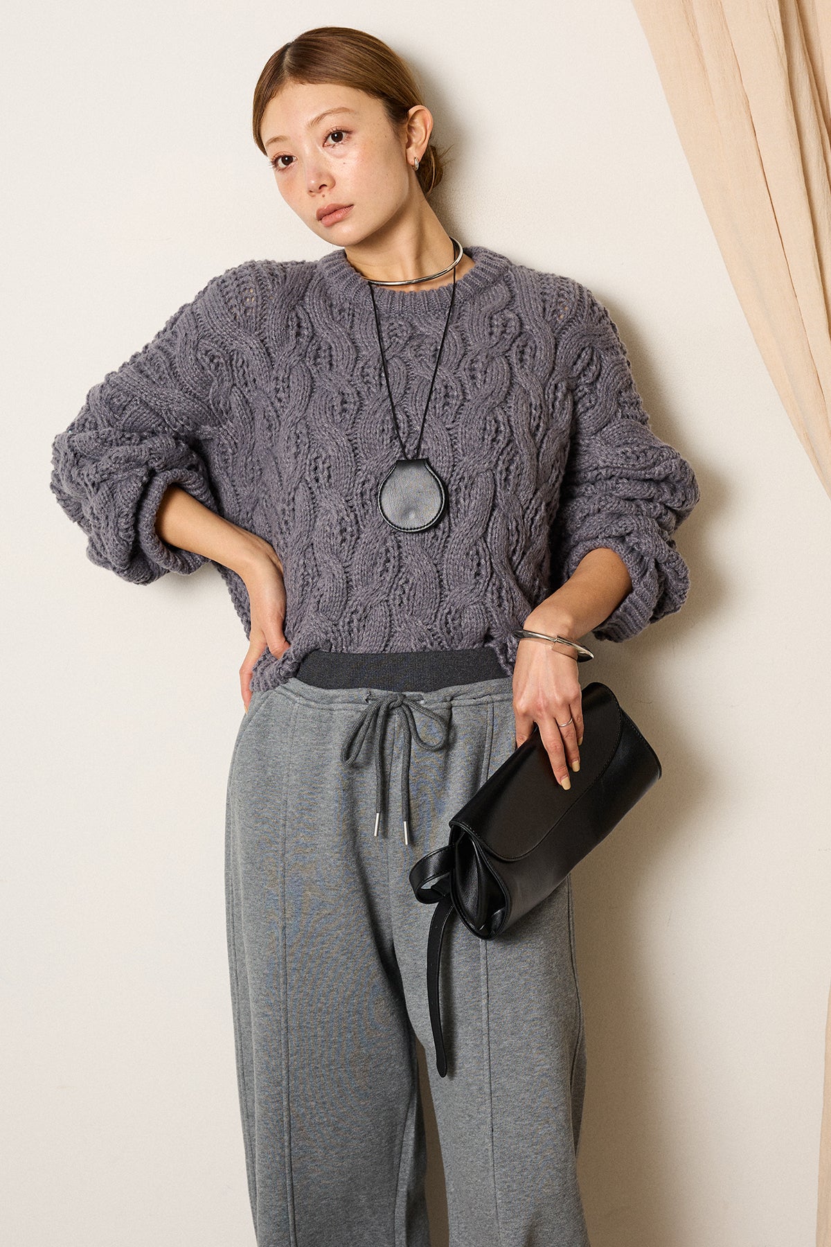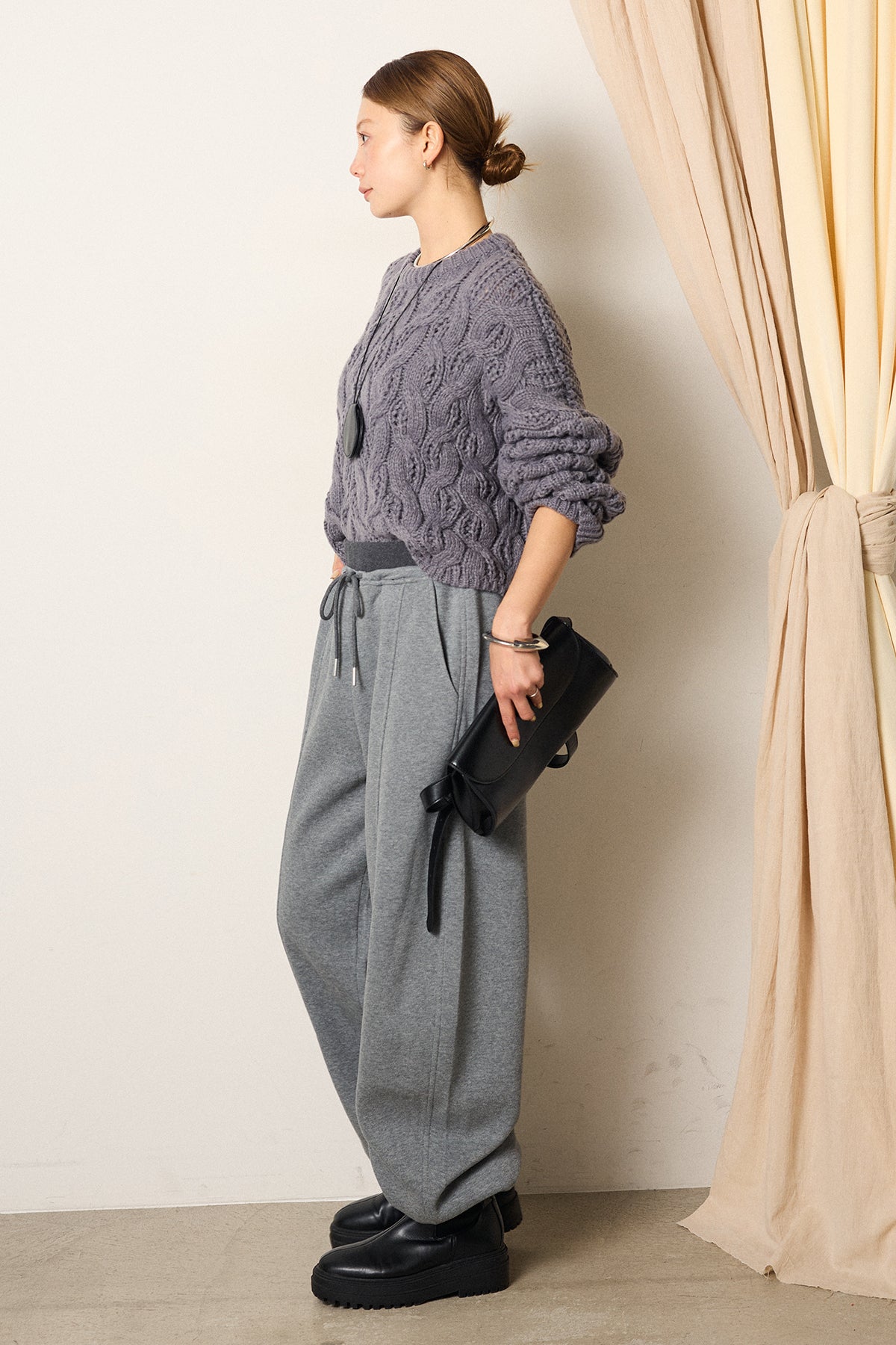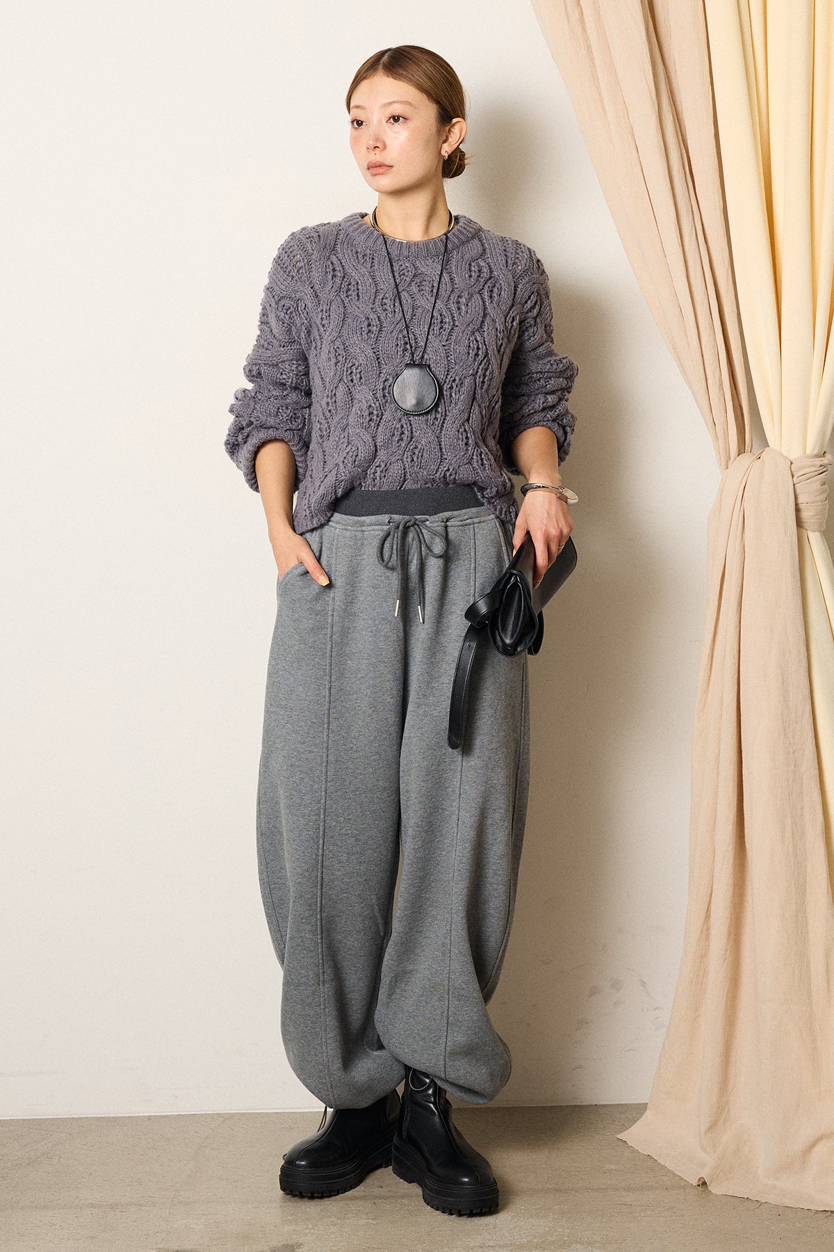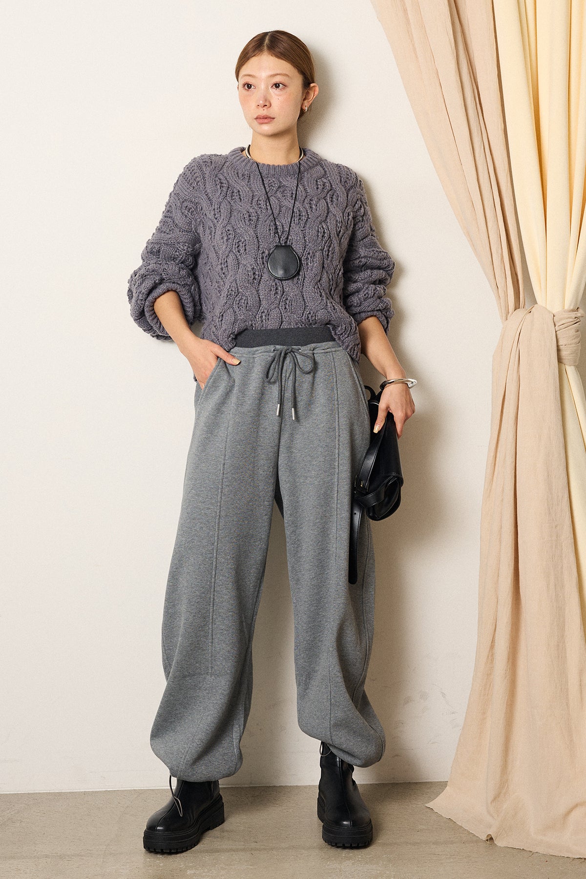[SET]ケーブルリラックスショートニット+スウェットワイドカーブパンツ(2set)
