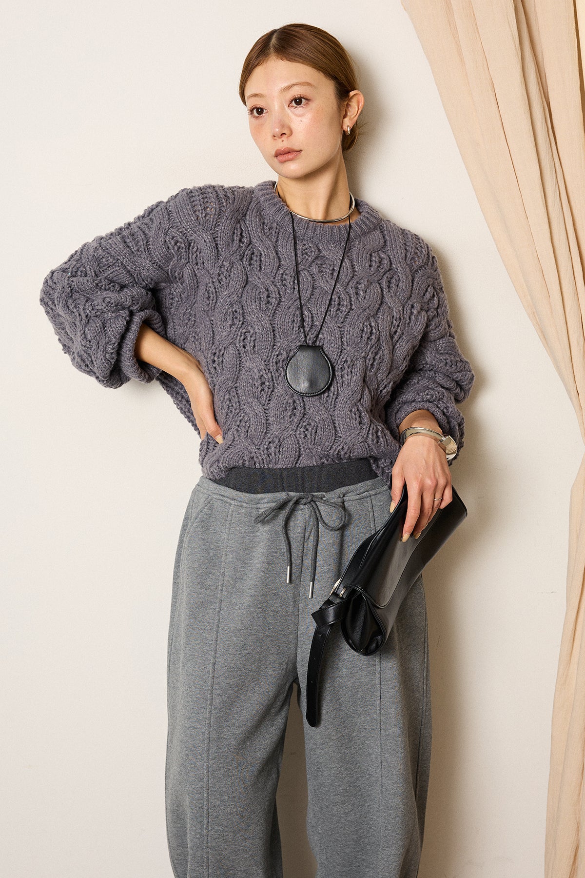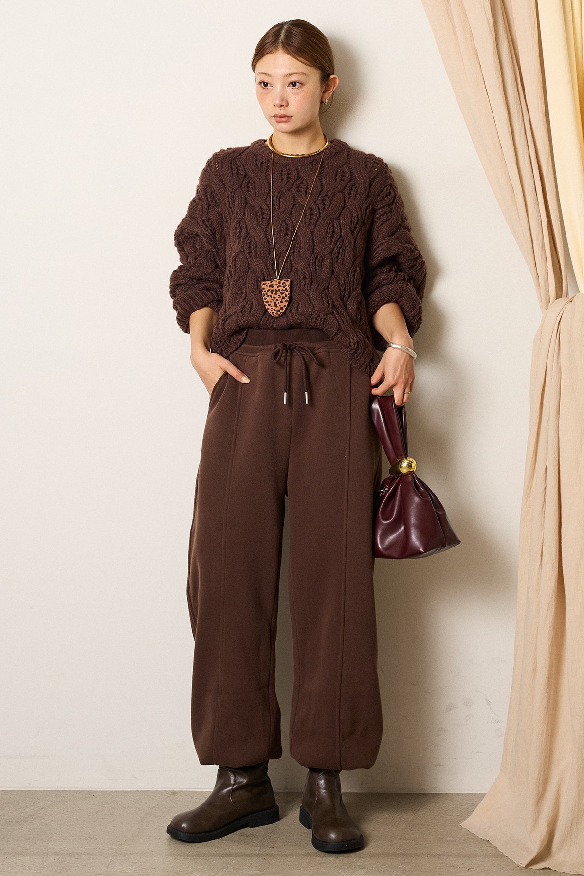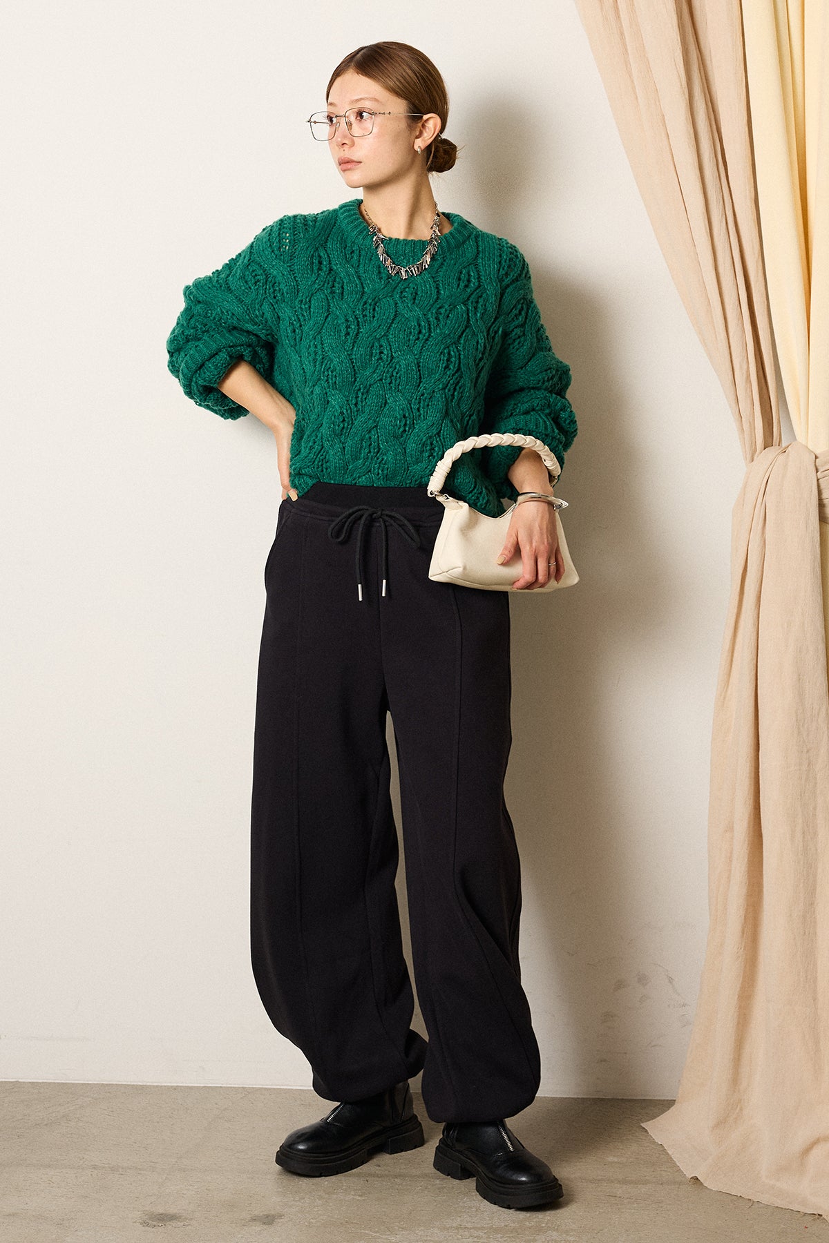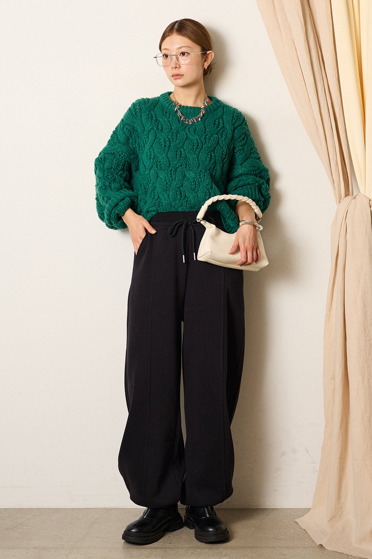 [SET]ケーブルリラックスショートニット+スウェットワイドカーブパンツ(2set)