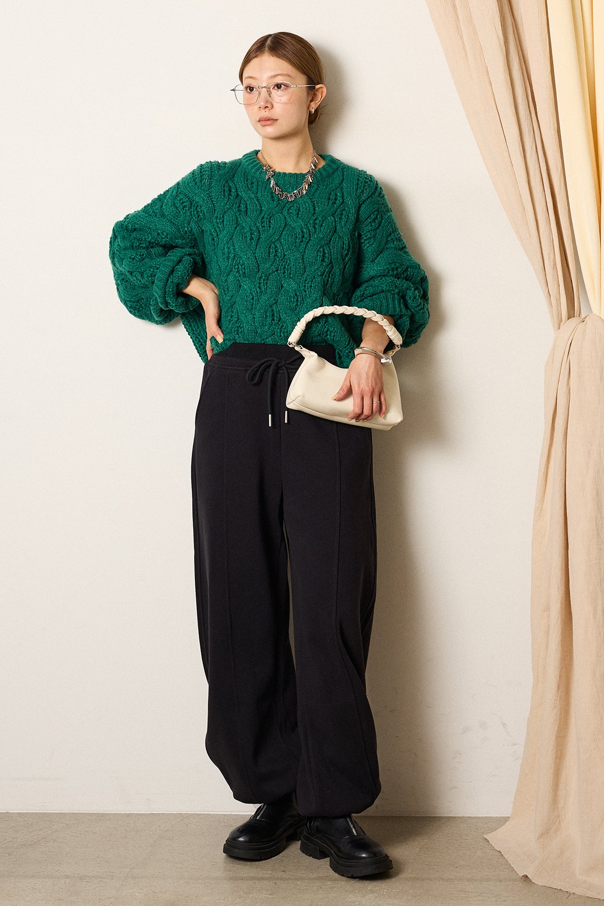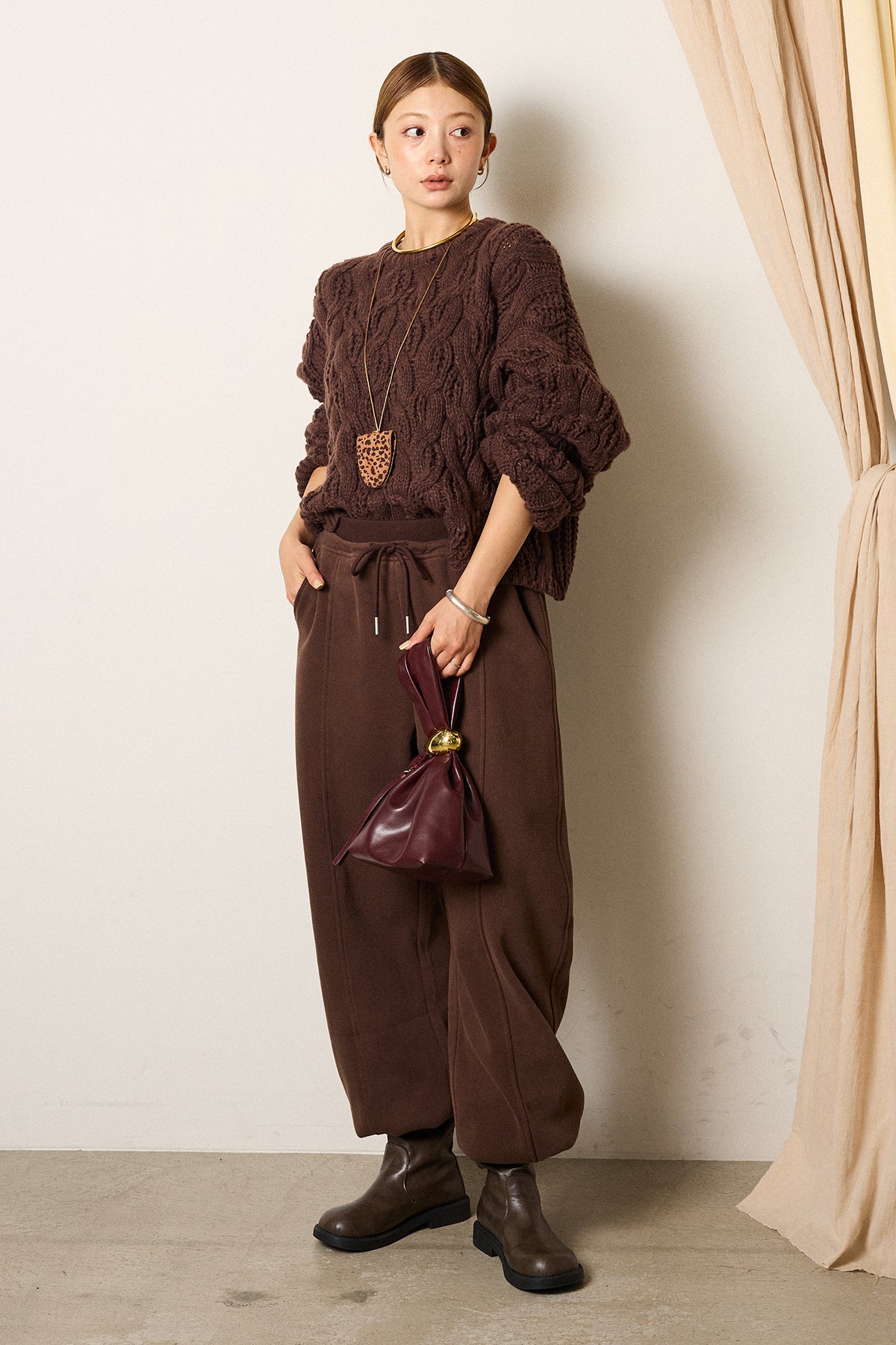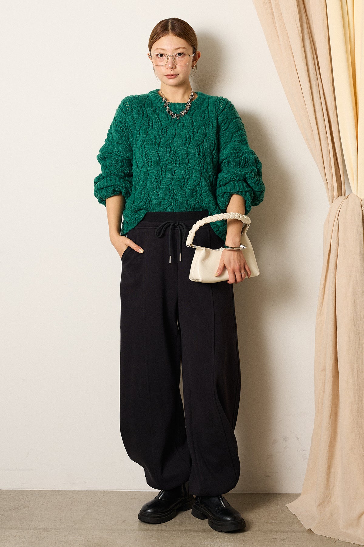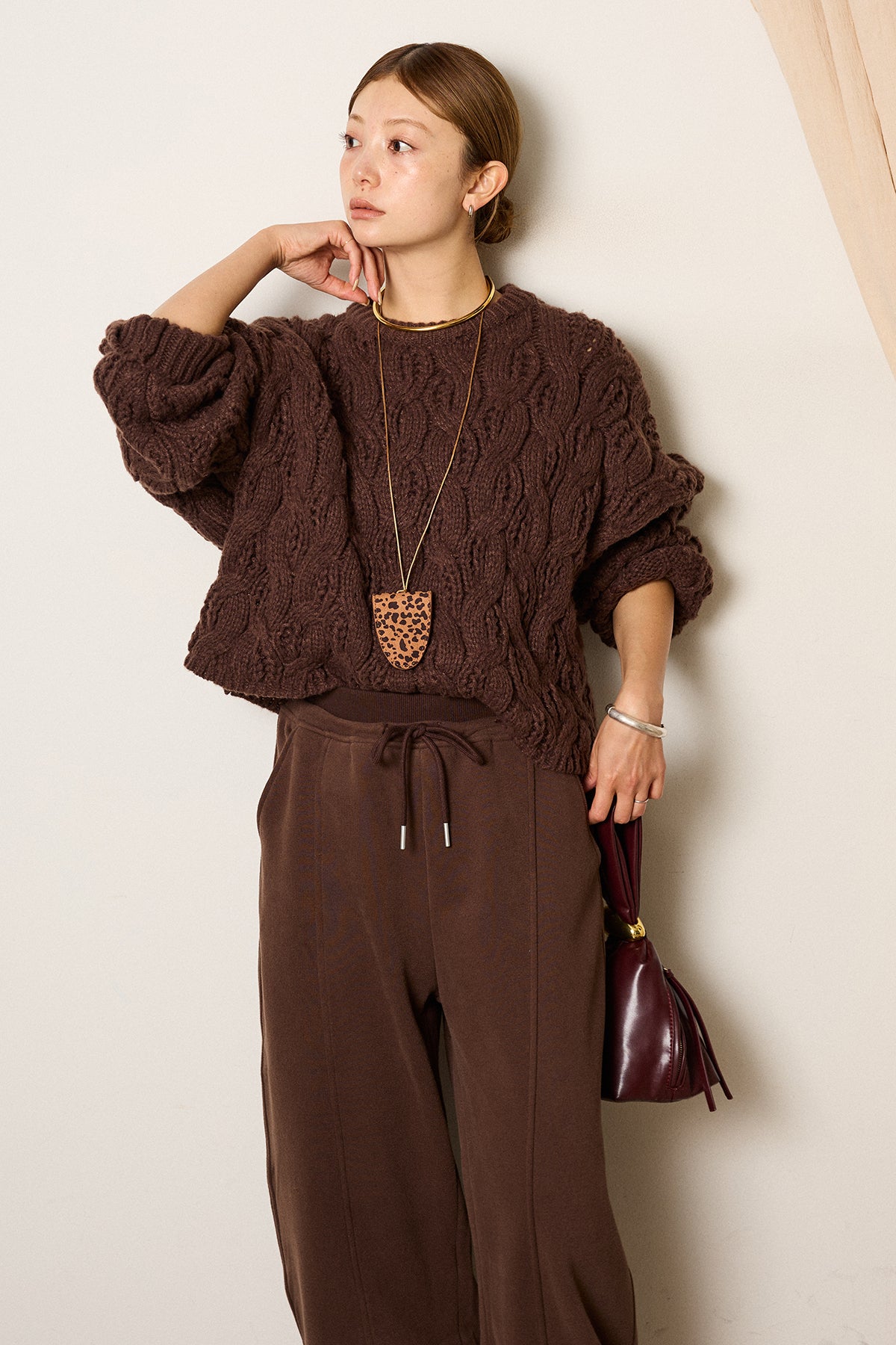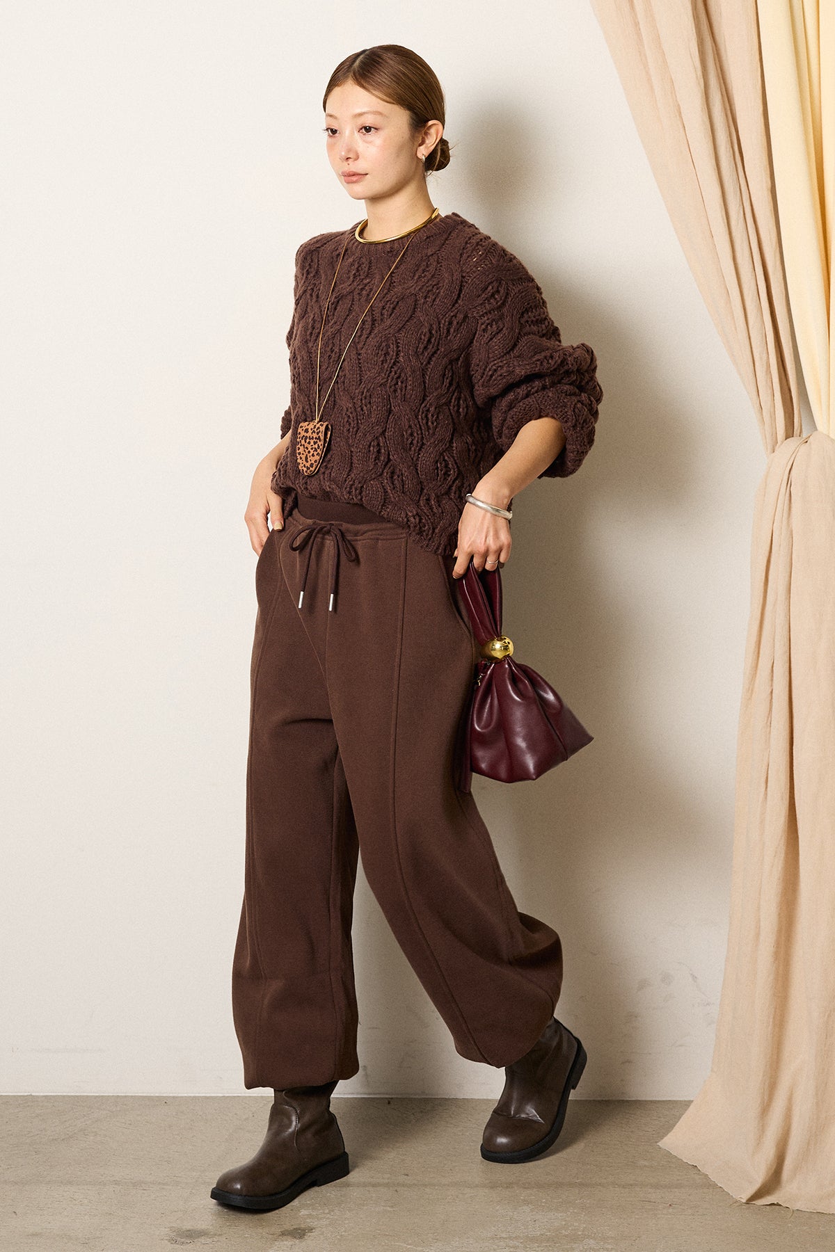 [SET]ケーブルリラックスショートニット+スウェットワイドカーブパンツ(2set)