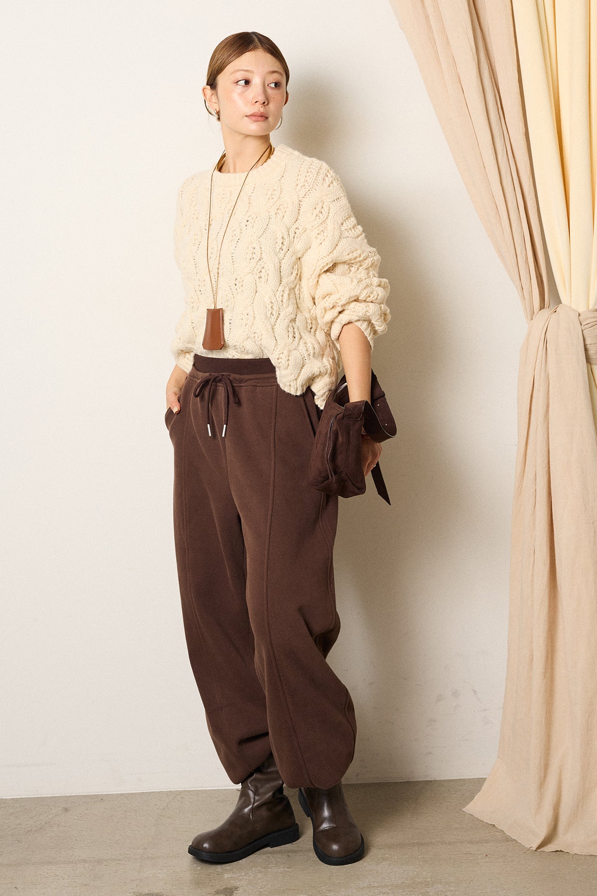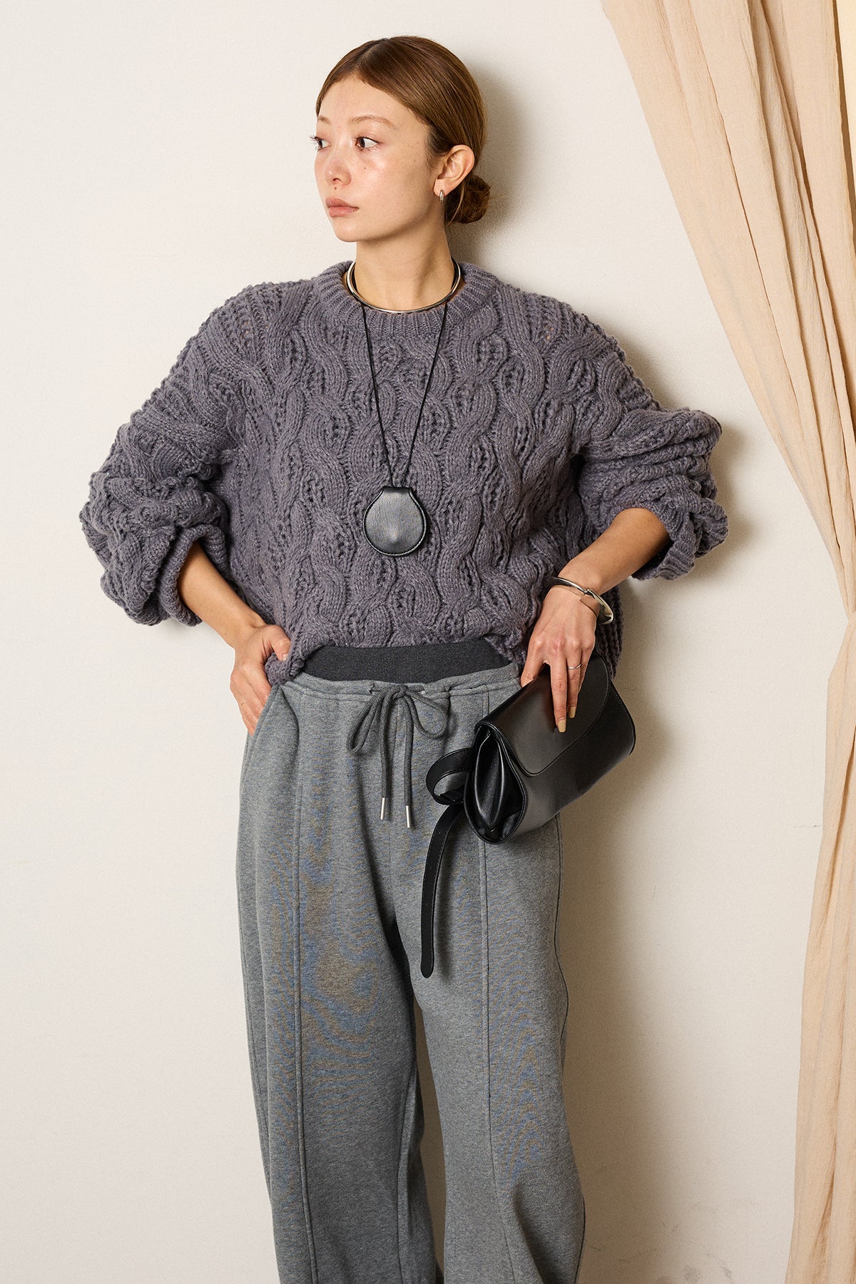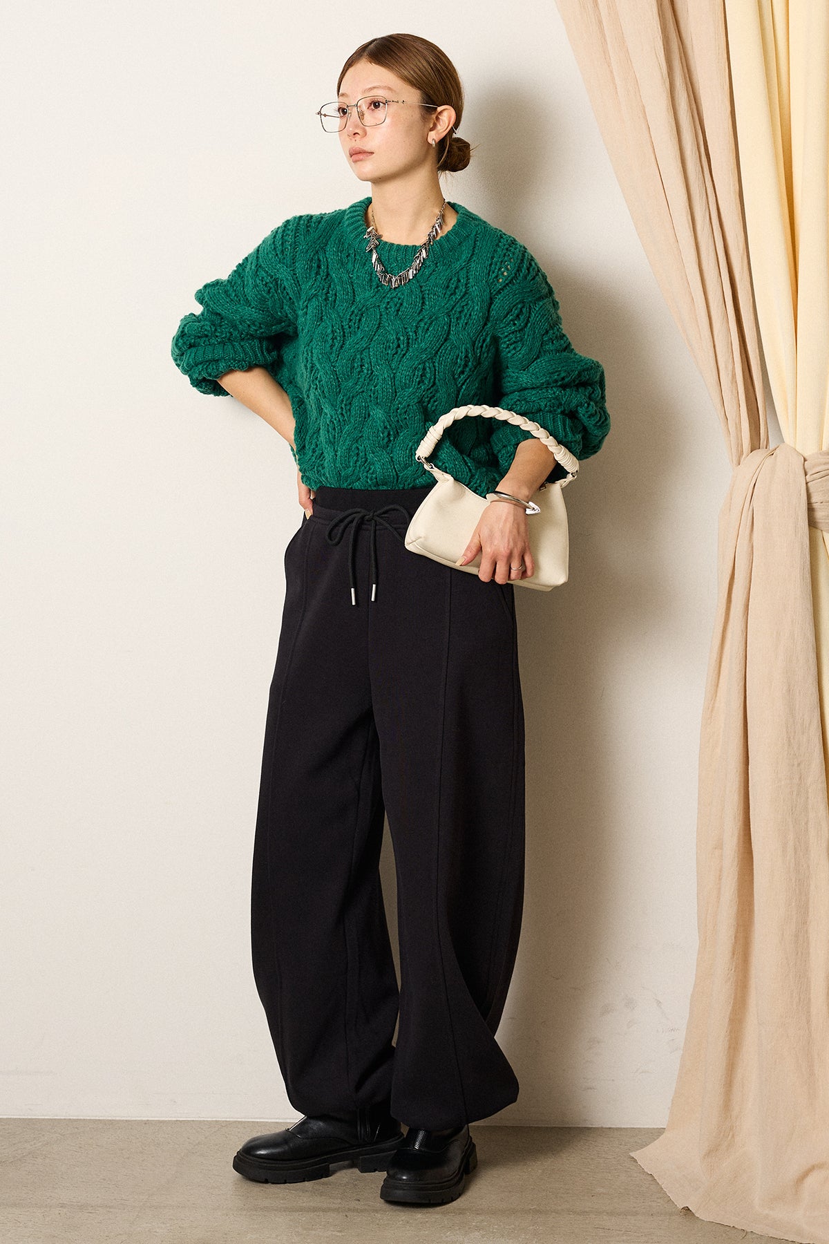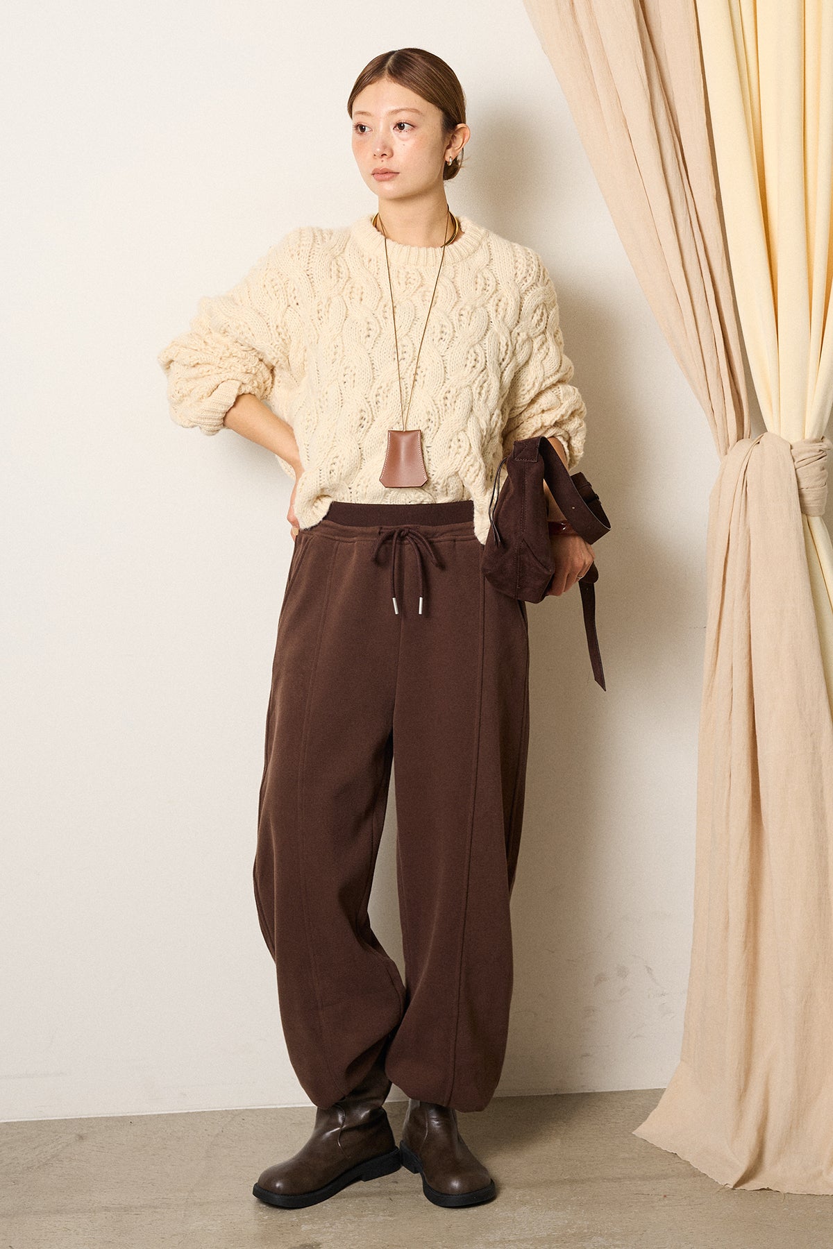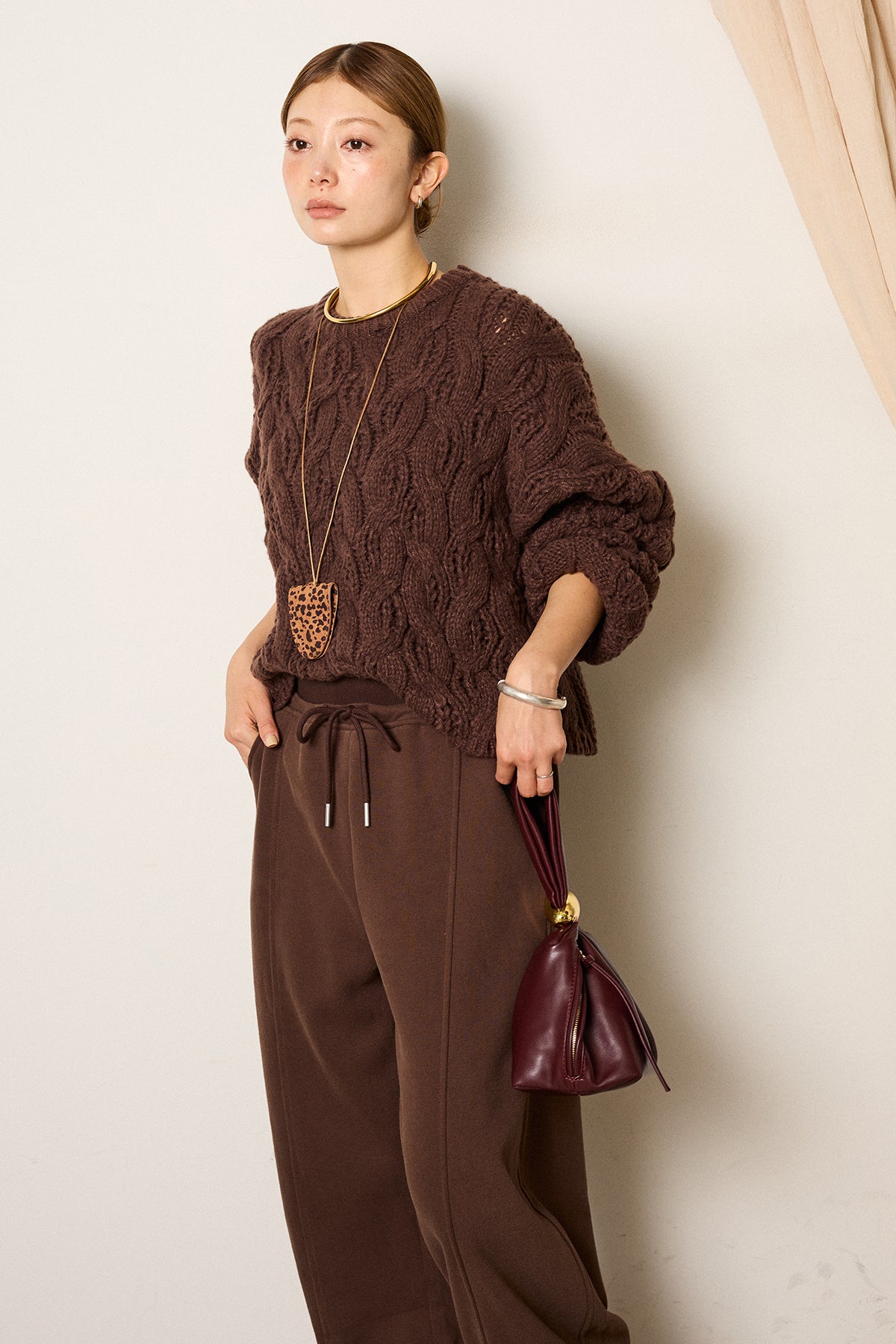 [SET]ケーブルリラックスショートニット+スウェットワイドカーブパンツ(2set)