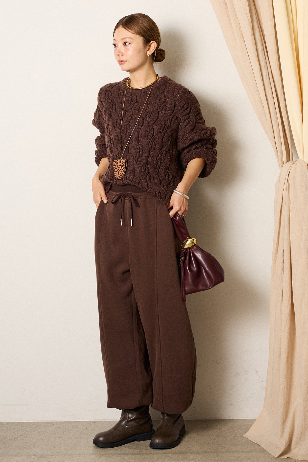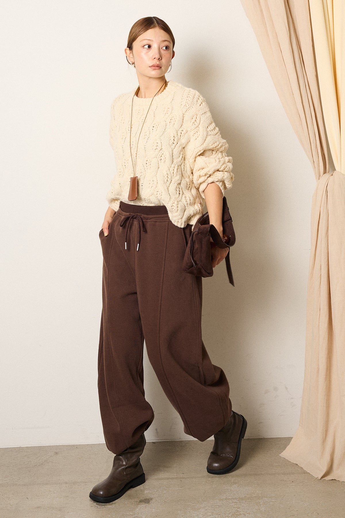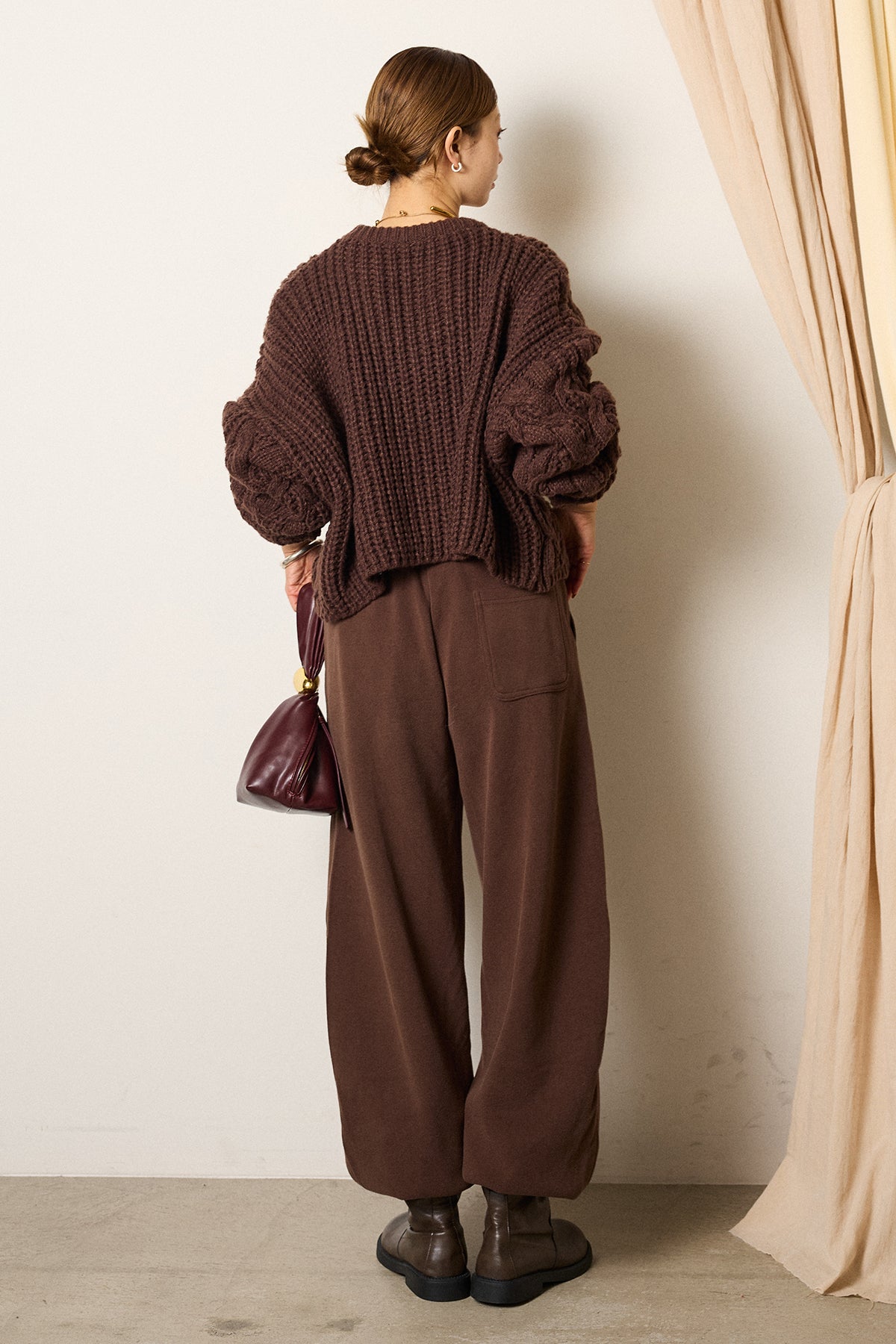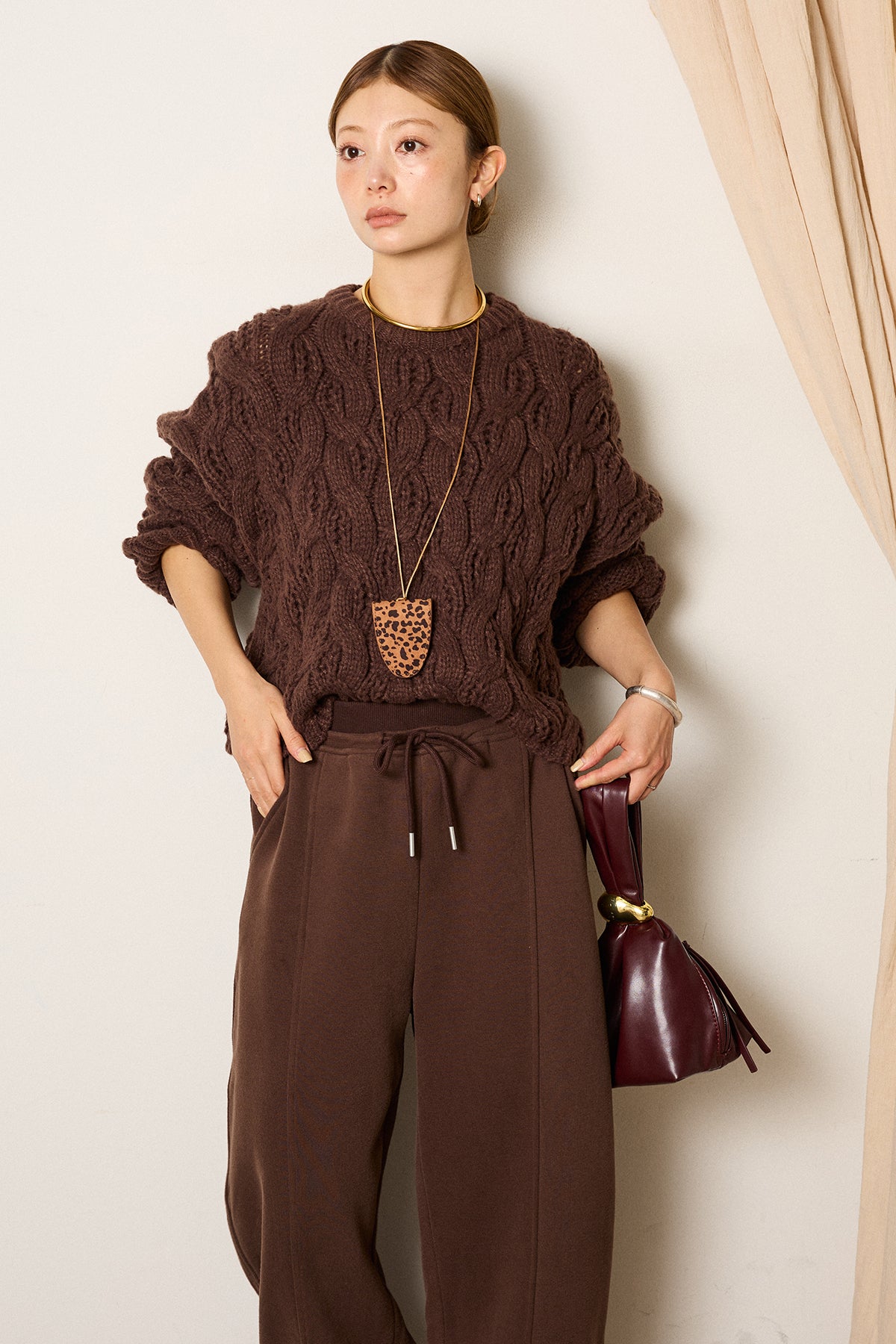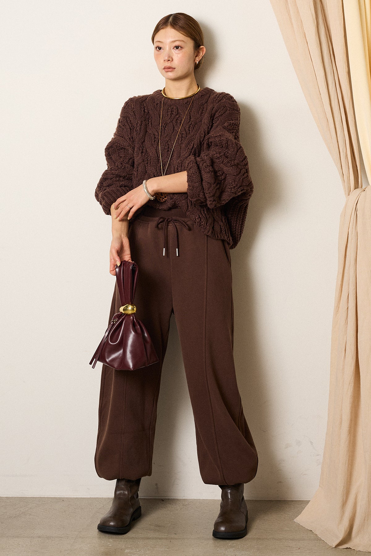 [SET]ケーブルリラックスショートニット+スウェットワイドカーブパンツ(2set)
