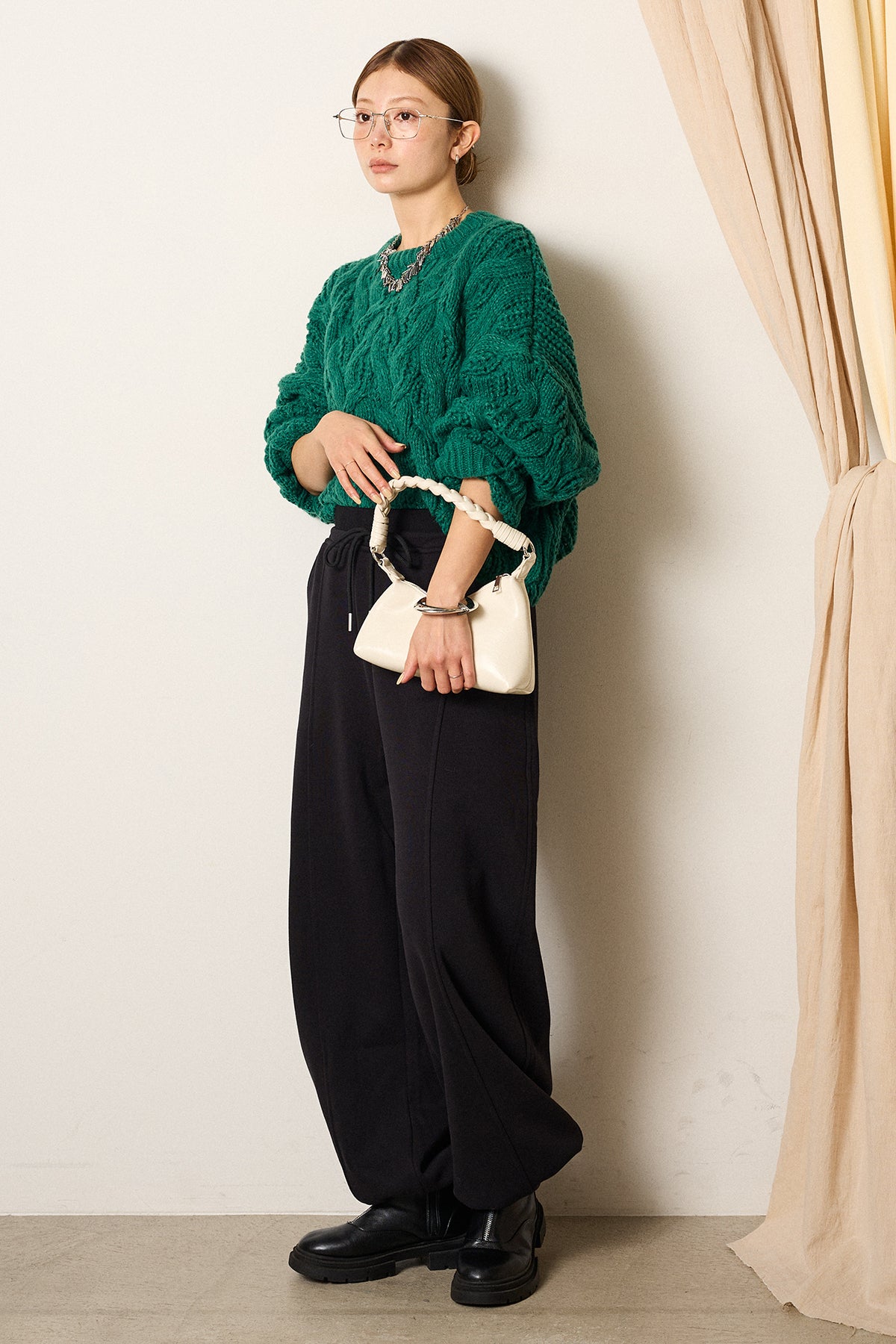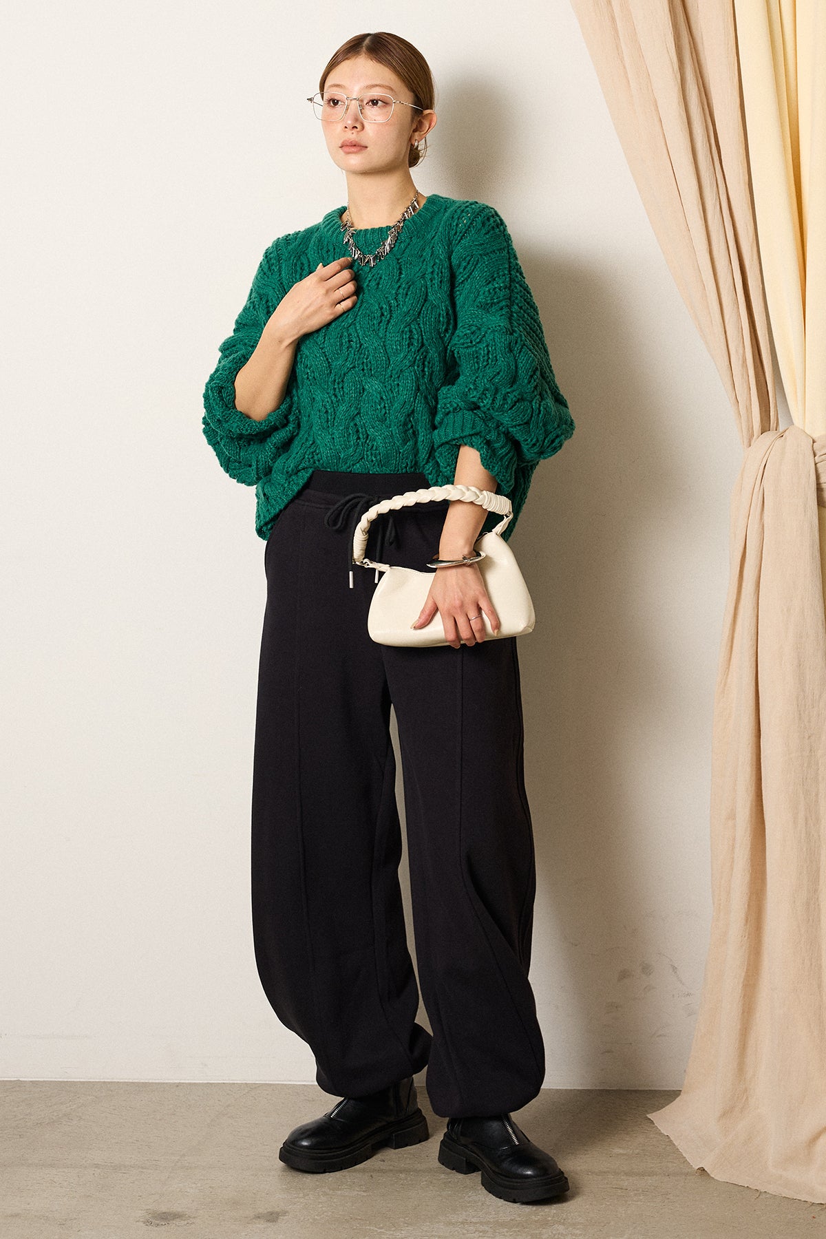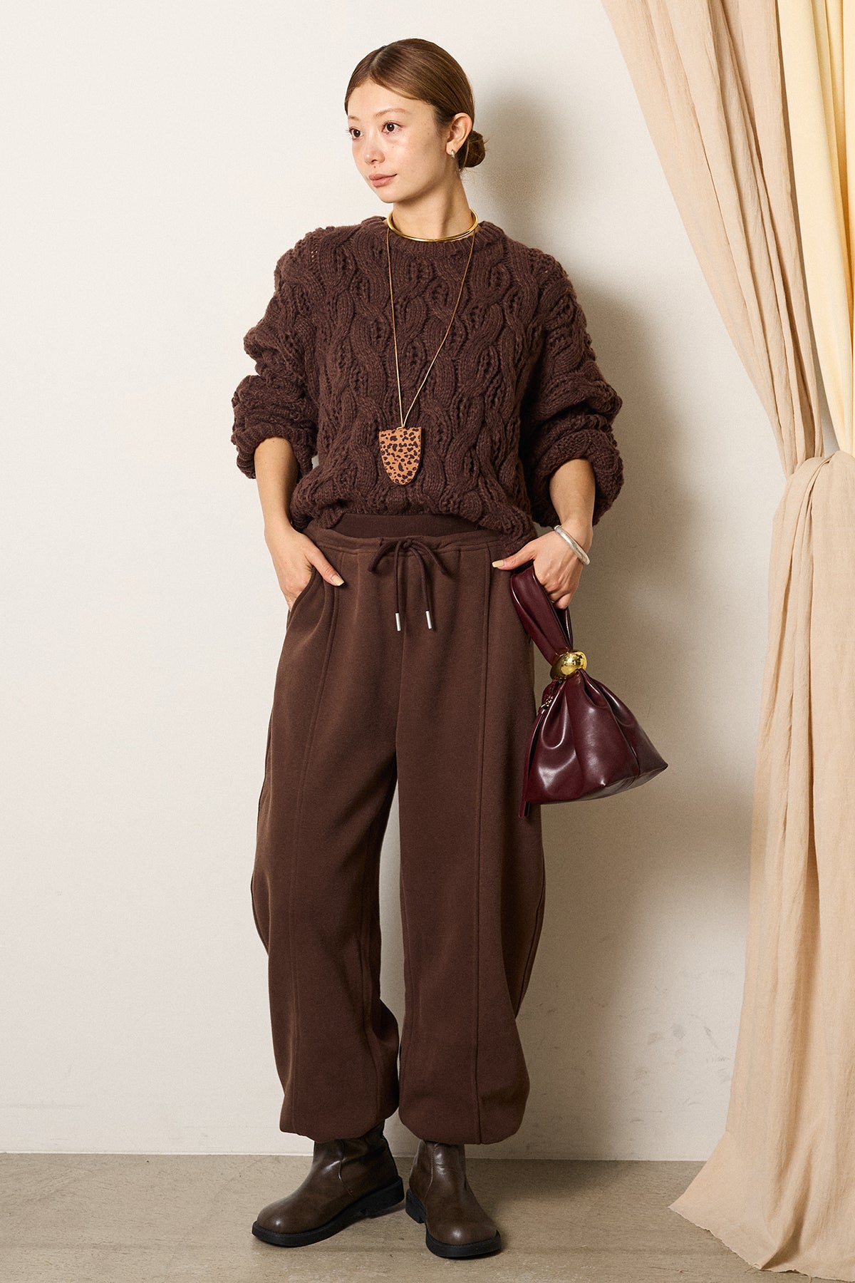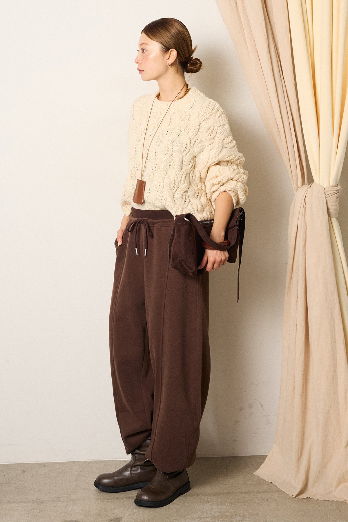 [SET]ケーブルリラックスショートニット+スウェットワイドカーブパンツ(2set)
