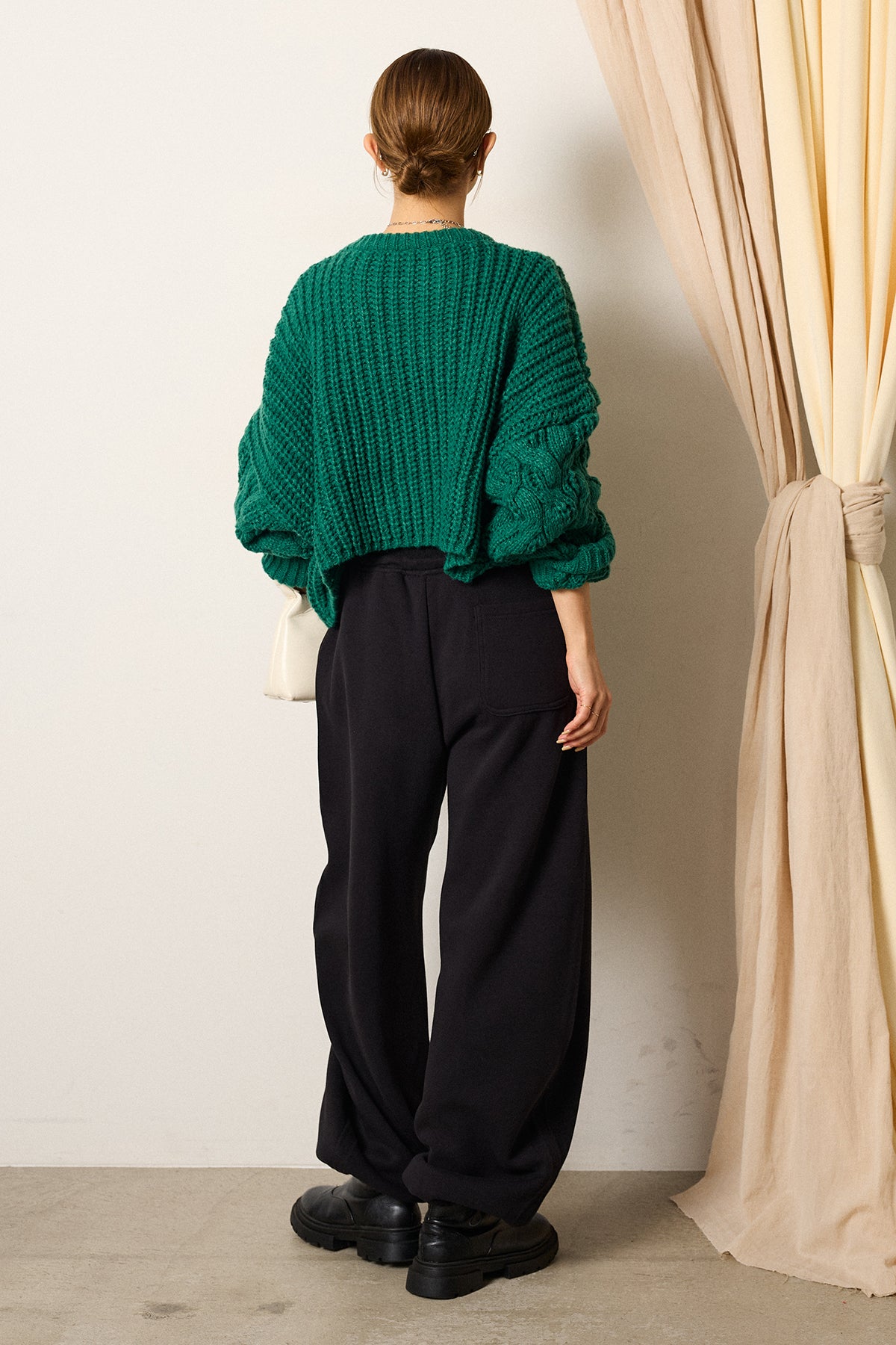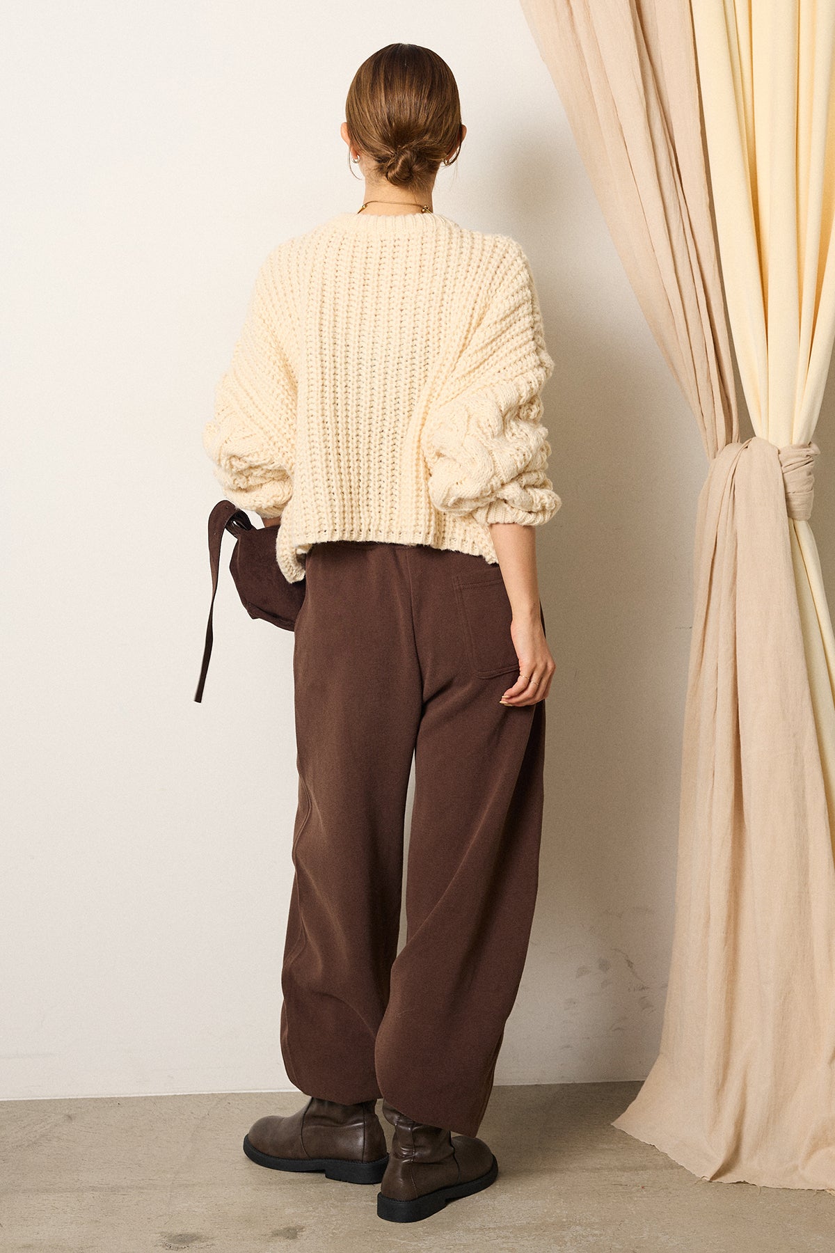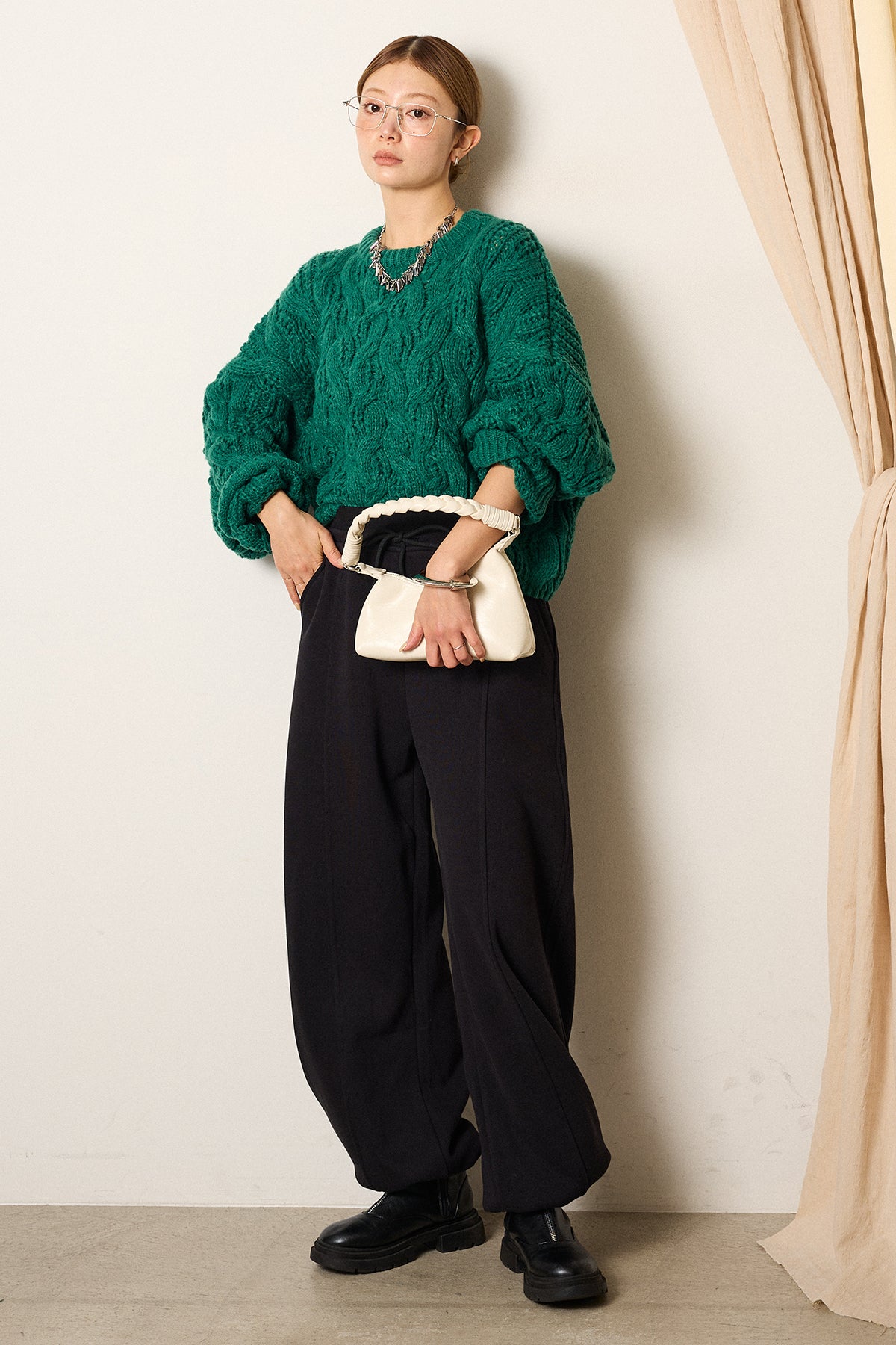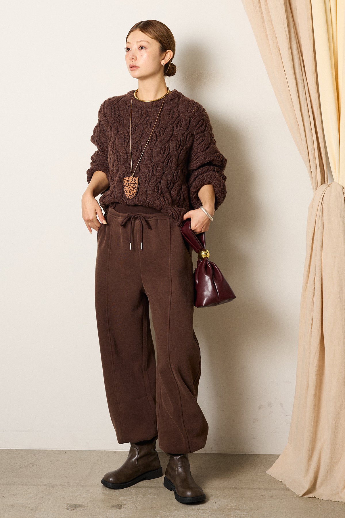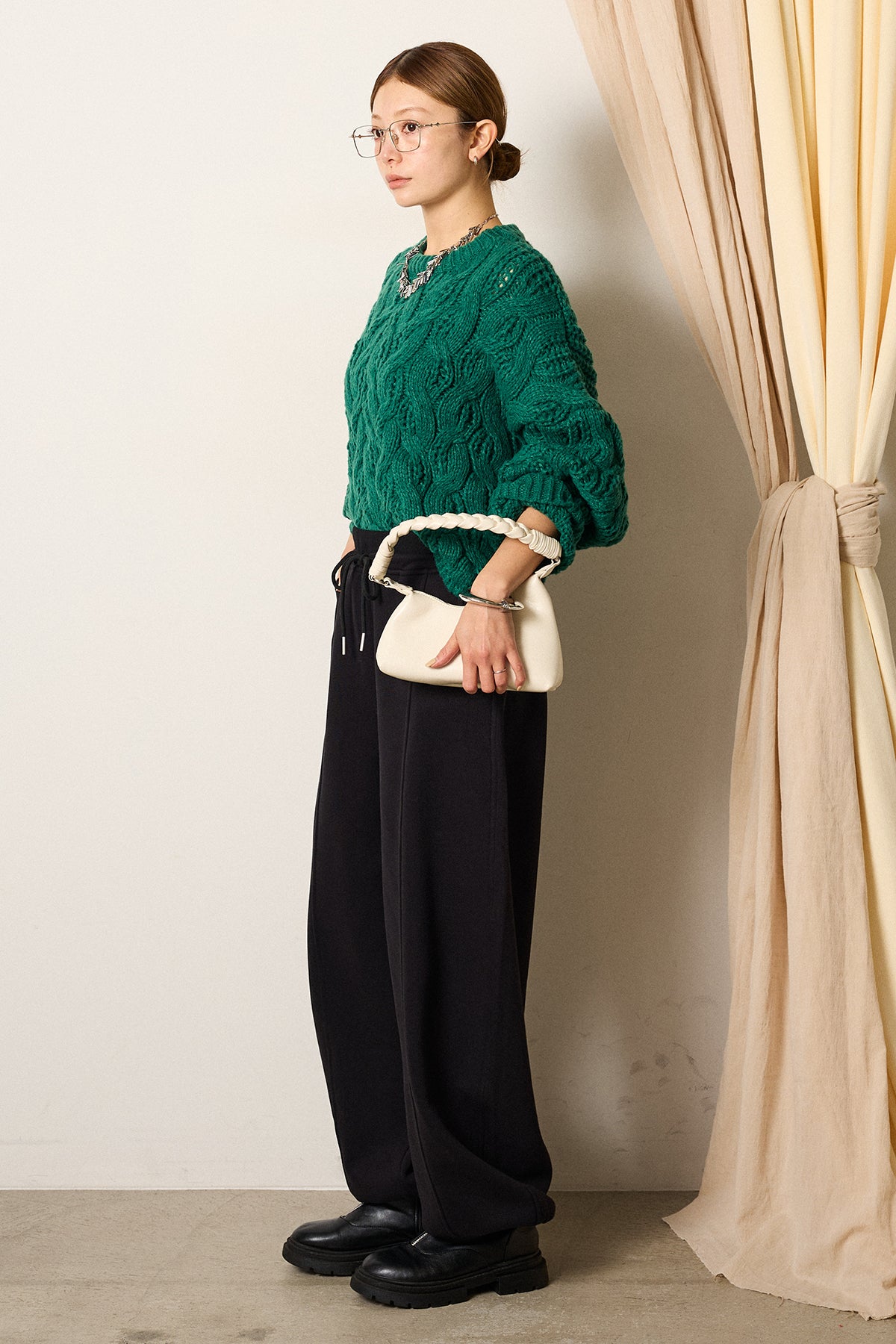 [SET]ケーブルリラックスショートニット+スウェットワイドカーブパンツ(2set)
